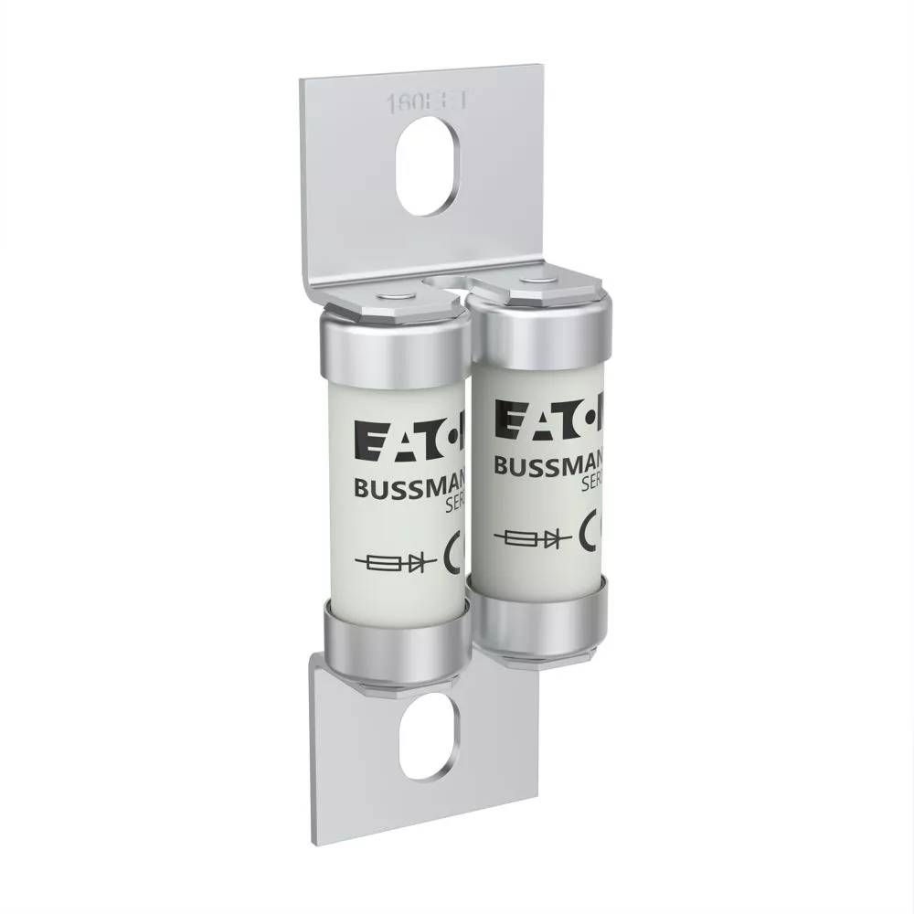 Sicherung, Sicherungseinsatz, superflink, 160 A, 690 V AC, 500 V DC, BS88, 37 x 94 mm, aR, BS, gekröpfte verschraubte Anschlussfahnen, Gemeinsamer DC-Bus Schutz, Gleichstromantriebe, Leistungsumrichter/Gleichrichter und Anlasser mit reduzierter Spannung, BS88-4, IEC 60269-4, Ausschaltvermögen 200 kA, Optionale Zusatzausrüstung Sicherungshalter BH-1132