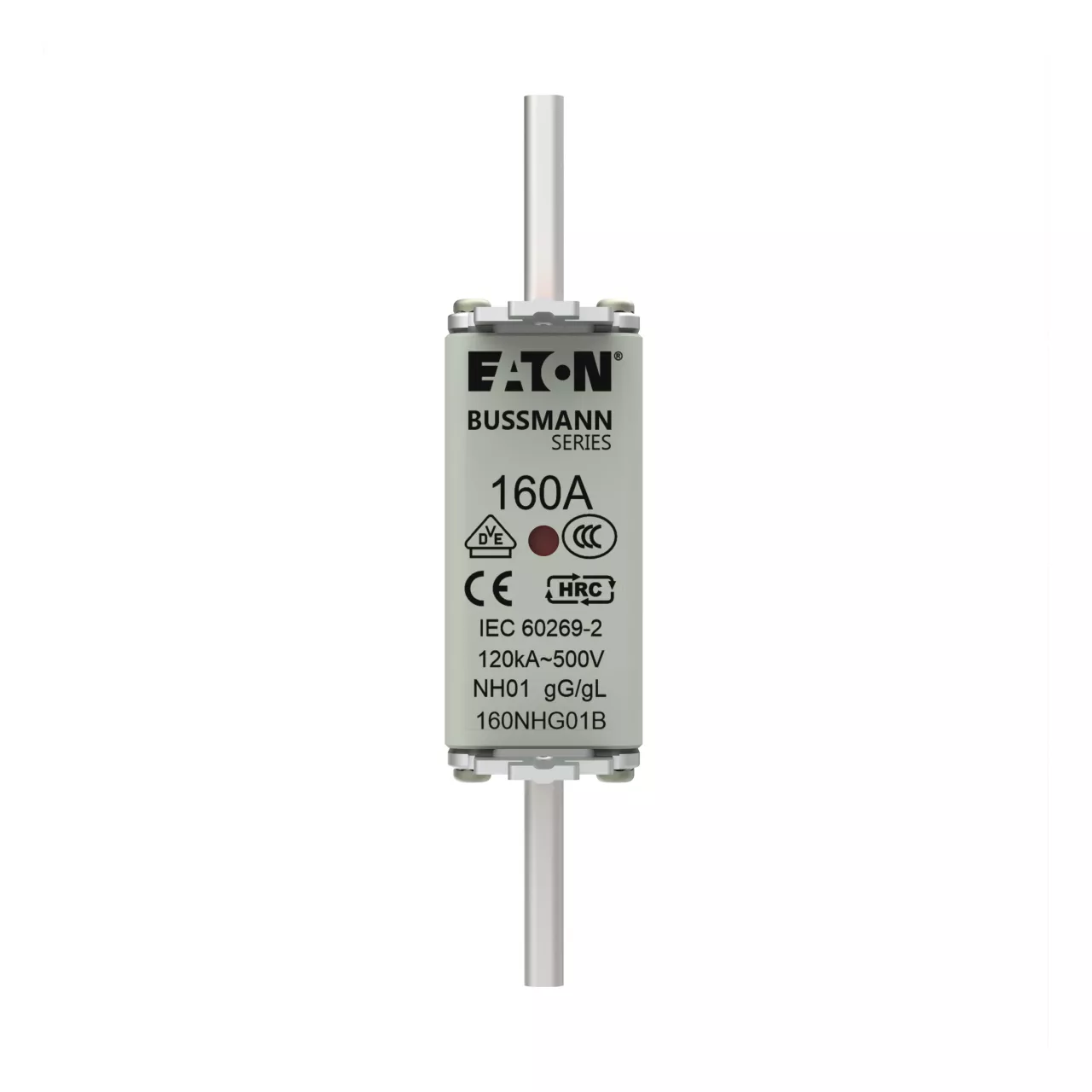 Fuse, Fuse-link, low voltage, 160 A, AC 500 V, NH01, gL/gG, IEC, dual indicator, square body with knife blade contacts, live gripping lugs, IEC 60269-2 fuse system A, DIN 43620, VDE 0636-2, Breaking Capacity 120 kA, Optional accessories fuse-holder SD1-D