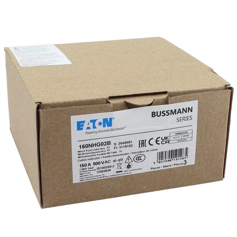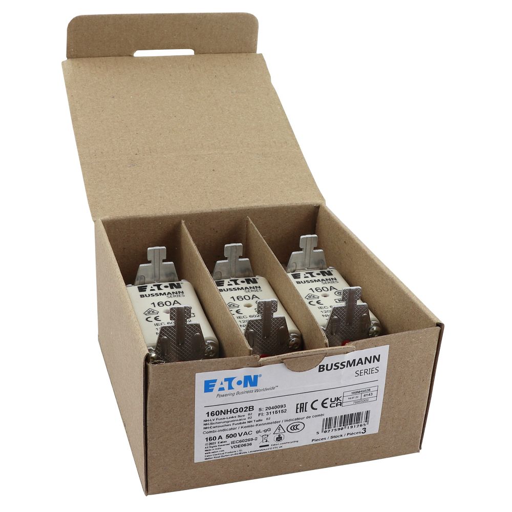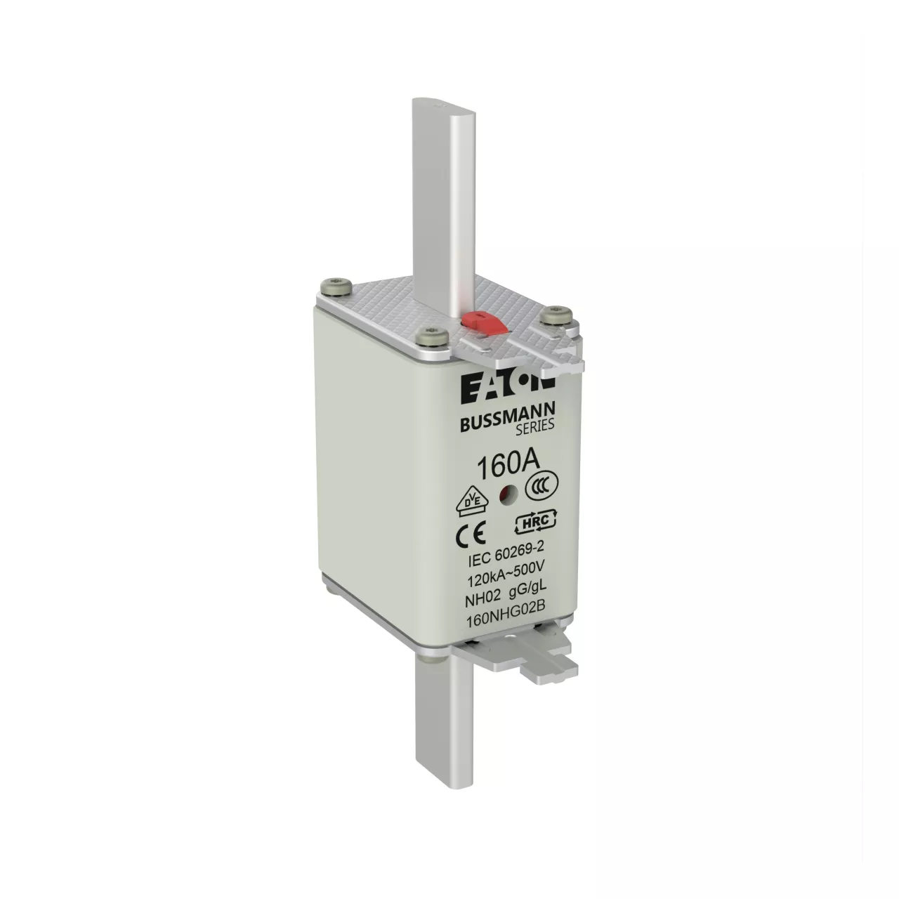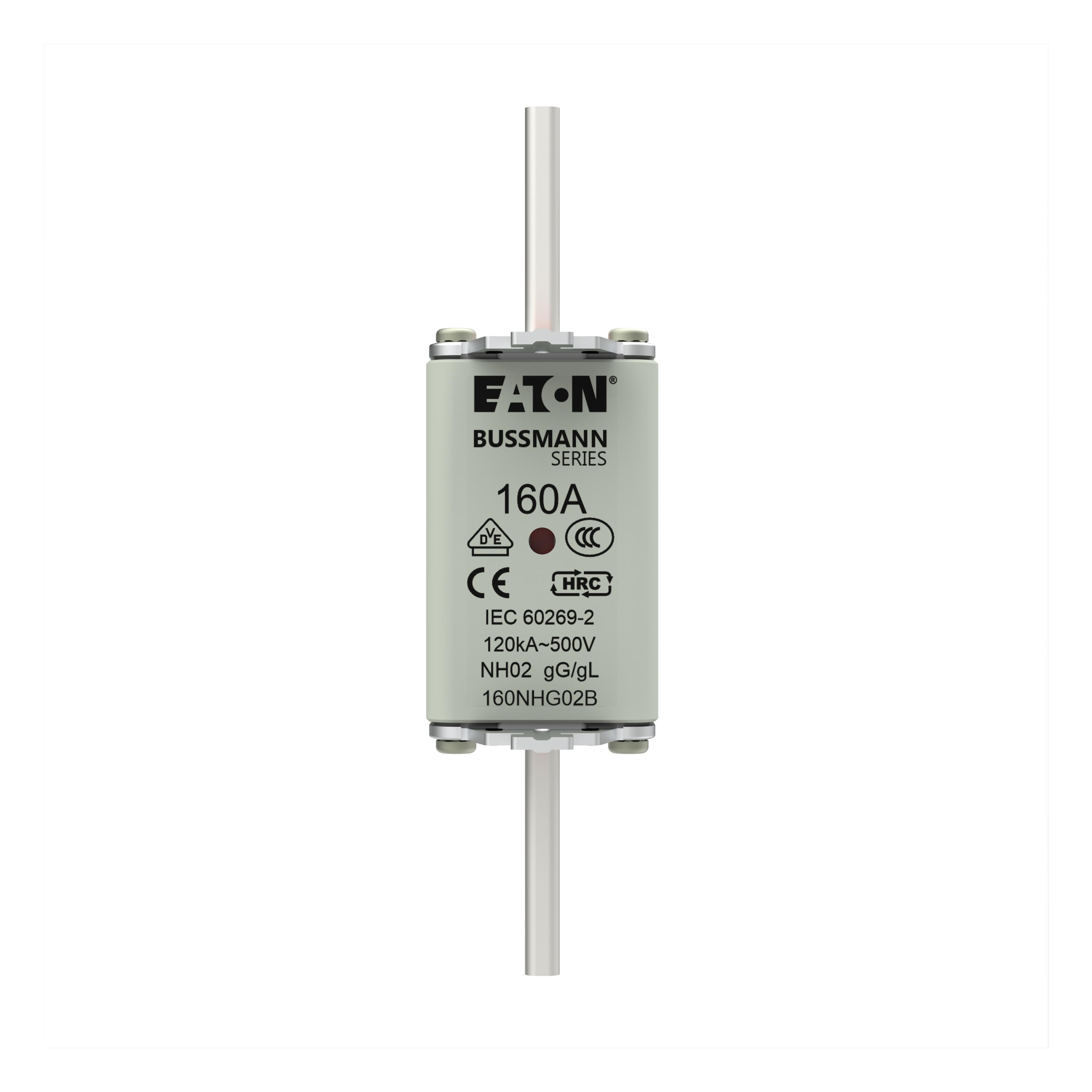Fuse, Fuse-link, low voltage, 160 A, AC 500 V, NH02, gL/gG, IEC, dual indicator, square body with knife blade contacts, live gripping lugs, IEC 60269-2 fuse system A, DIN 43620, VDE 0636-2, Breaking Capacity 120 kA, Optional accessories fuse-holder SD2-D