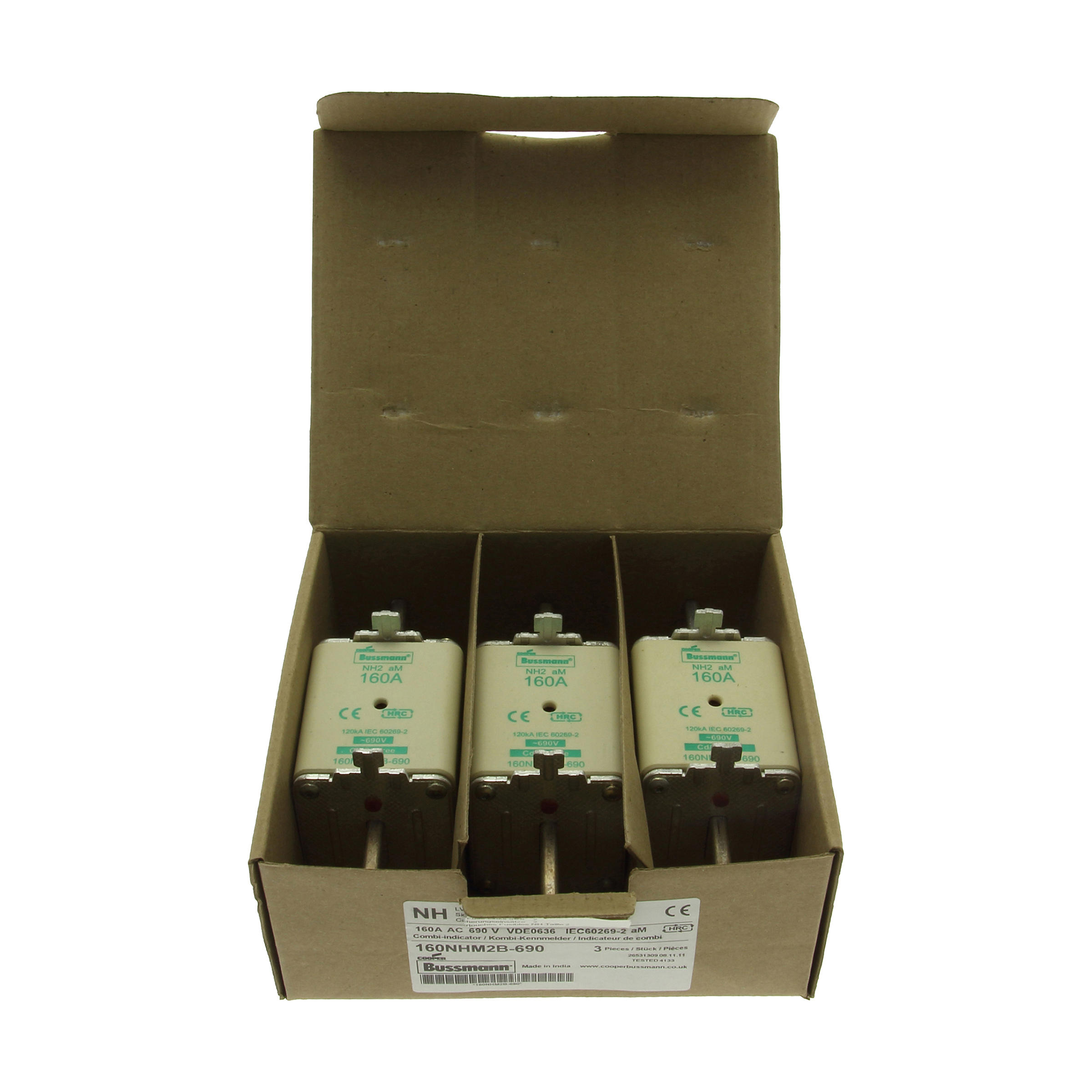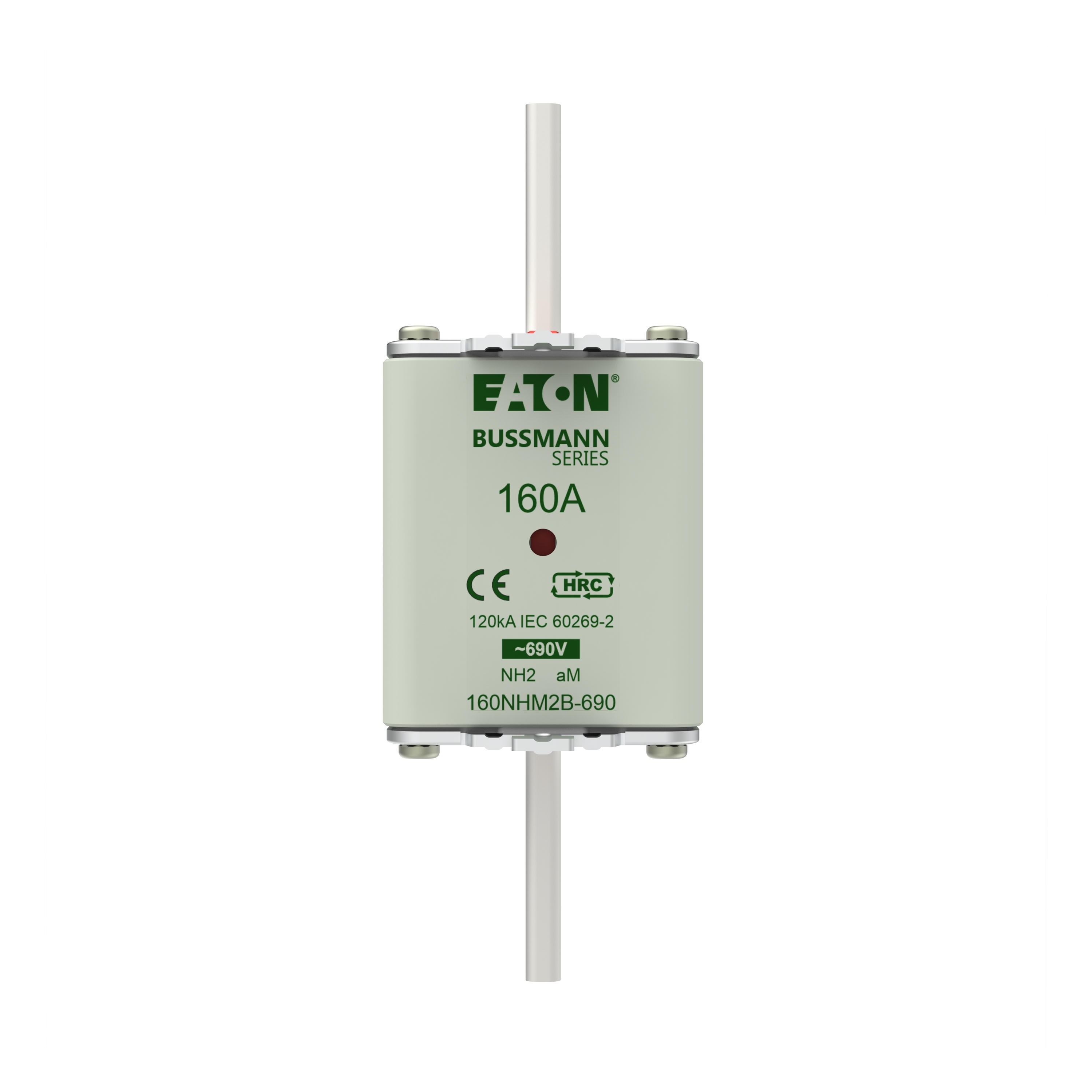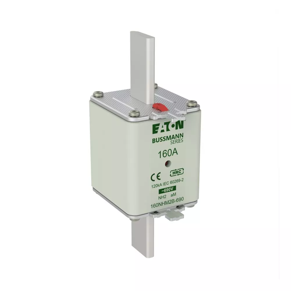 Bezpiecznik, wkładka bezpiecznikowa, niskie napięcie, 160 A, AC 690 V, NH2, aM, IEC, Układ podwójnego sygnalizatora (kombinacja), korpus kwadratowy ze stykami nożowymi, ruchome uchwyty, IEC 60269-2 układ bezpiecznikowy A, DIN 43620, VDE 0636-2. Zdolność wyłączania 120 kA