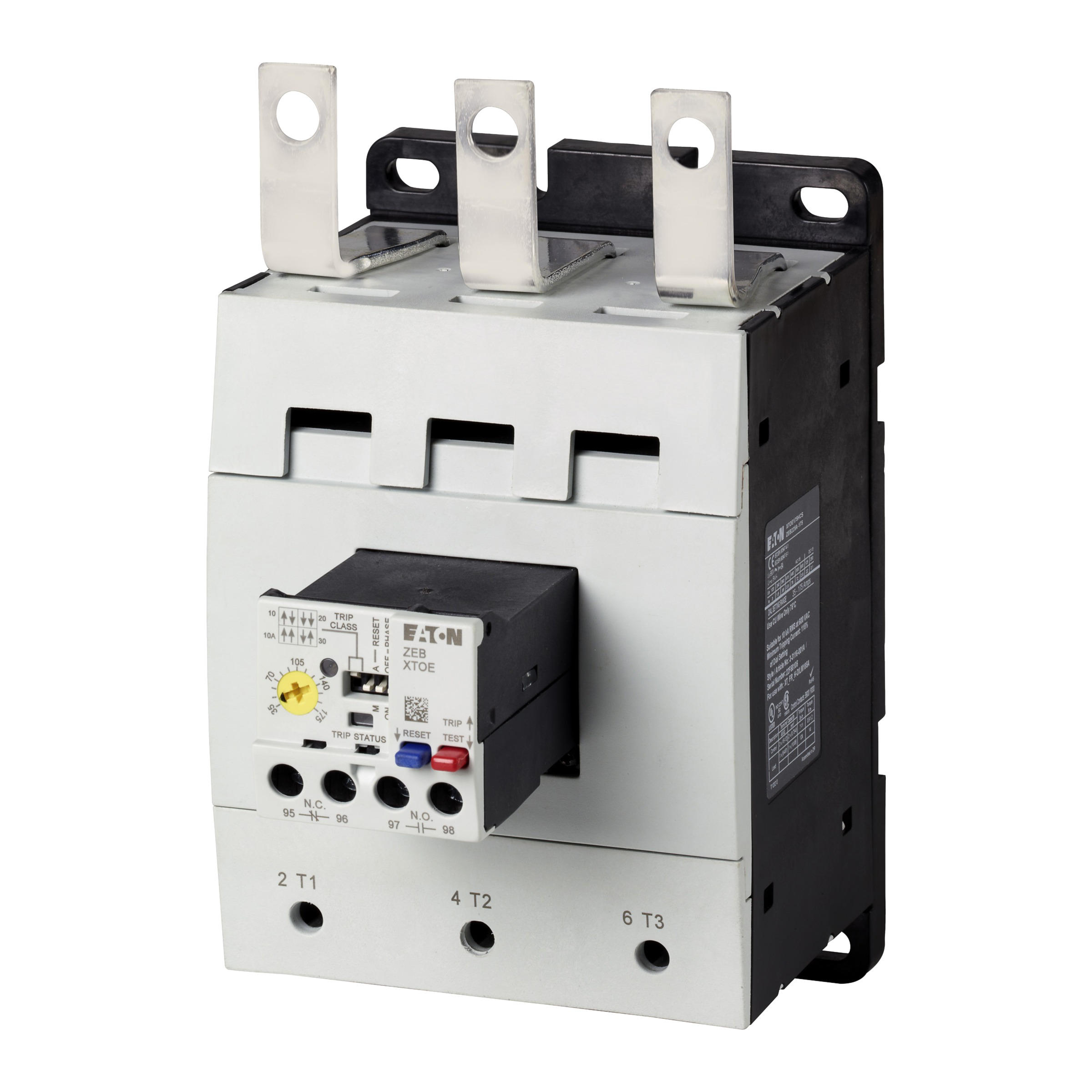 Przekaźnik przeciążeniowy, Zacisk śrubowy: Elektroniczne przekaźniki przeciążeniowe ZEB, Czułość na zanik fazy: IEC/EN 60947, VDE 0660 część 102, Opis: Przycisk test/wył., Przycisk resetowania, Możliwość wyboru ręcznego/automatycznego resetu, Ochrona przy ciężkim rozruchu (klasa 10A-30), Typ mocowania: Montaż bezpośredni, Styki pomocnicze Z = Zwierne: 1 Z, Styki pomocnicze R = Rozwierne: 1 R, Do zastosowania z: DILM185A, DILM225A, Normy: IEC/EN 60947, VDE 0660, UL, CSA, Stopień ochrony: IP00