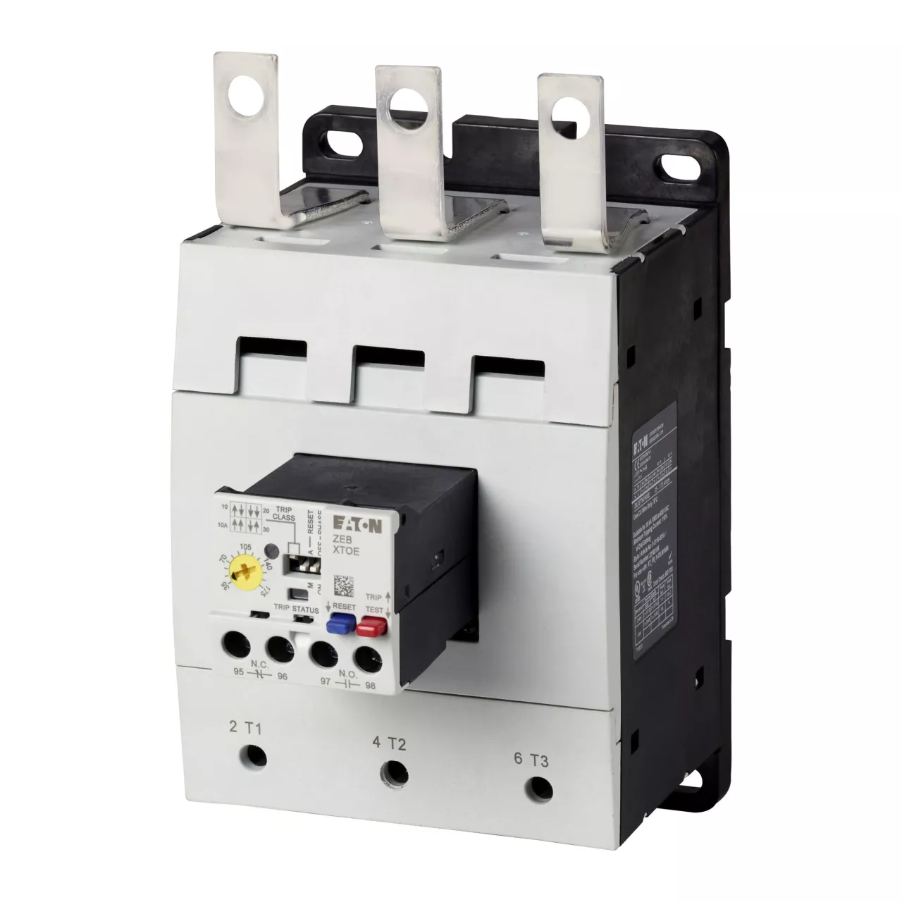 Przekaźnik przeciążeniowy, Zacisk śrubowy: Elektroniczne przekaźniki przeciążeniowe ZEB, Czułość na zanik fazy: IEC/EN 60947, VDE 0660 część 102, Opis: Przycisk test/wył., Przycisk resetowania, Możliwość wyboru ręcznego/automatycznego resetu, Zabezpieczenie na wypadek uruchomienia pod obciążeniem (klasy od 10 do 20), Typ mocowania: Montaż bezpośredni, Styki pomocnicze Z = Zwierne: 1 Z, Styki pomocnicze R = Rozwierne: 1 R, Do zastosowania z: DILM185A, DILM225A, Normy: IEC/EN 60947, VDE 0660, UL, CSA, Stopień ochrony: IP00