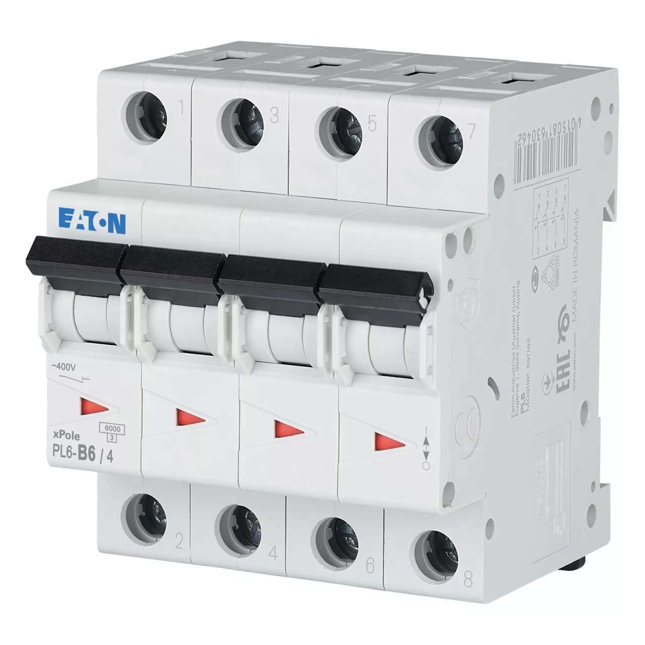 PL6-B6/4 Wyłącznik nadprądowy 6kA, In=6A, char. B, 4-bieg. seria PL6