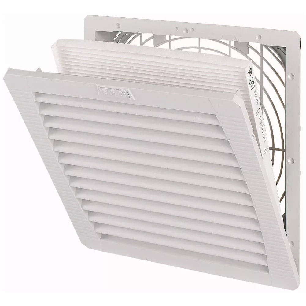 Austrittsfilter werden zur Ergänzung von Filterlüftern eingesetzt, selbes Design wie Filterlüfter, einfache Installation, einfacher Wechsel der Filtermatten, aus thermoplastischem Kunststoff, Schutzart IP55, selbstlöschender Kunststoff UL 94 VO, RAL 7035 Ausschnitt [H x B] 223 mm x 223 mm, Maße 252 mm x 252 mm; UV-beständiger Kunststoff