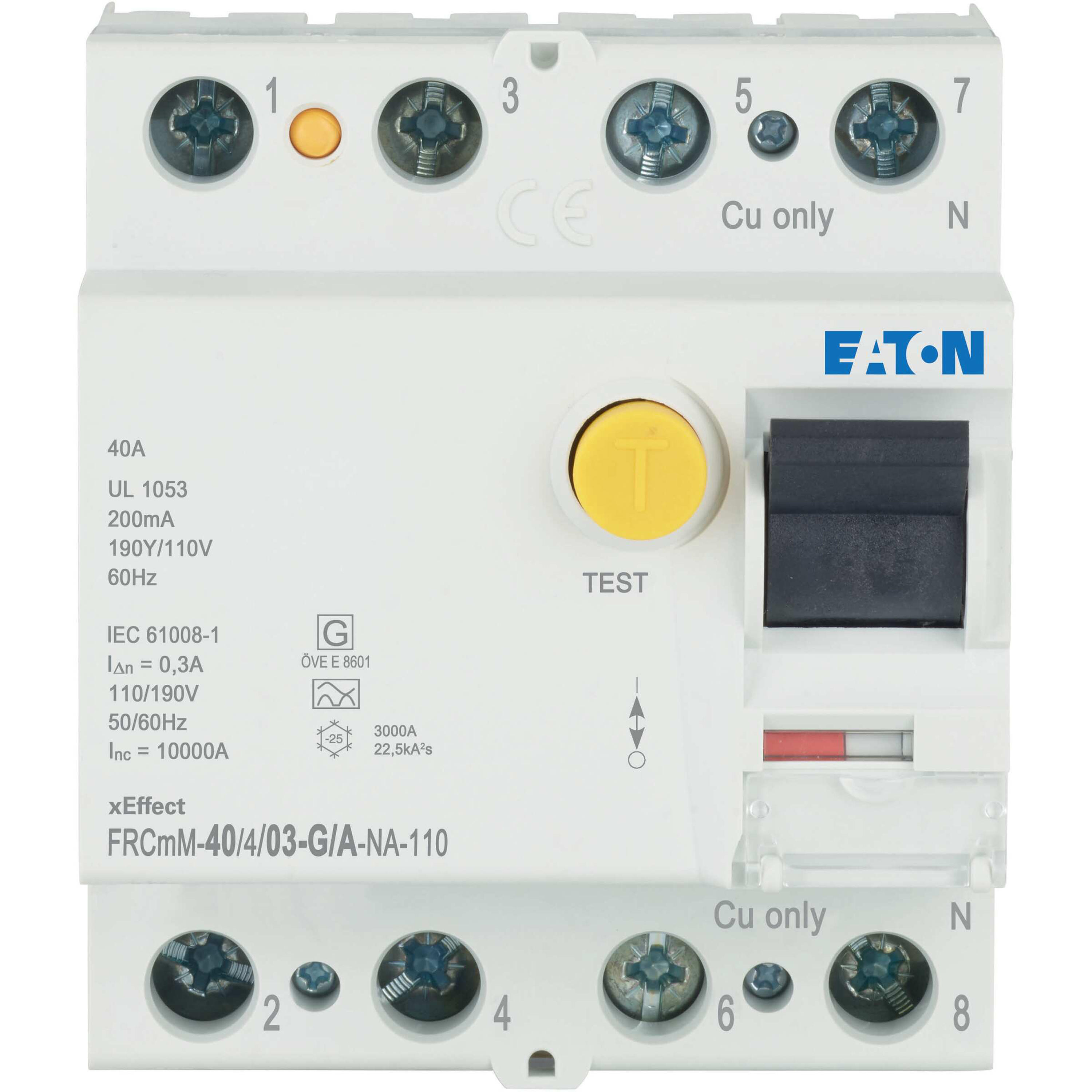 FRCMM-40/4/03-G/A-NA-110 Wyłącznik różnicowoprądowy 10kA, In=40A, IΔN=0,3A, Typ G/A, 4-bieg. Seria FRCMM NA 110VAC