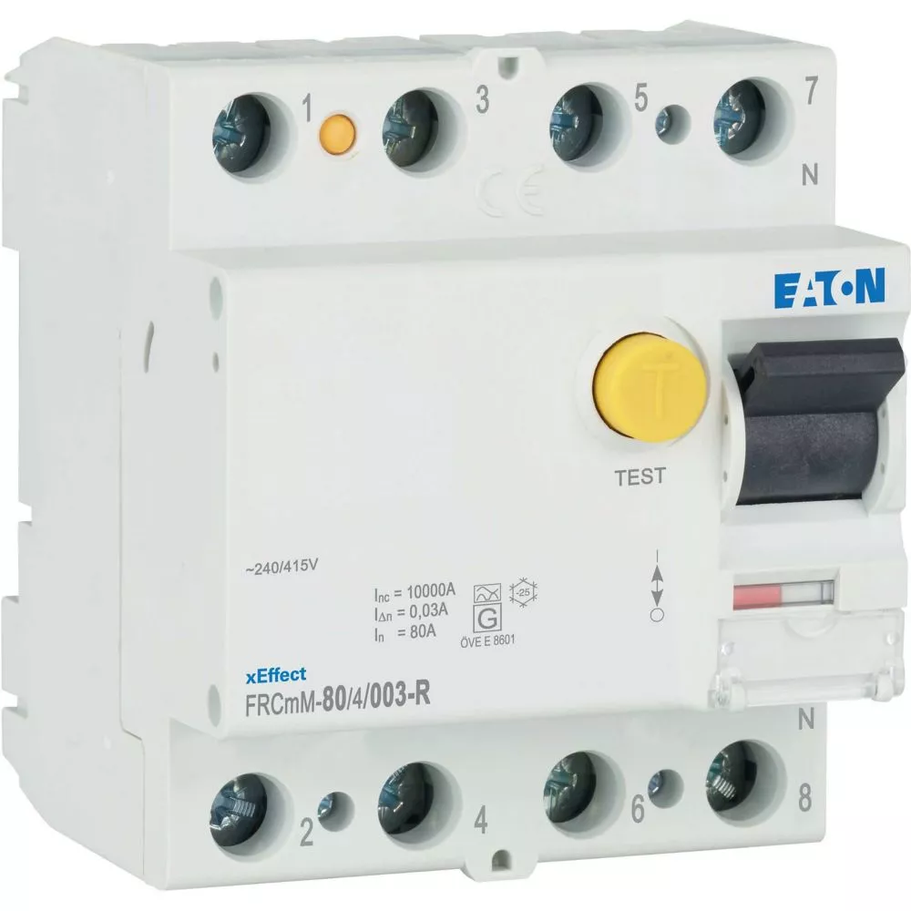 Fehlerstrom-Schutzschalter FRCmM, 4-polig, Bemessungsstrom Ein: 80 A, Bemessungskurzschlussfestigkeit Icn: 10 kA mit Vorsicherung kA, Bemessungsfehlerstrom IΔN: 0,03 A, Fehlerstrom-Schutzschalter für Röntgenanwendungen