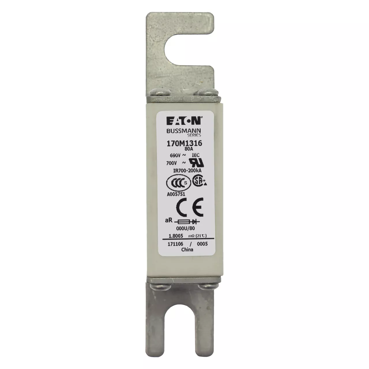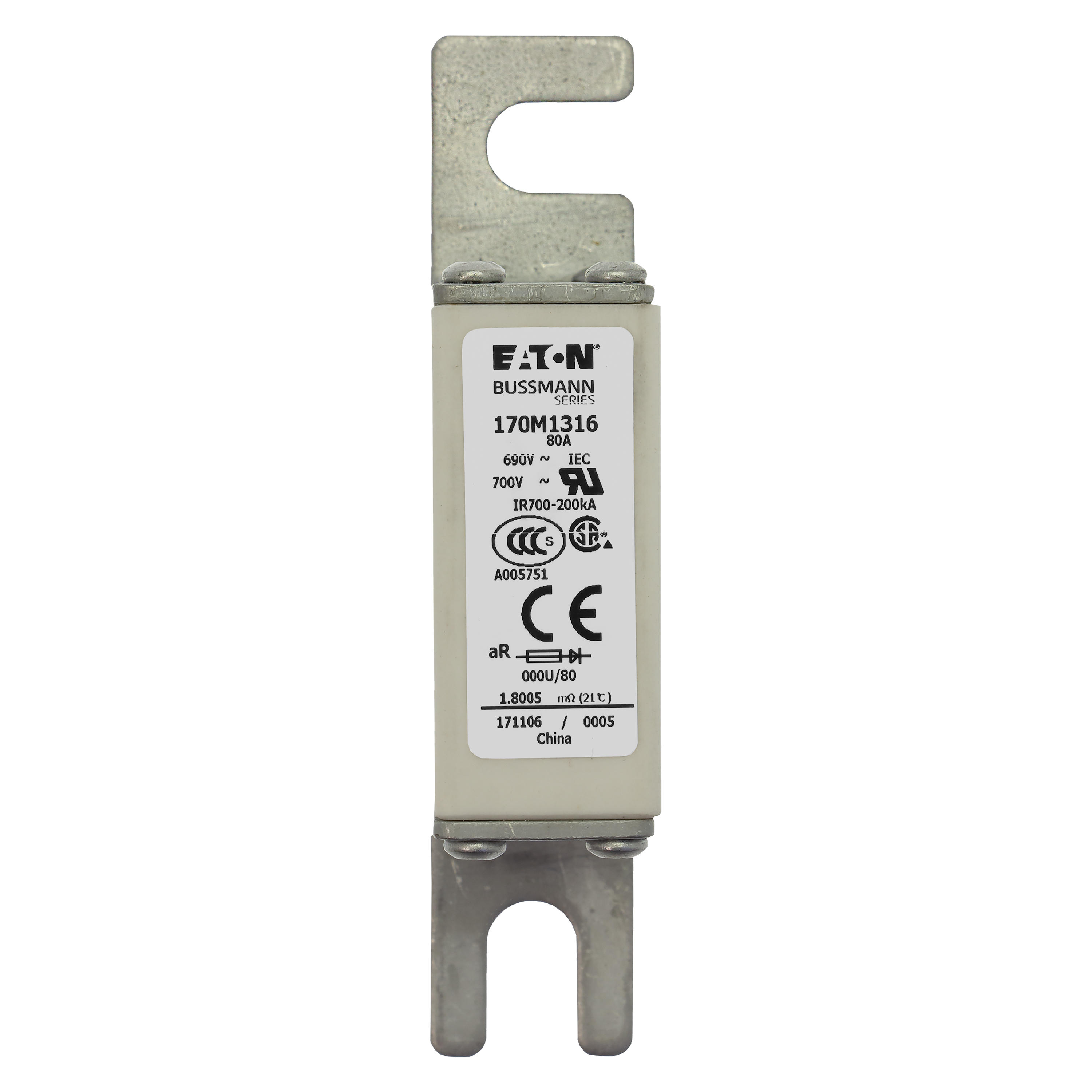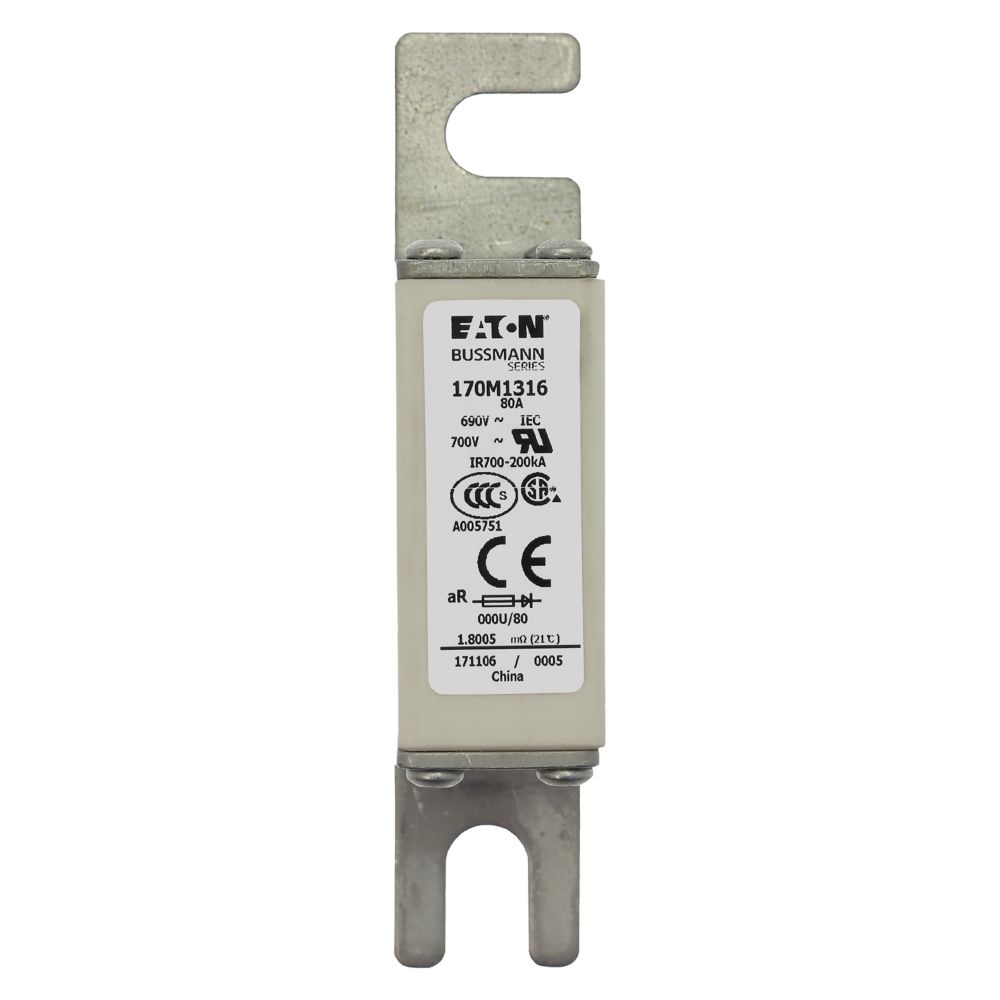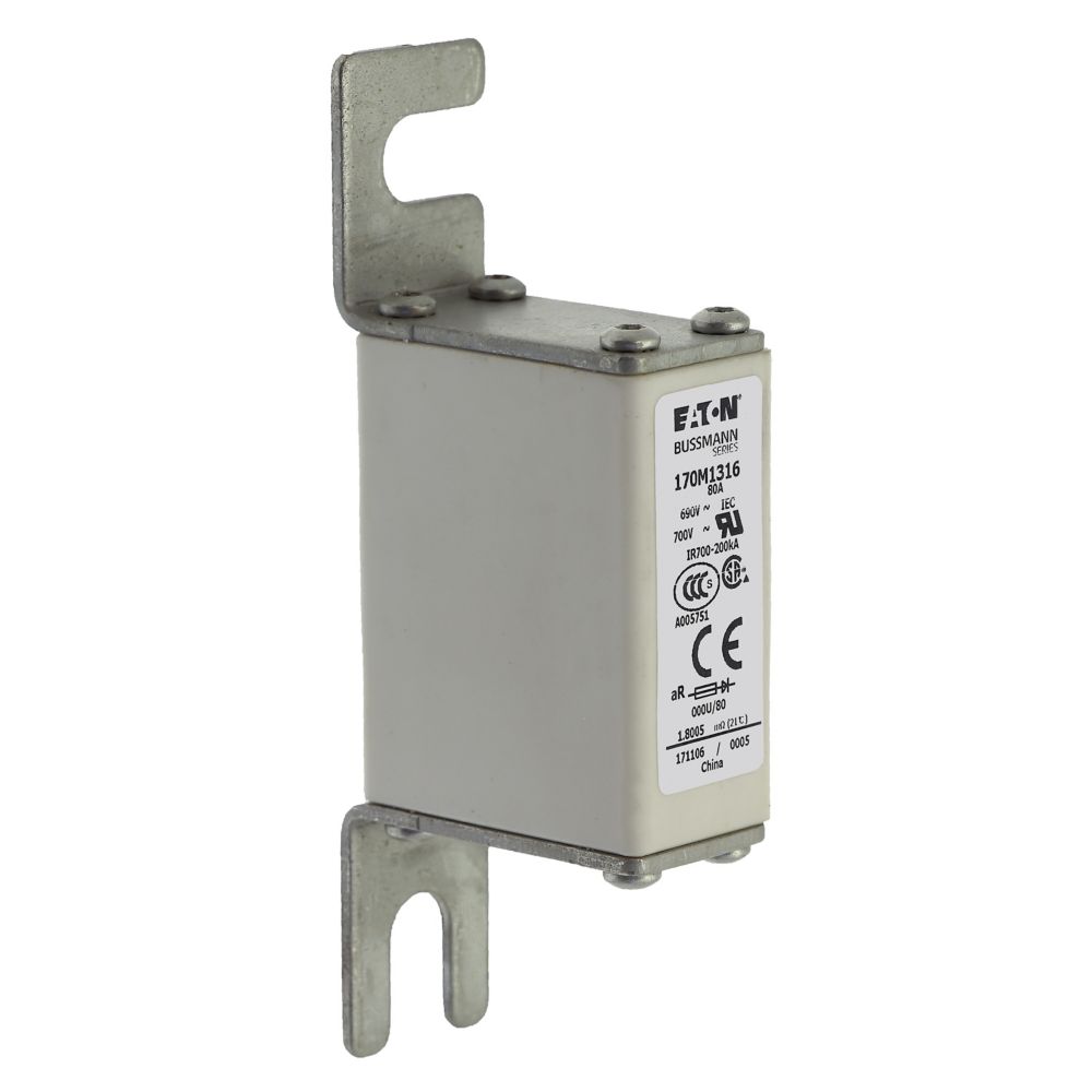 170M1316 Wkładka szybka, 80 A, AC 690 V, DIN 000, 21 x 40 x 100 mm, aR, DIN, IEC