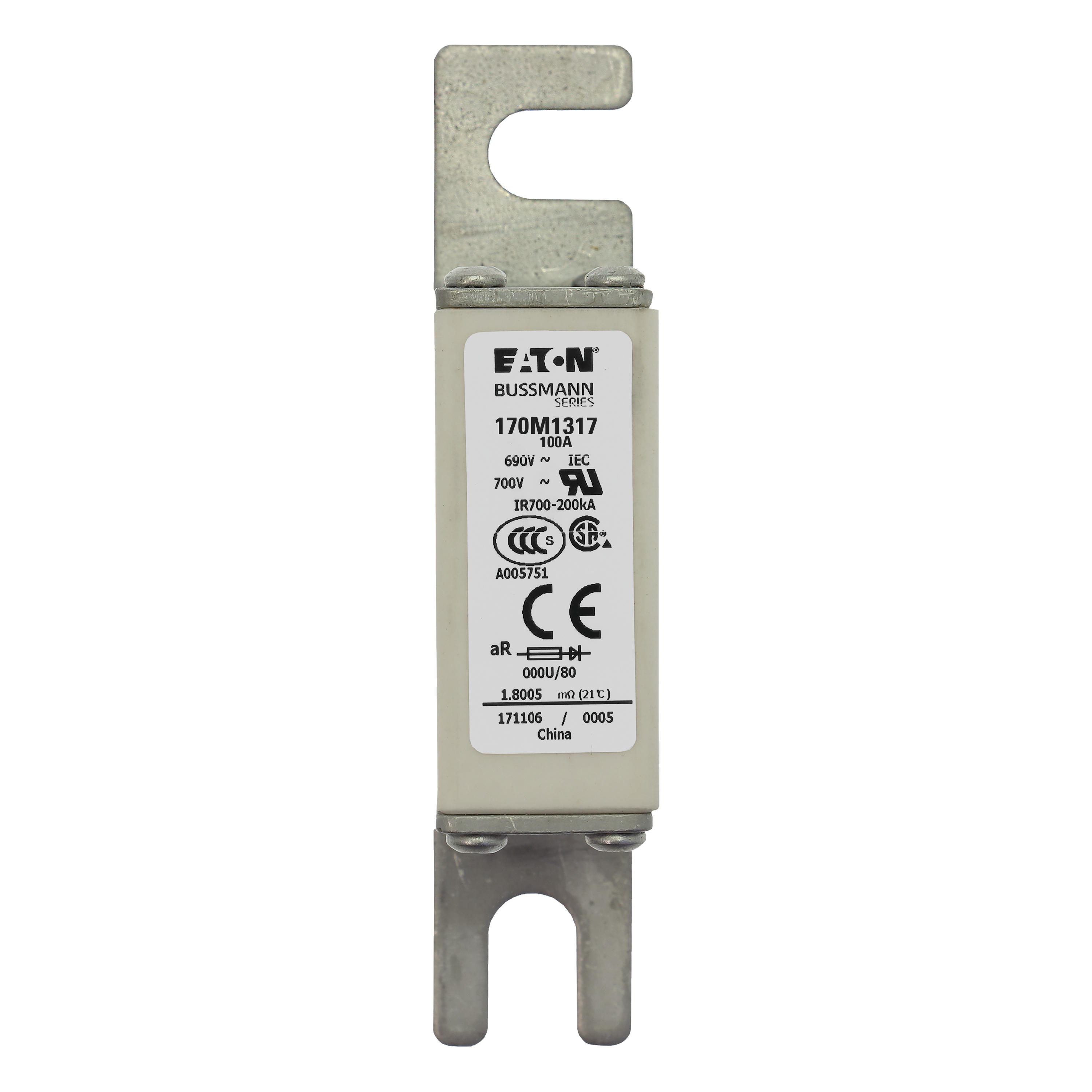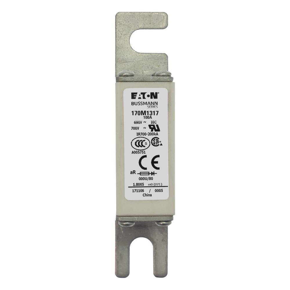 170M1317 Wkładka szybka, 100 A, AC 690 V, DIN 000, 21 x 40 x 100 mm, aR, DIN, IEC