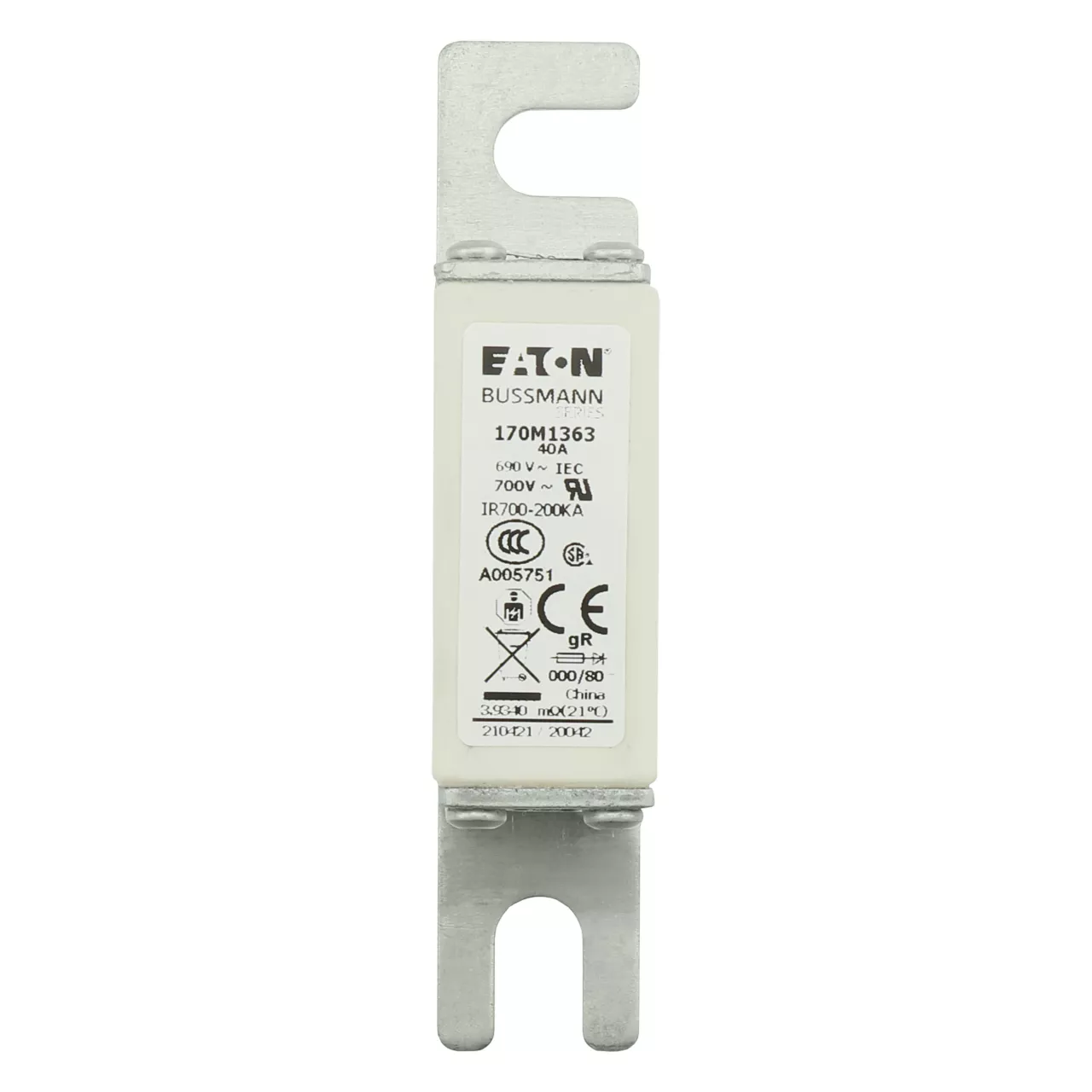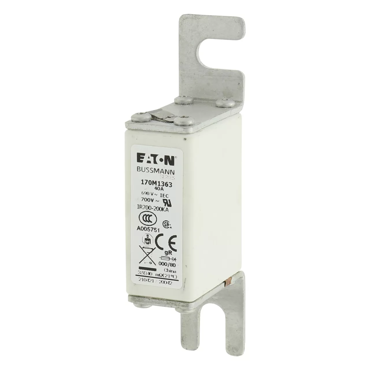 170M1363 Wkładka szybka, 40 A, AC 690 V, DIN 000, 21 x 40 x 100 mm, gR, DIN, IEC