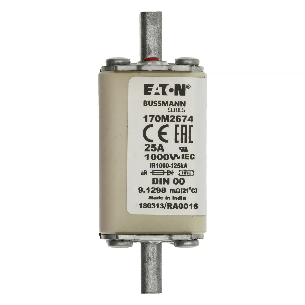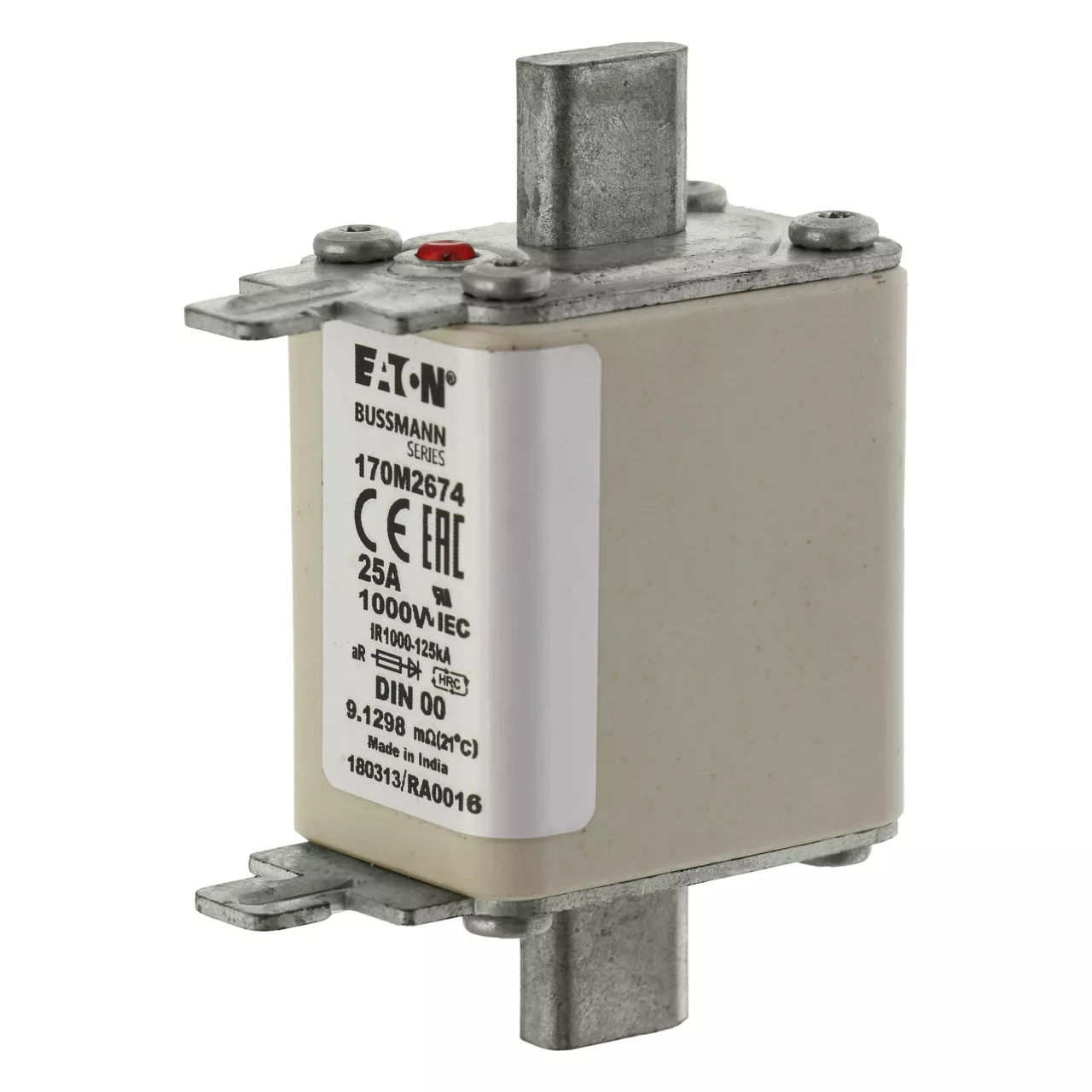 170M2674 Wkładka szybka, 25 A, AC 1000 V, DIN 00, aR, DIN, IEC, nieizolowane uchwyty