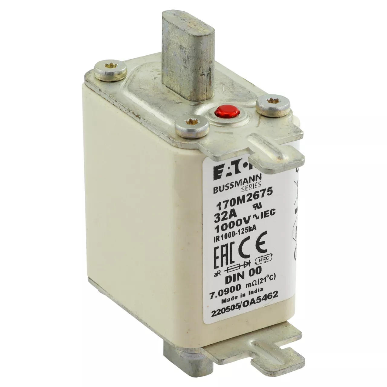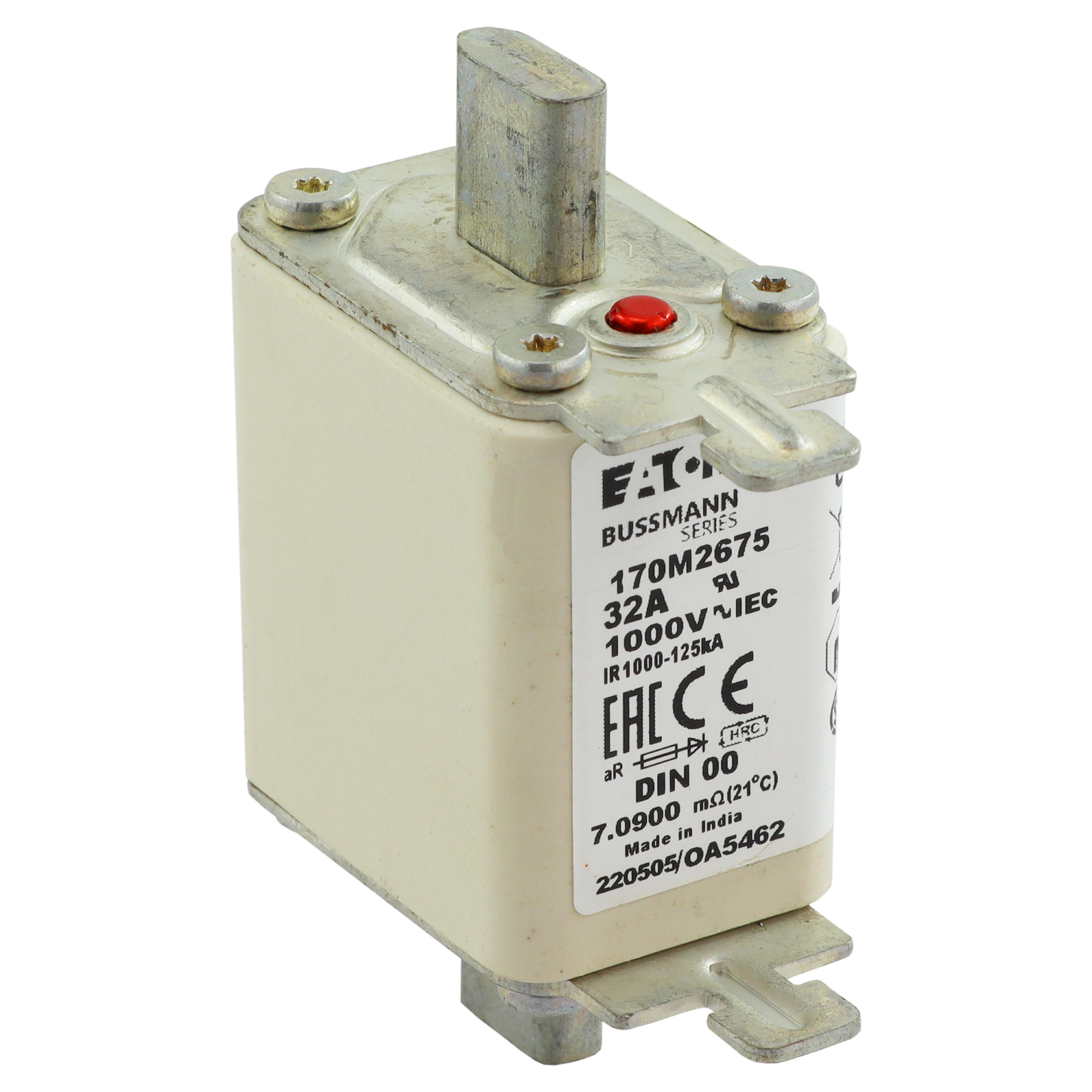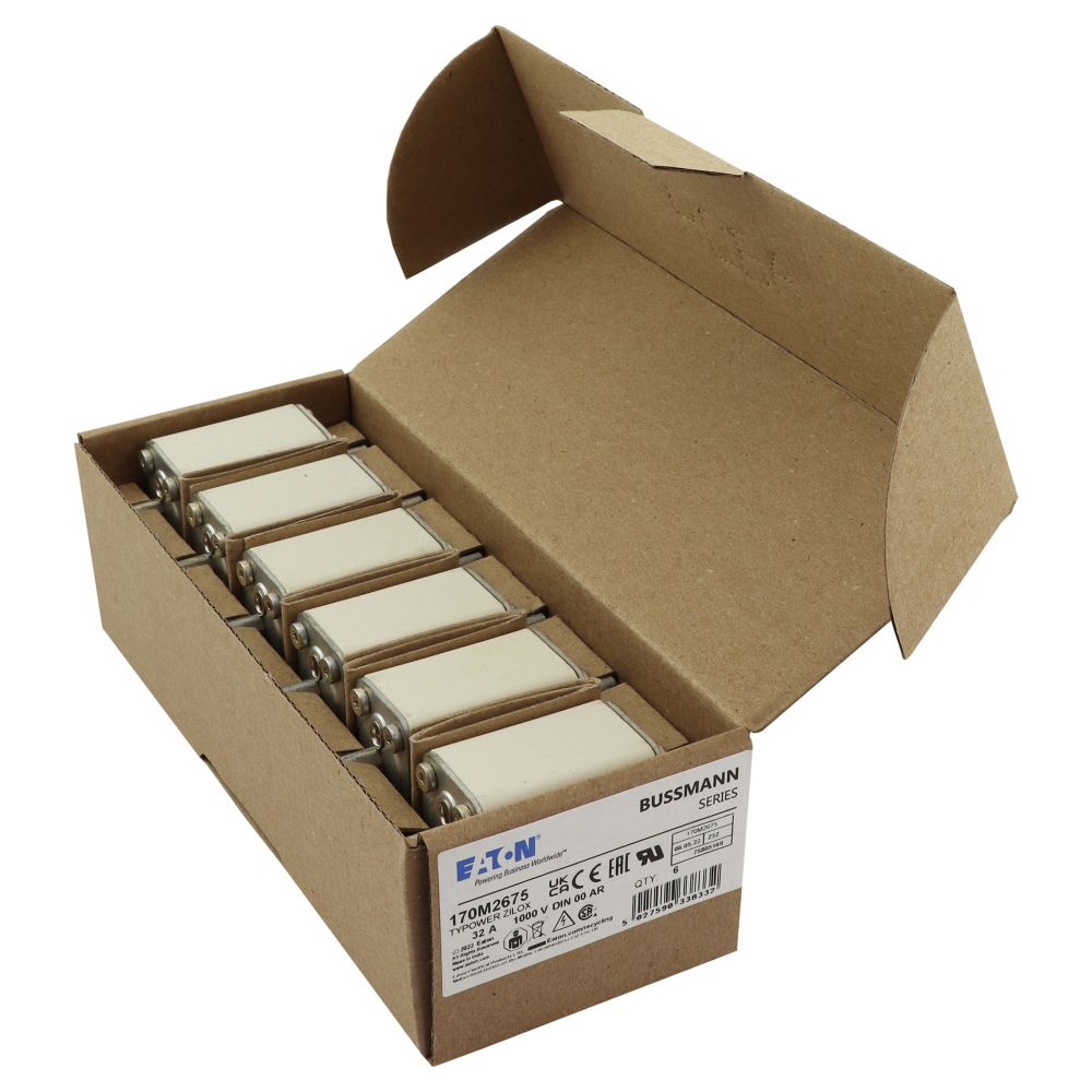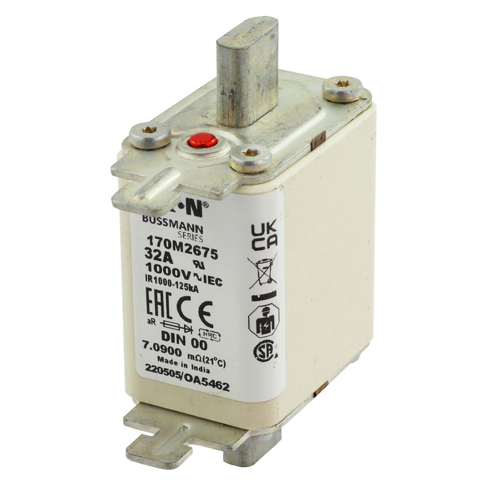 170M2675 Wkładka szybka, 32 A, AC 1000 V, DIN 00, aR, DIN, IEC, nieizolowane uchwyty