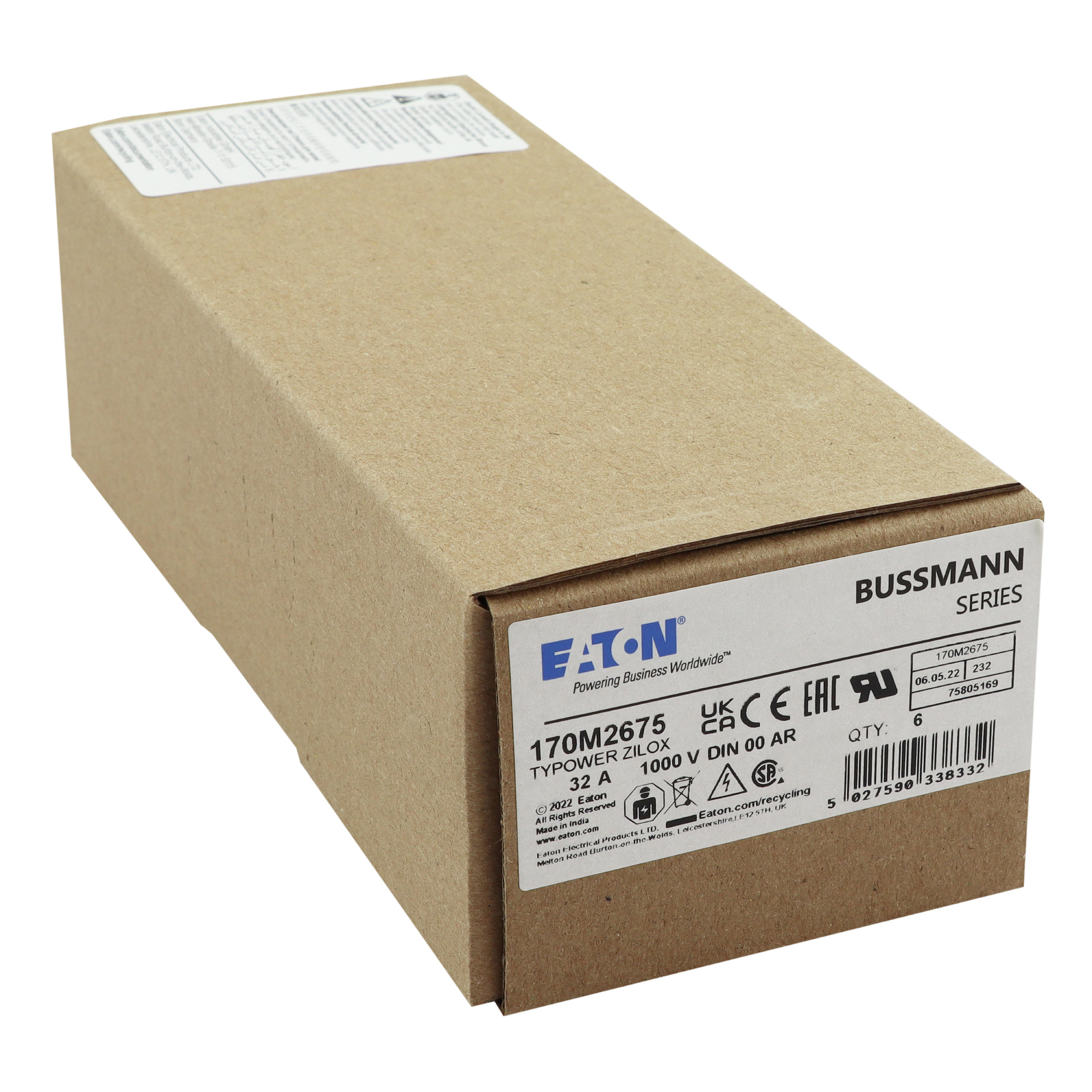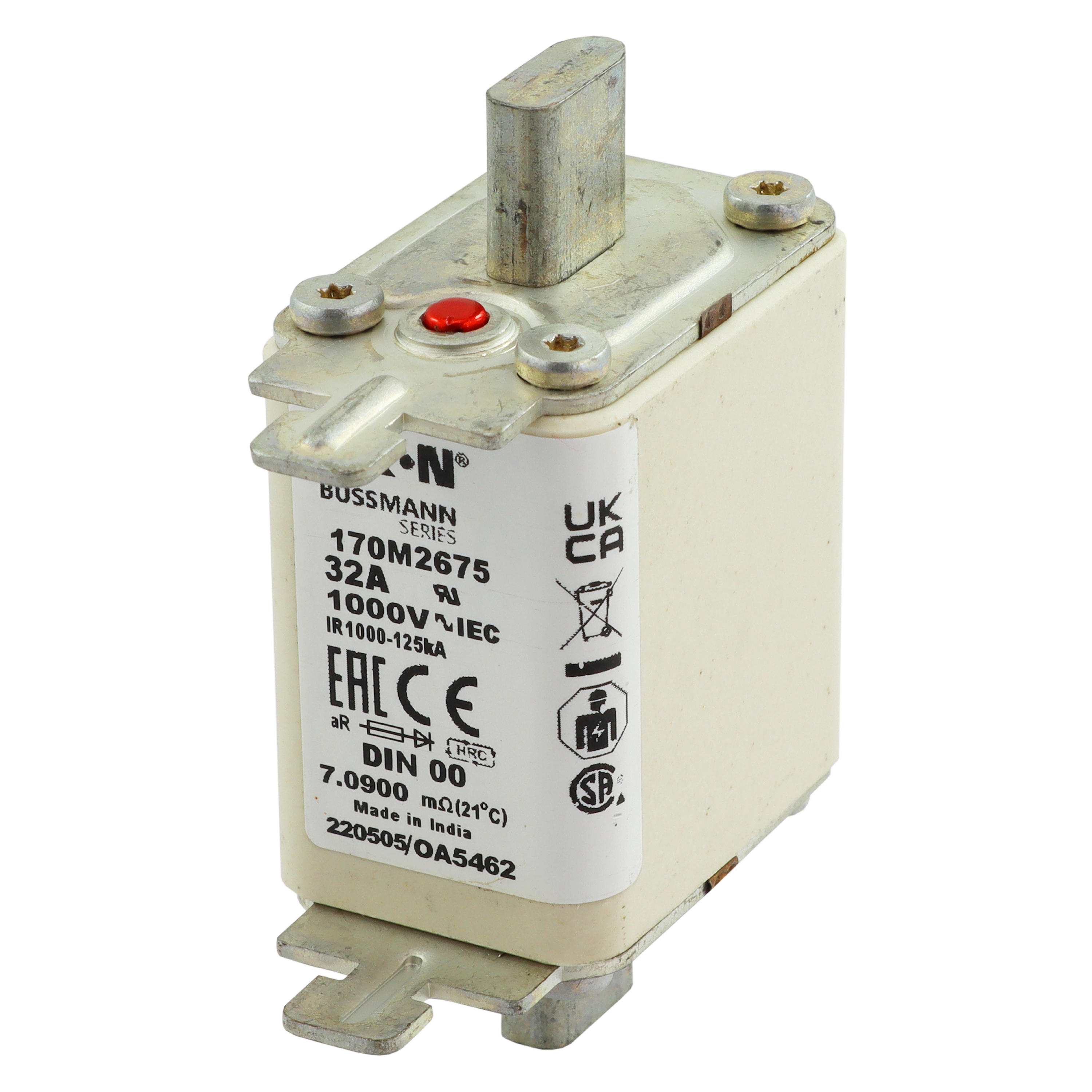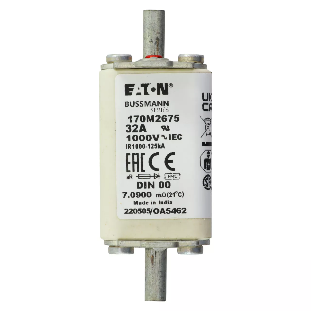 170M2675 Wkładka szybka, 32 A, AC 1000 V, DIN 00, aR, DIN, IEC, nieizolowane uchwyty
