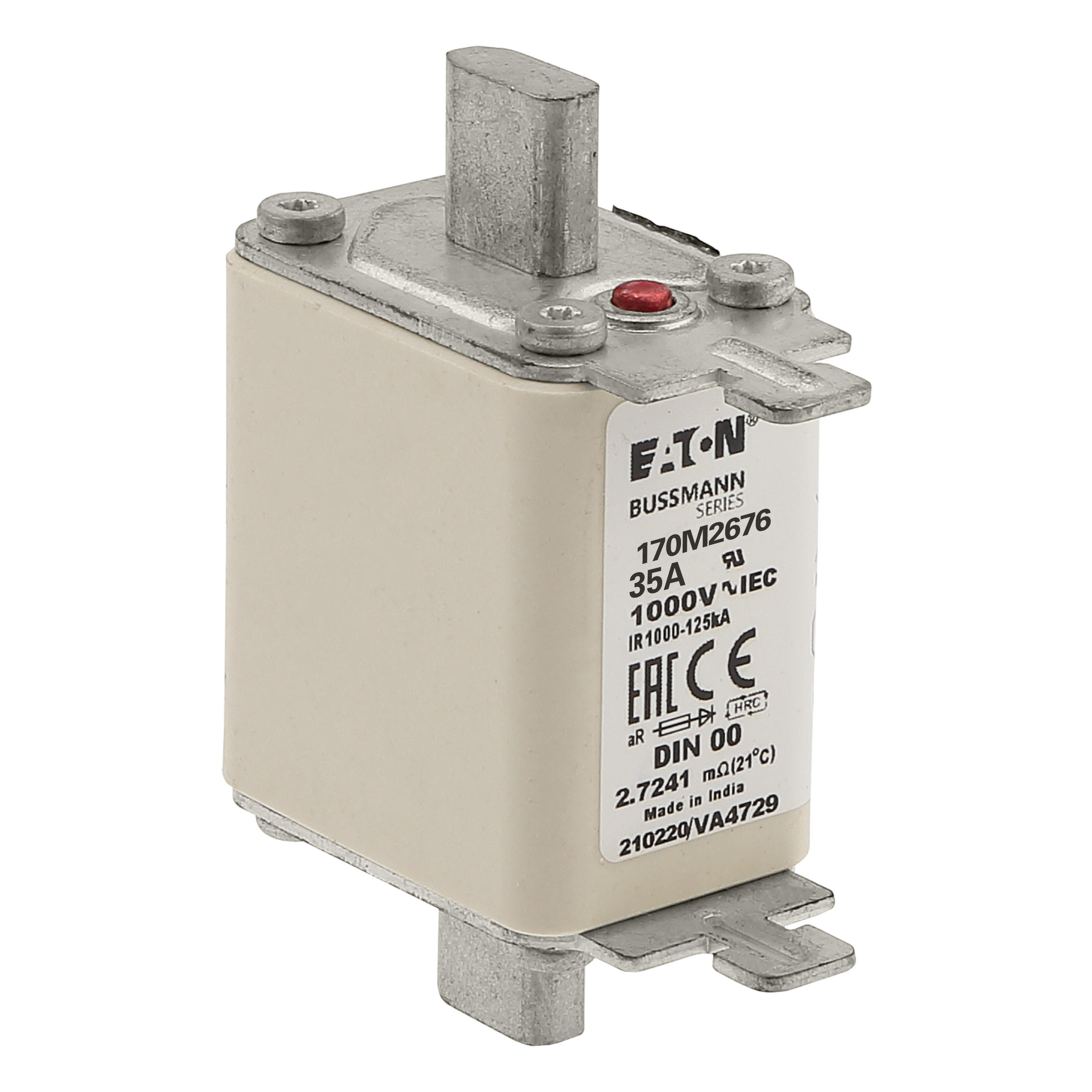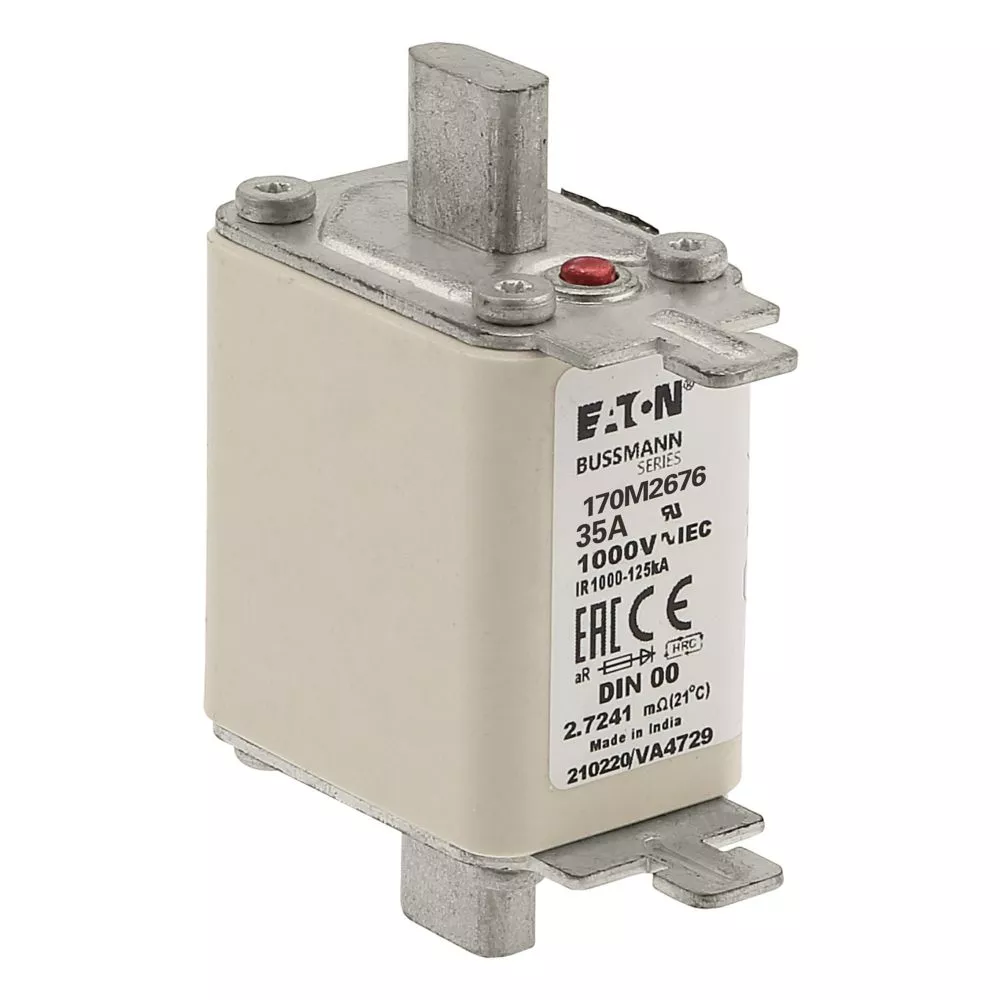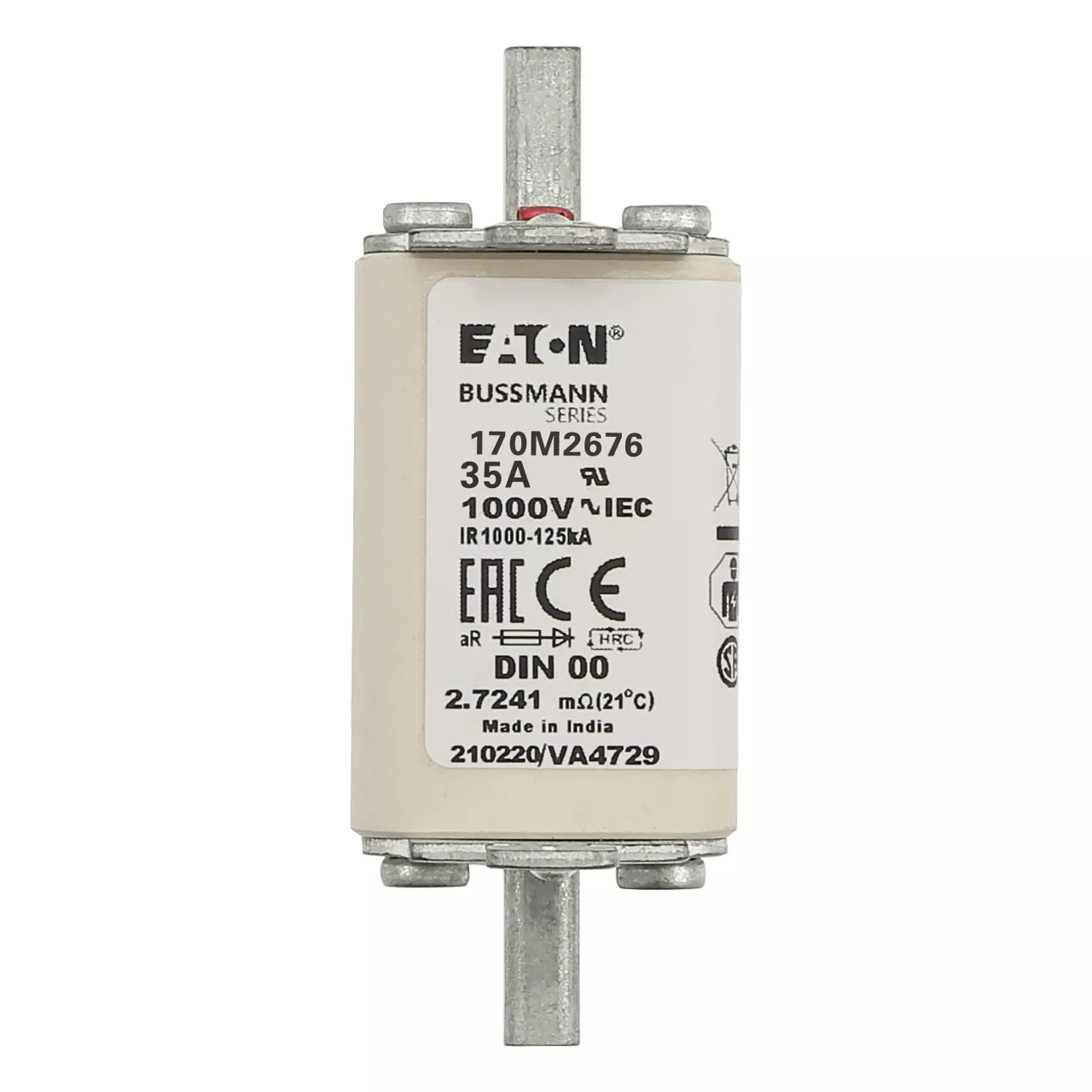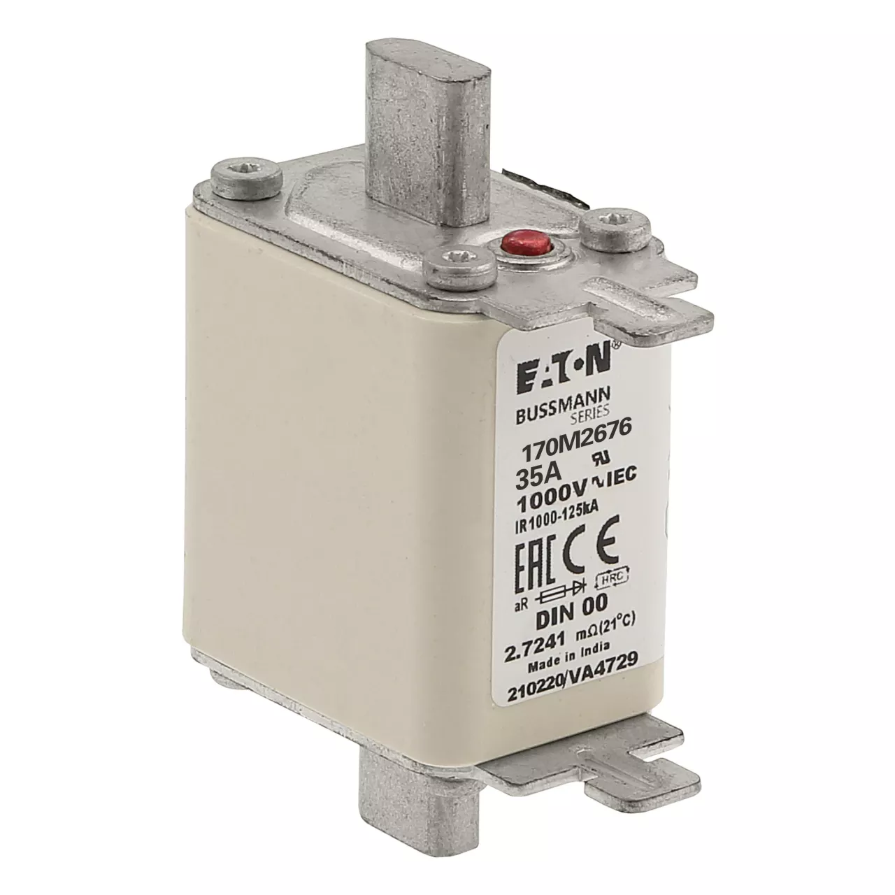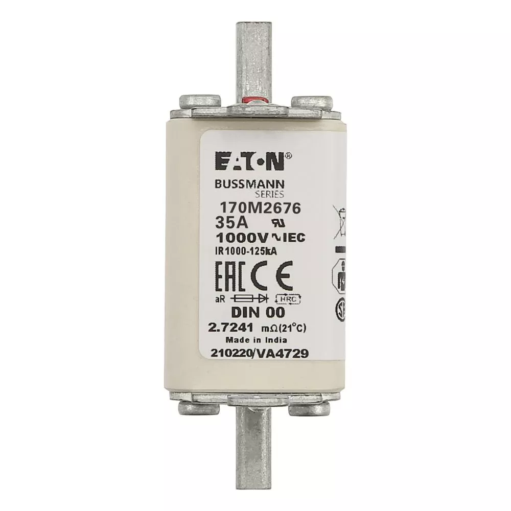 170M2676 Wkładka szybka, 35 A, AC 1000 V, DIN 00, aR, DIN, IEC, nieizolowane uchwyty