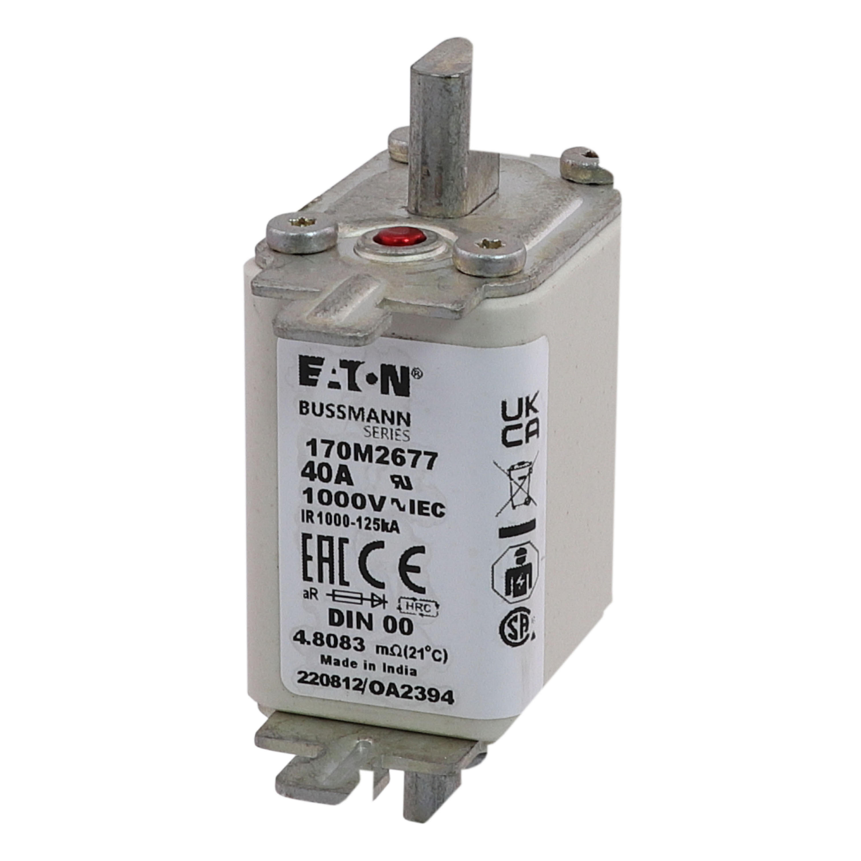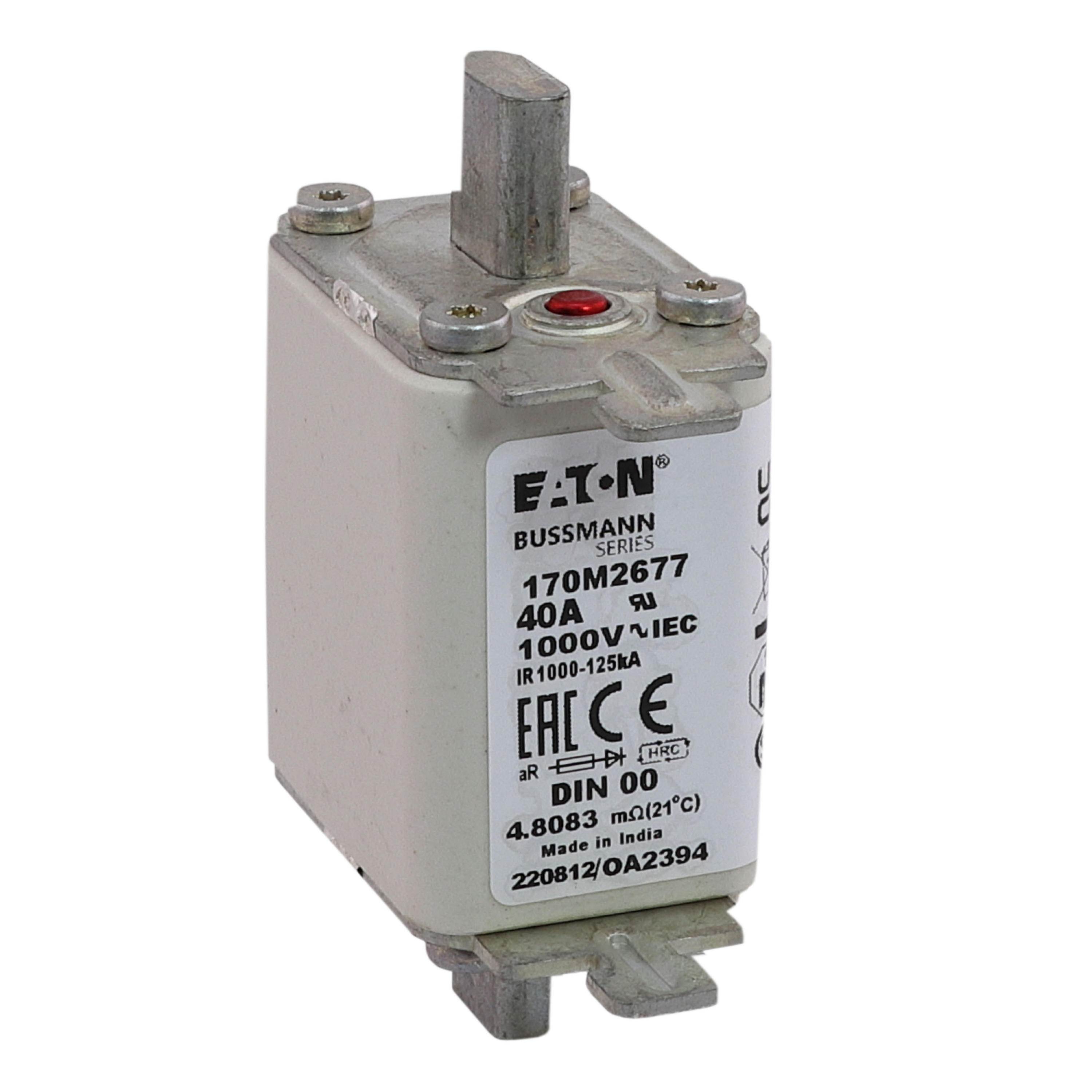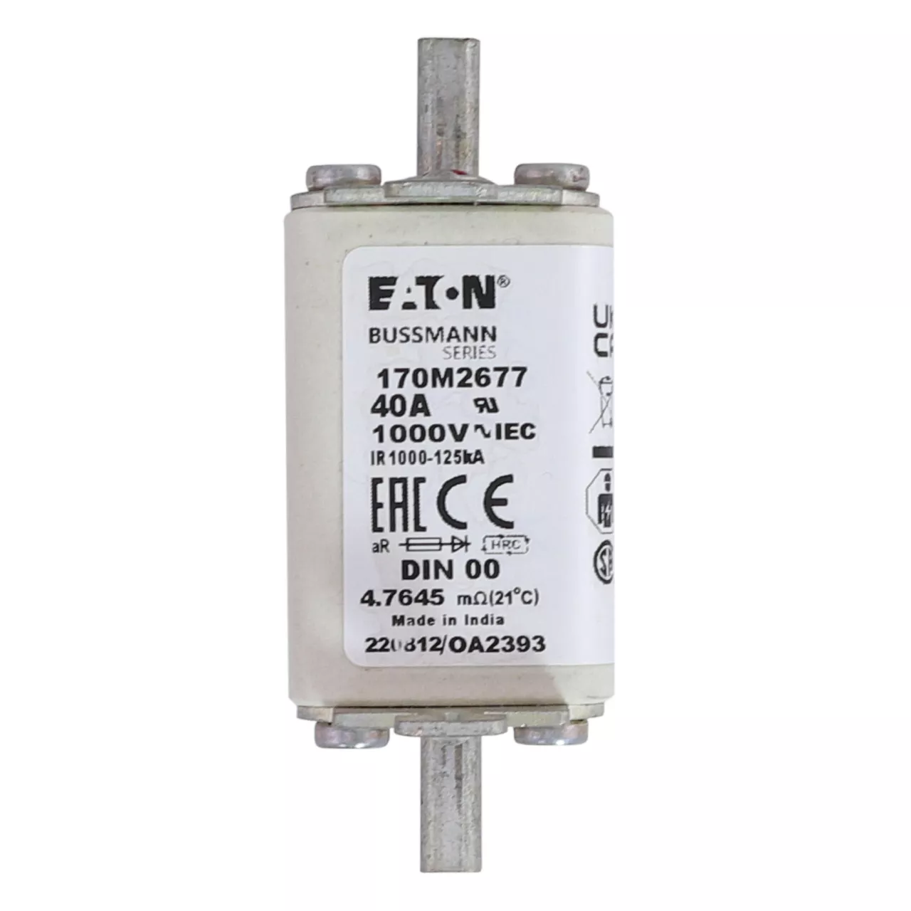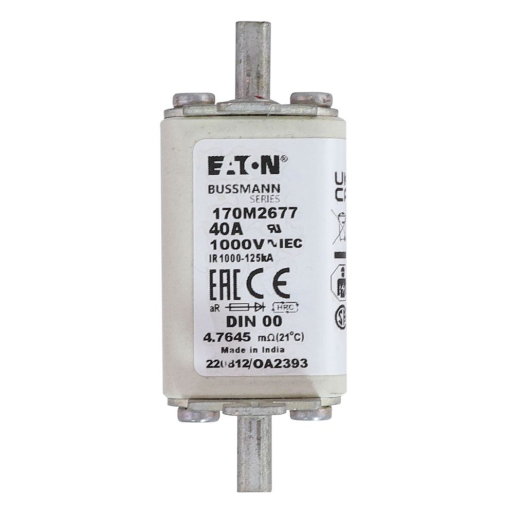 170M2677 Wkładka szybka, 40 A, AC 1000 V, DIN 00, aR, DIN, IEC, nieizolowane uchwyty