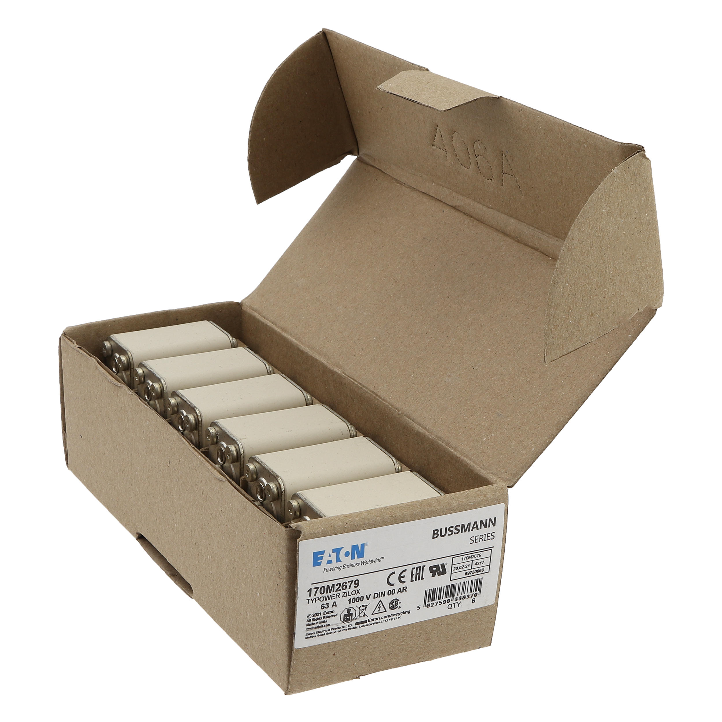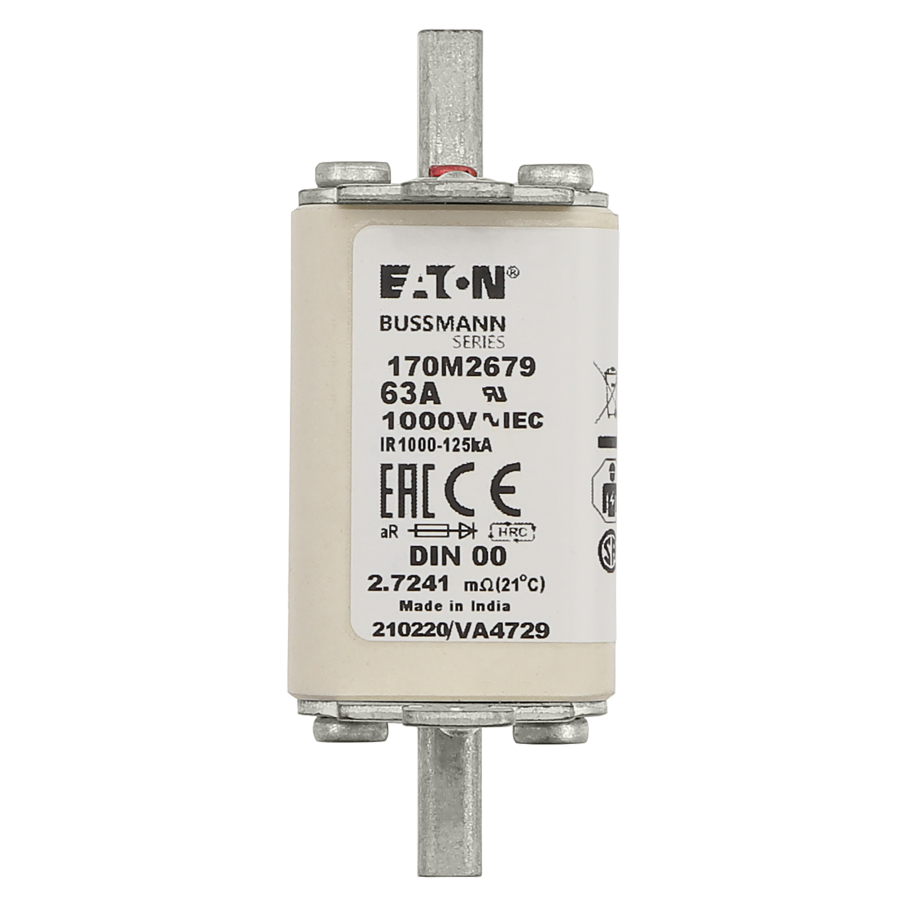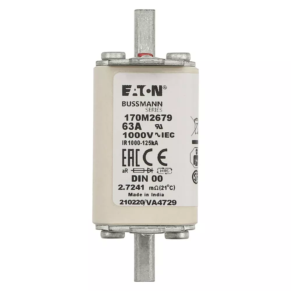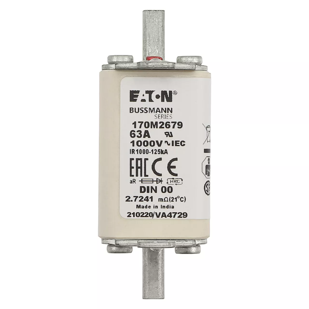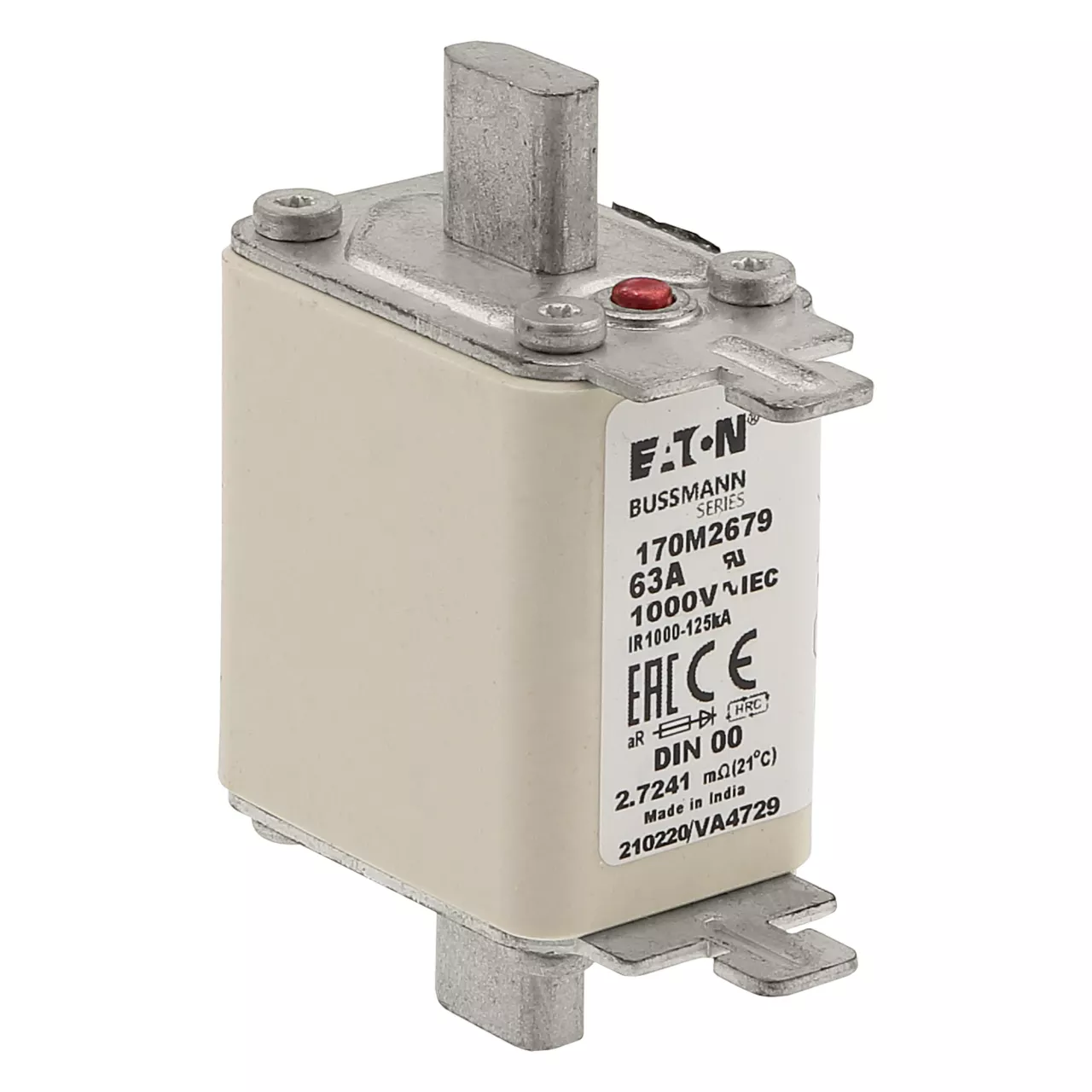 170M2679 Wkładka szybka, 63 A, AC 1000 V, DIN 00, aR, DIN, IEC, nieizolowane uchwyty
