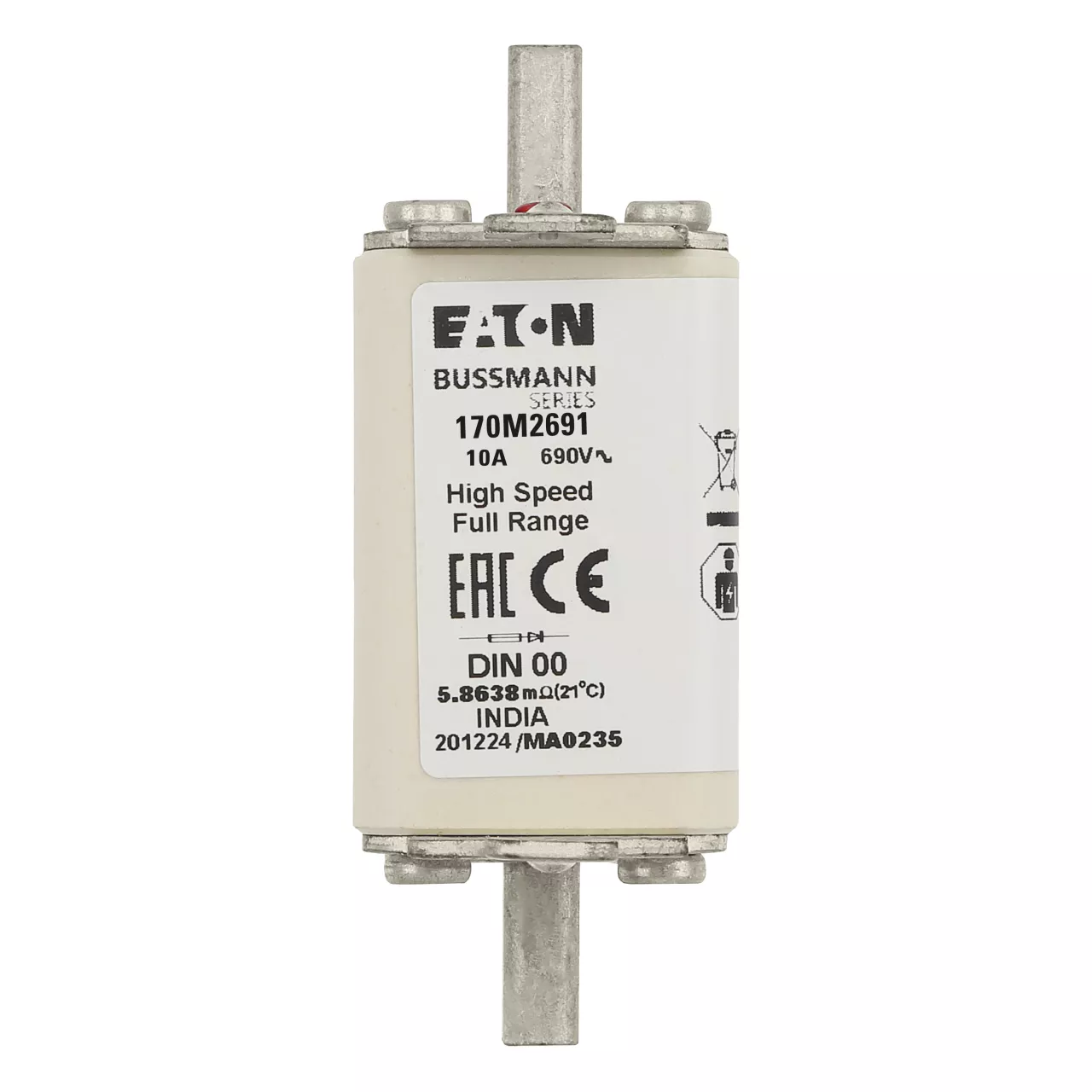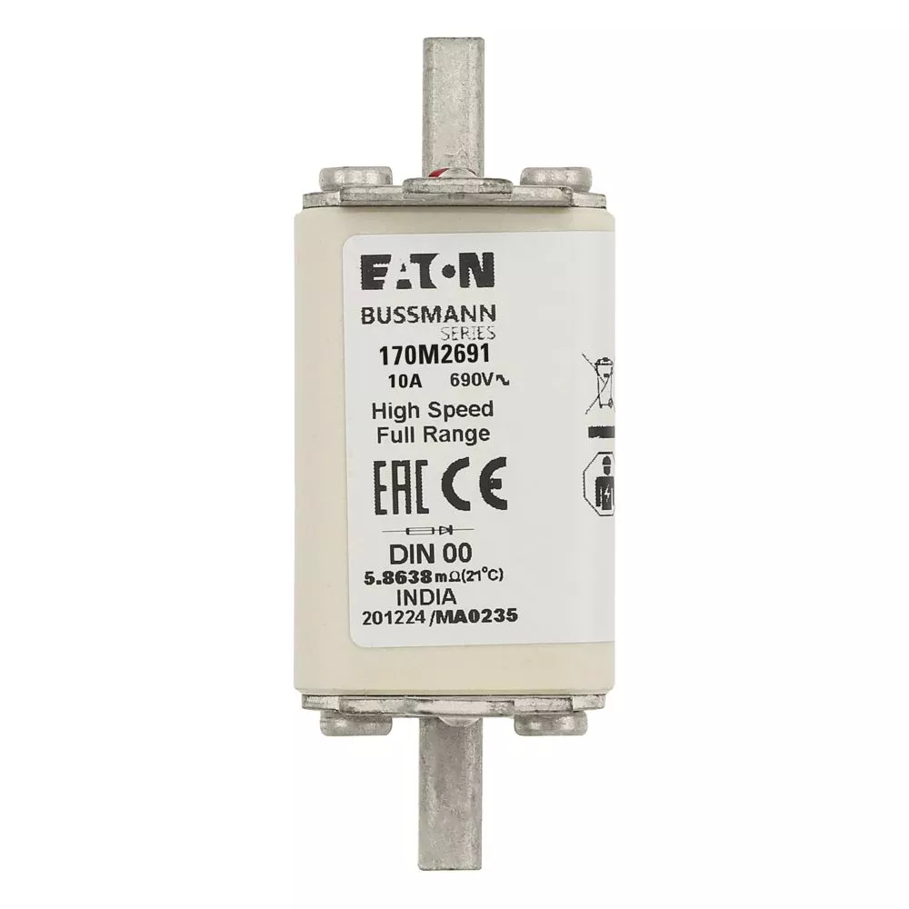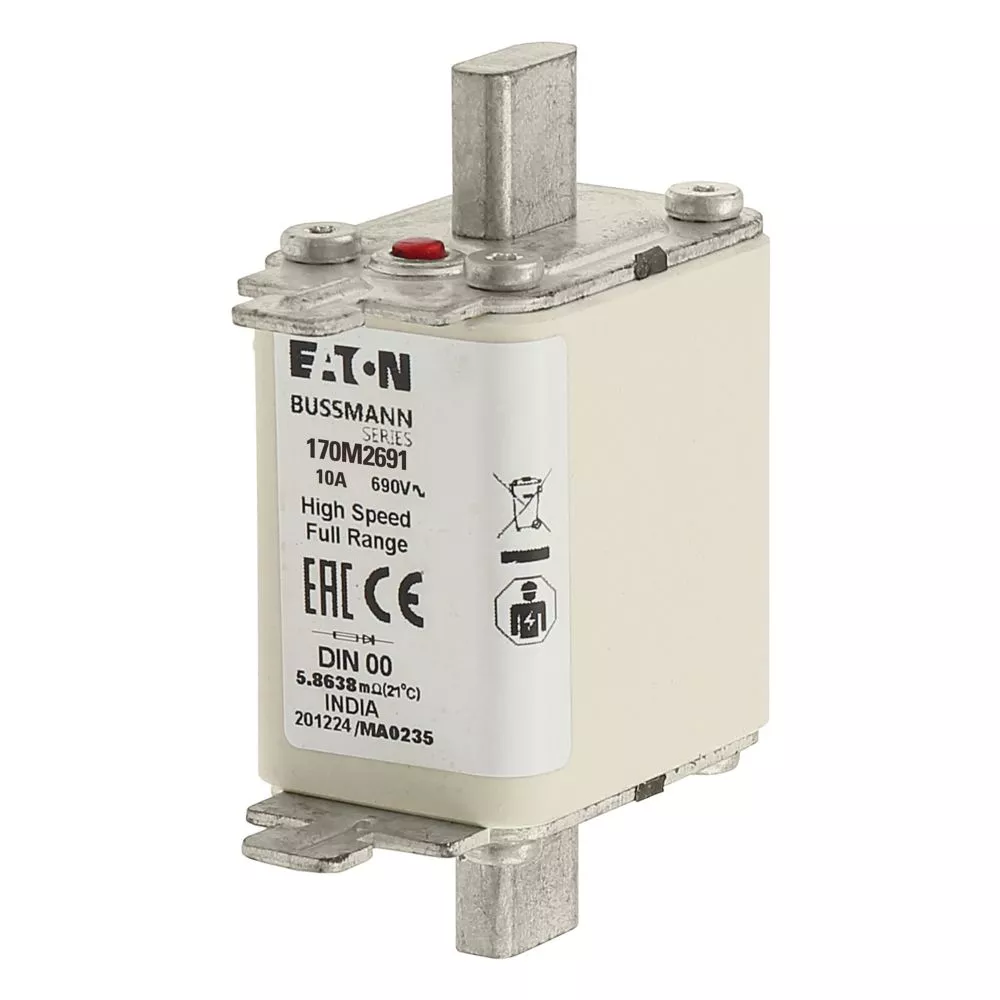 170M2691 Wkładka szybka, 10 A, AC 690 V, DIN 00, 30 x 60 x 79 mm, gR, DIN, IEC, pojedynczy wskaźnik