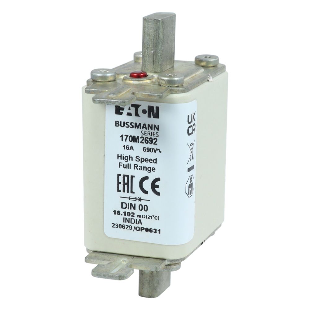 170M2692 Wkładka szybka, 16 A, AC 690 V, DIN 00, 30 x 60 x 79 mm, gR, DIN, IEC, pojedynczy wskaźnik