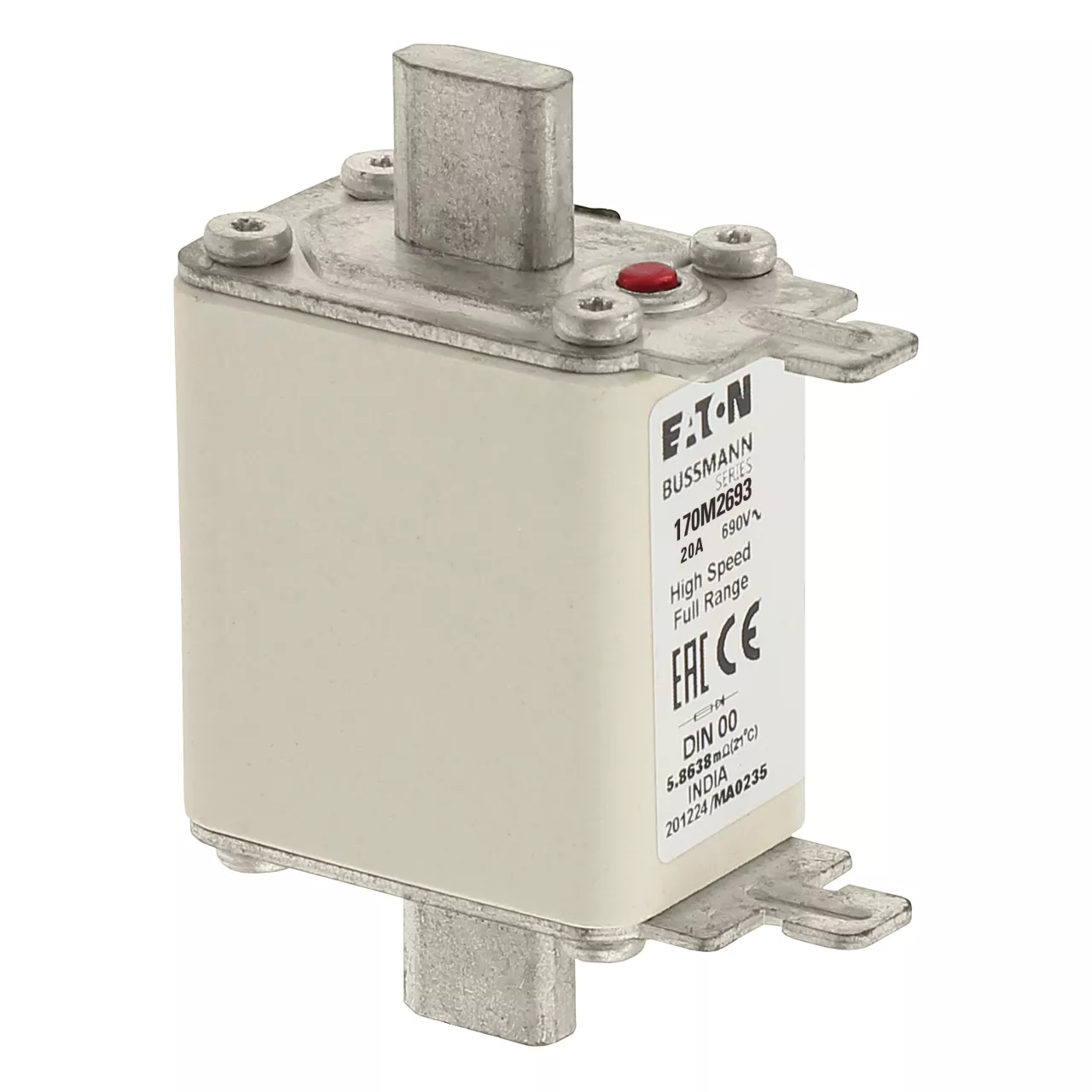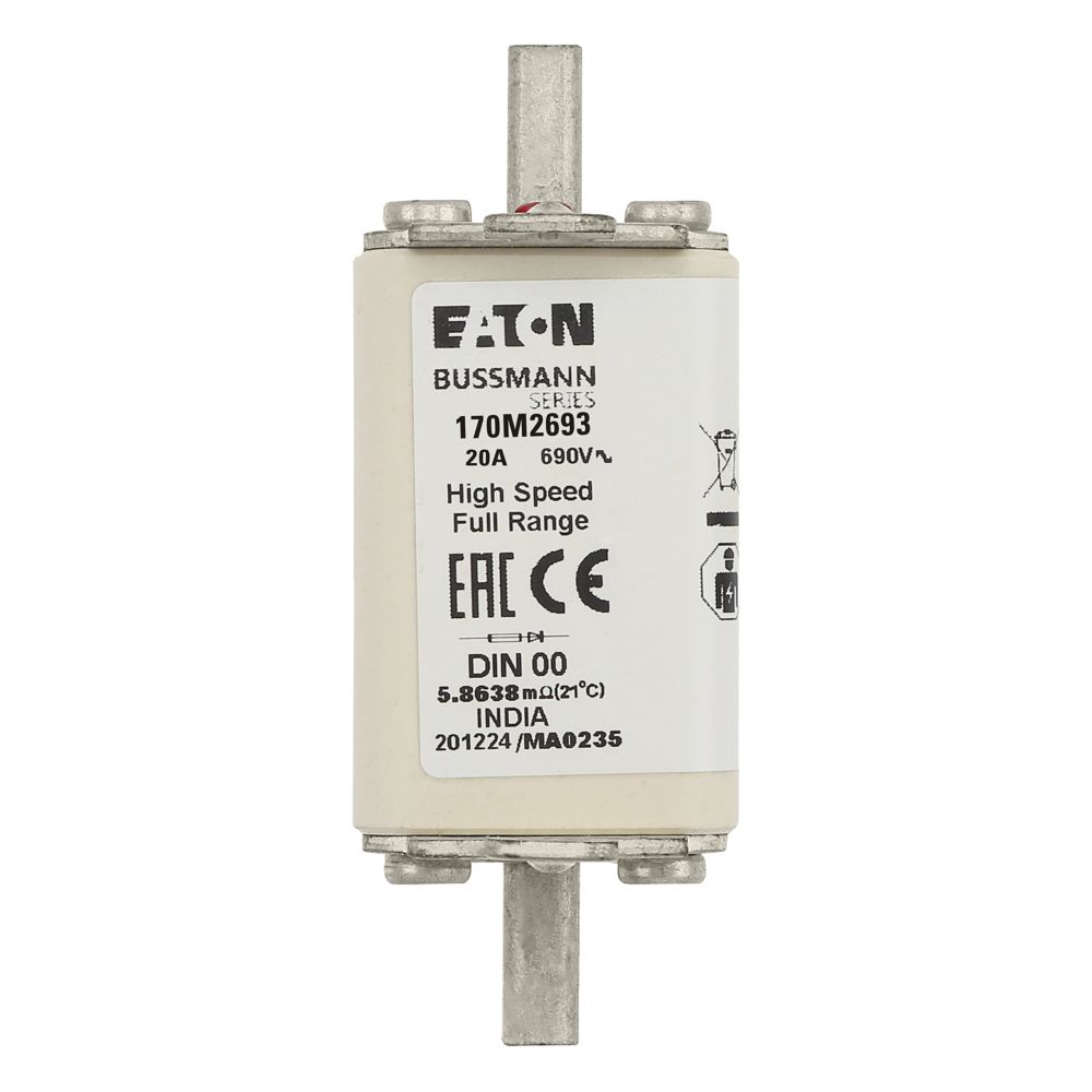 170M2693 Wkładka szybka, 20 A, AC 690 V, DIN 00, 30 x 60 x 79 mm, gR, DIN, IEC, pojedynczy wskaźnik