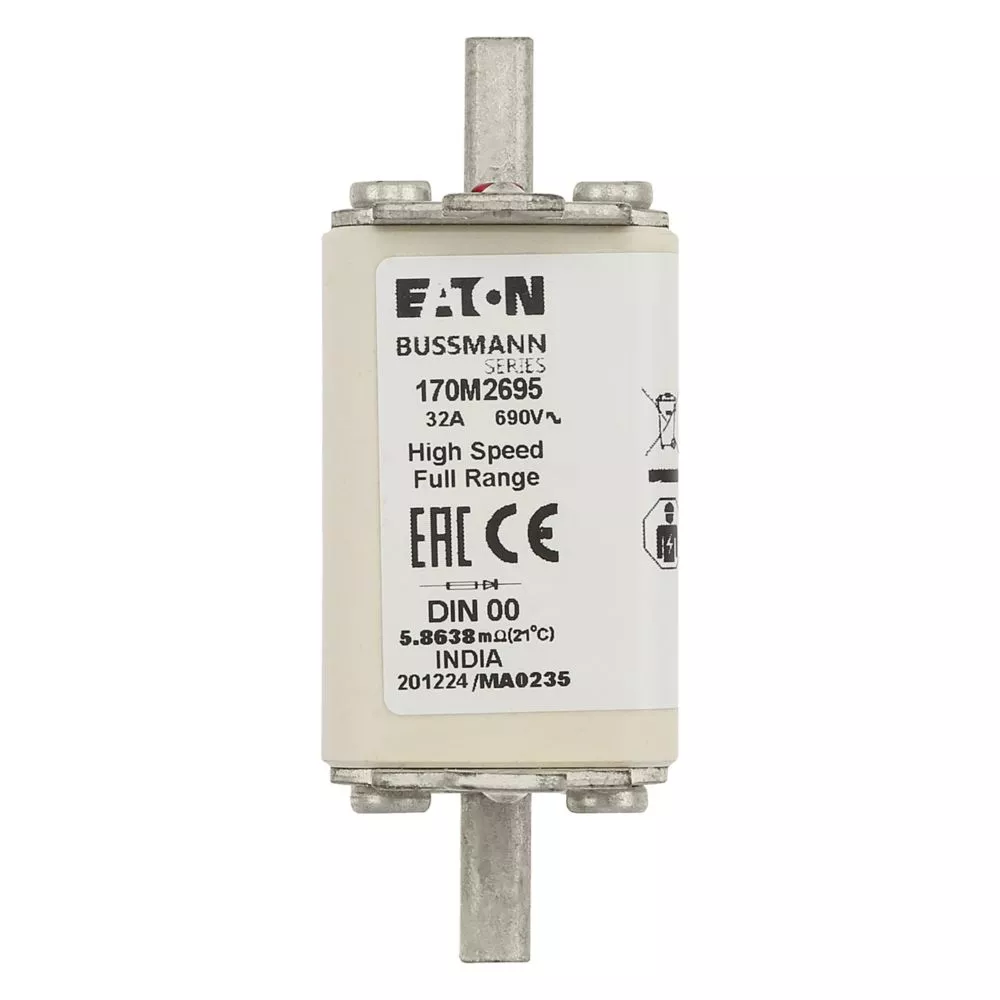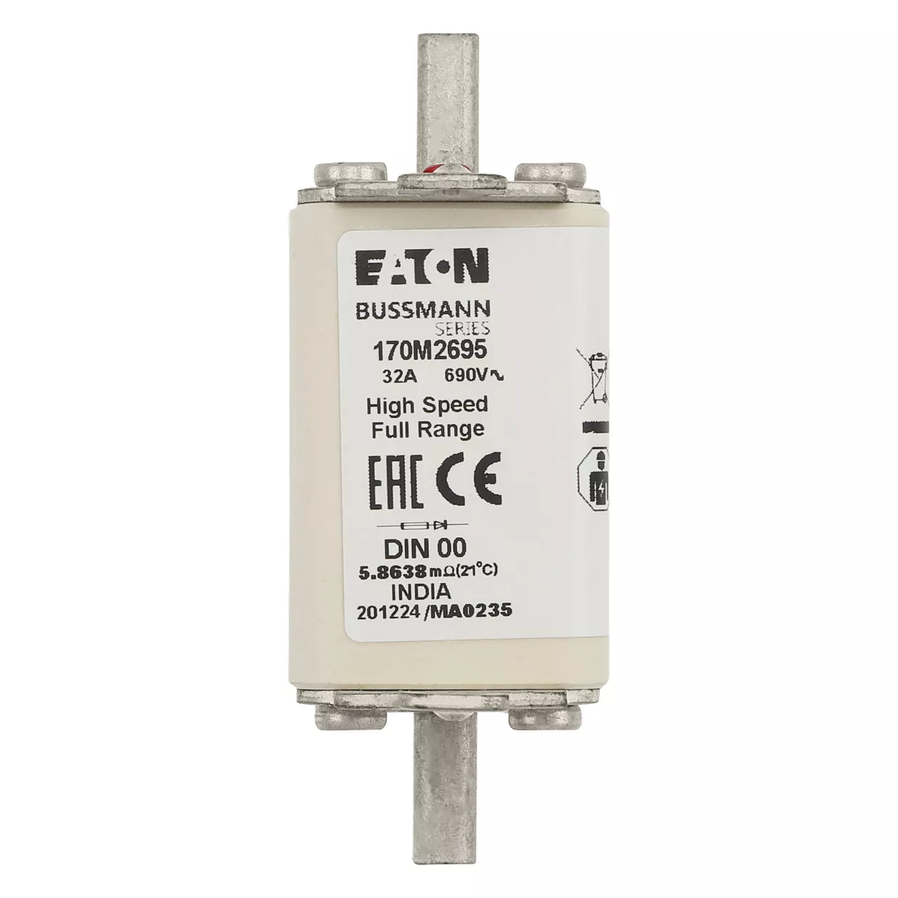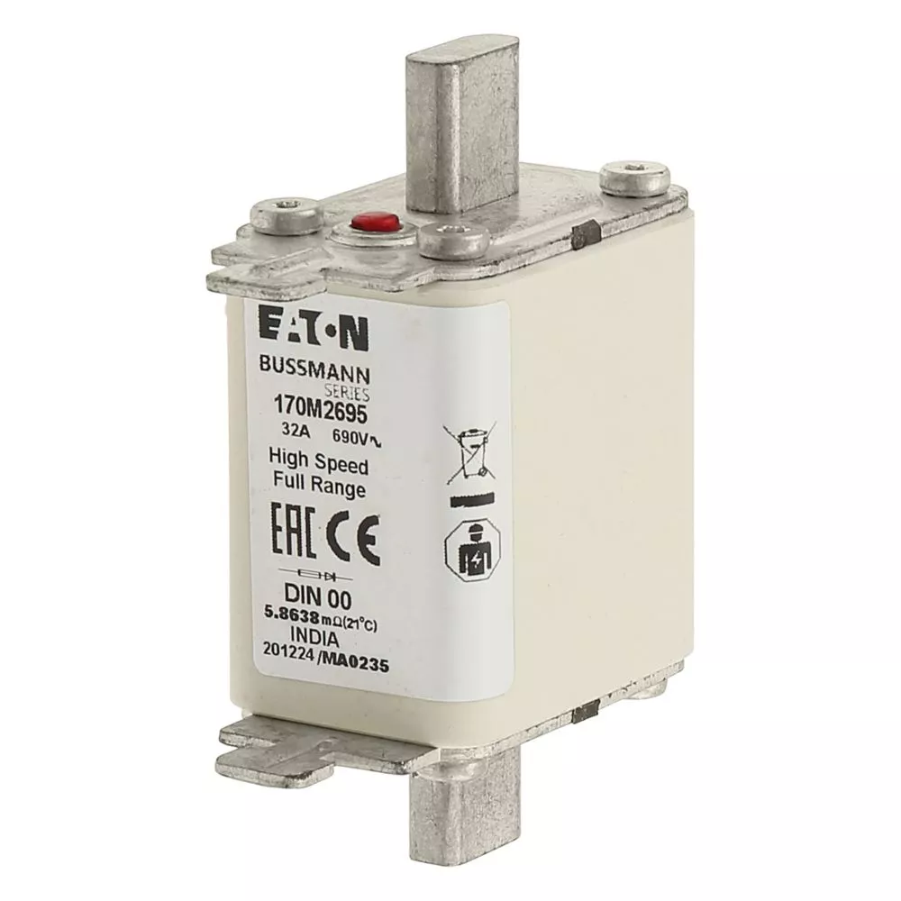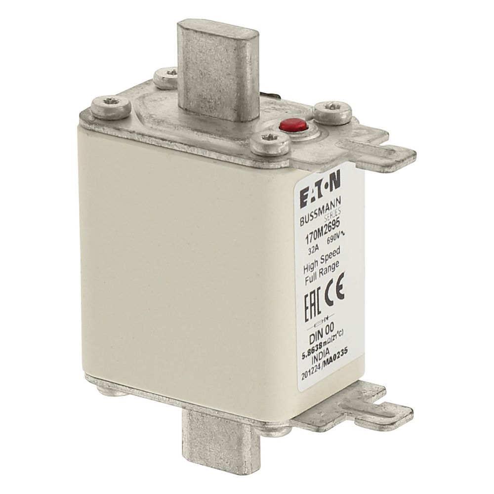 170M2695 Wkładka szybka, 32 A, AC 690 V, DIN 00, 30 x 60 x 79 mm, gR, DIN, IEC, pojedynczy wskaźnik
