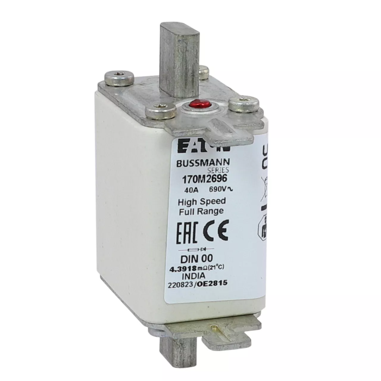 170M2696 Wkładka szybka, 40 A, AC 690 V, DIN 00, 30 x 60 x 79 mm, gR, DIN, IEC, pojedynczy wskaźnik