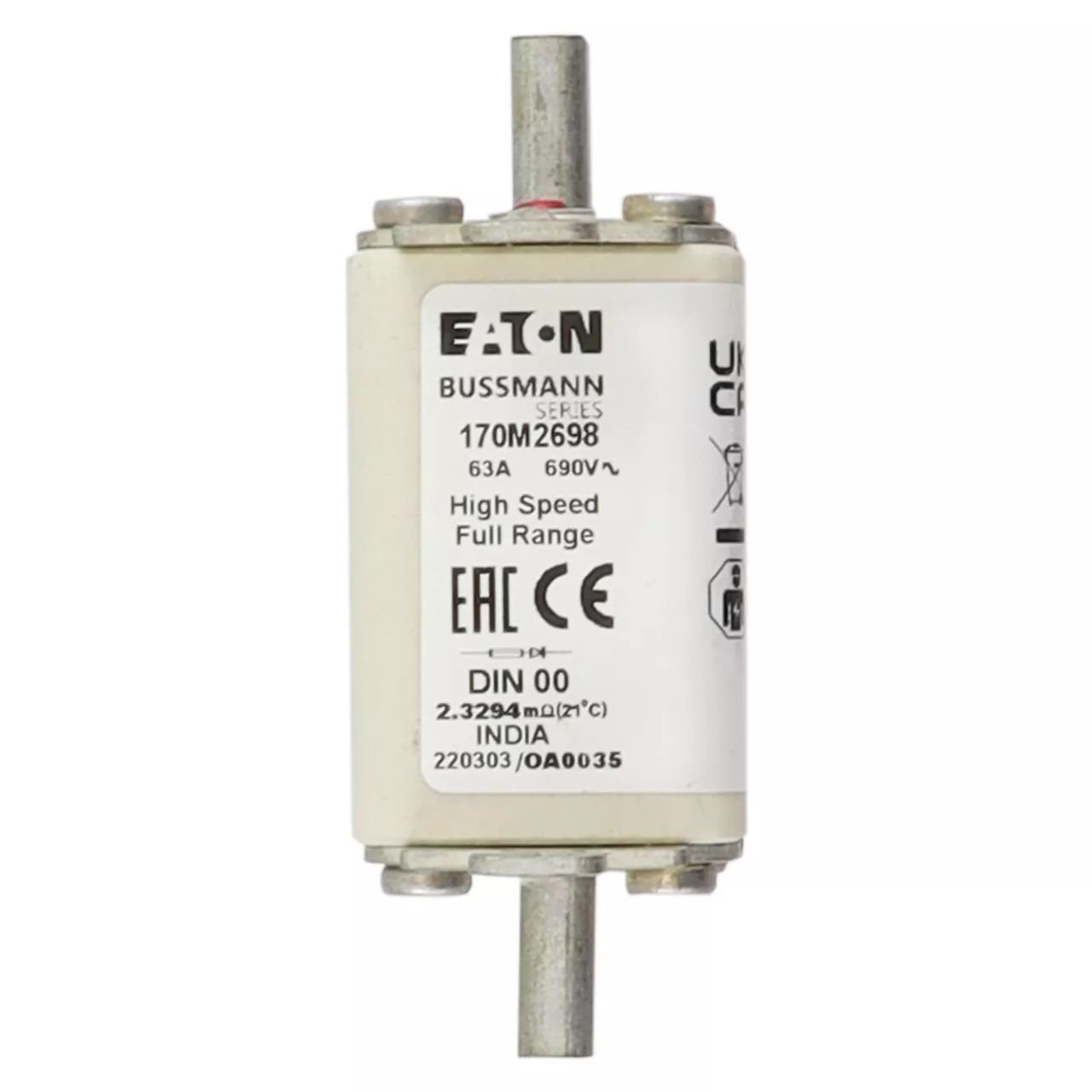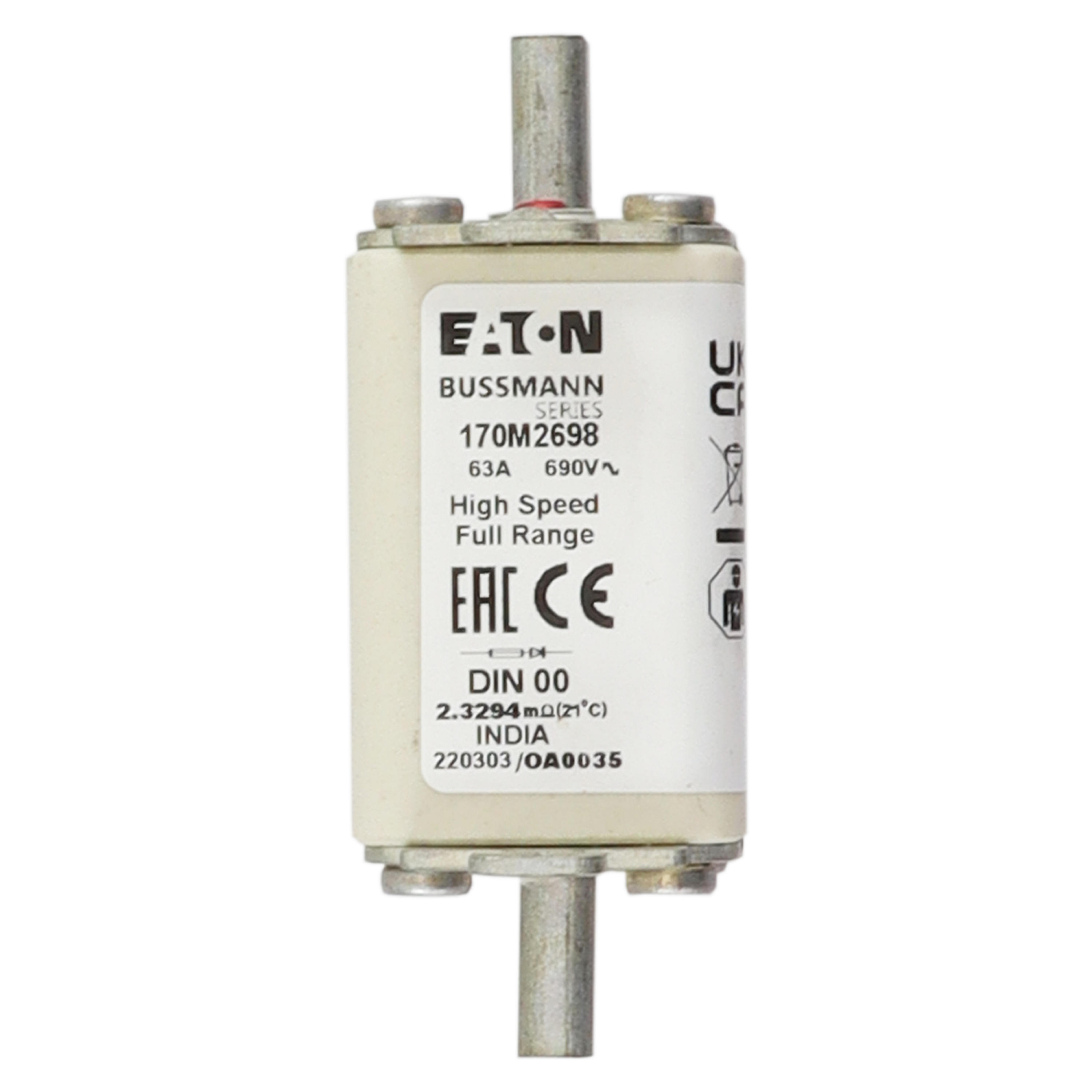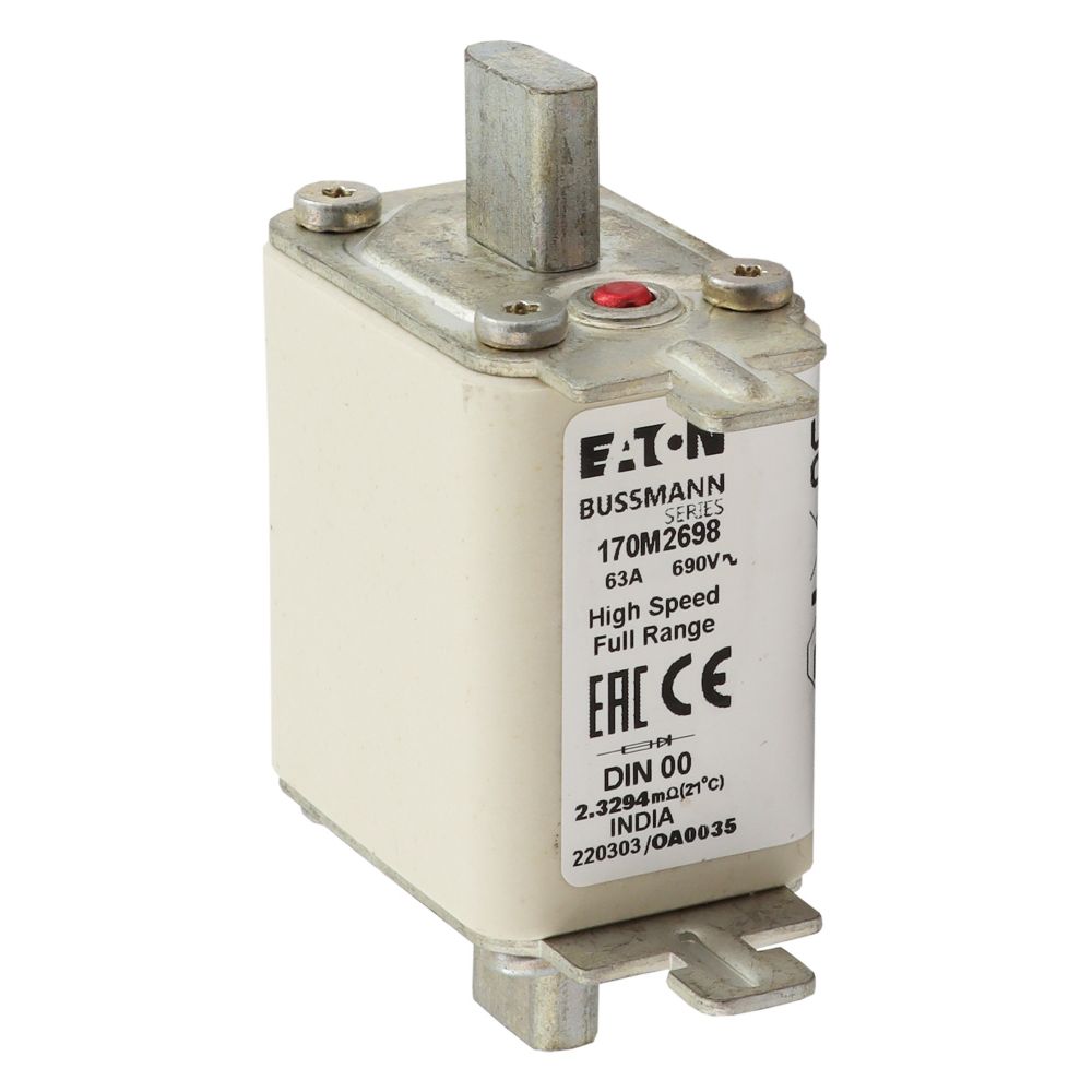 170M2698 Wkładka szybka, 63 A, AC 690 V, DIN 00, 30 x 60 x 79 mm, gR, DIN, IEC, pojedynczy wskaźnik