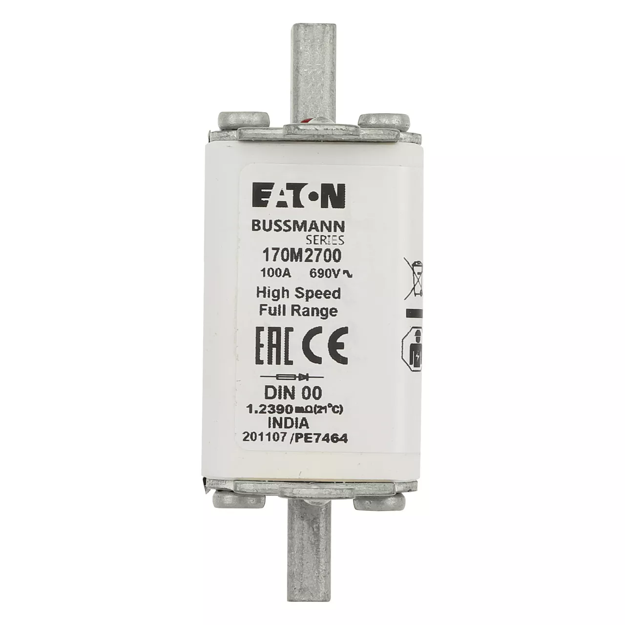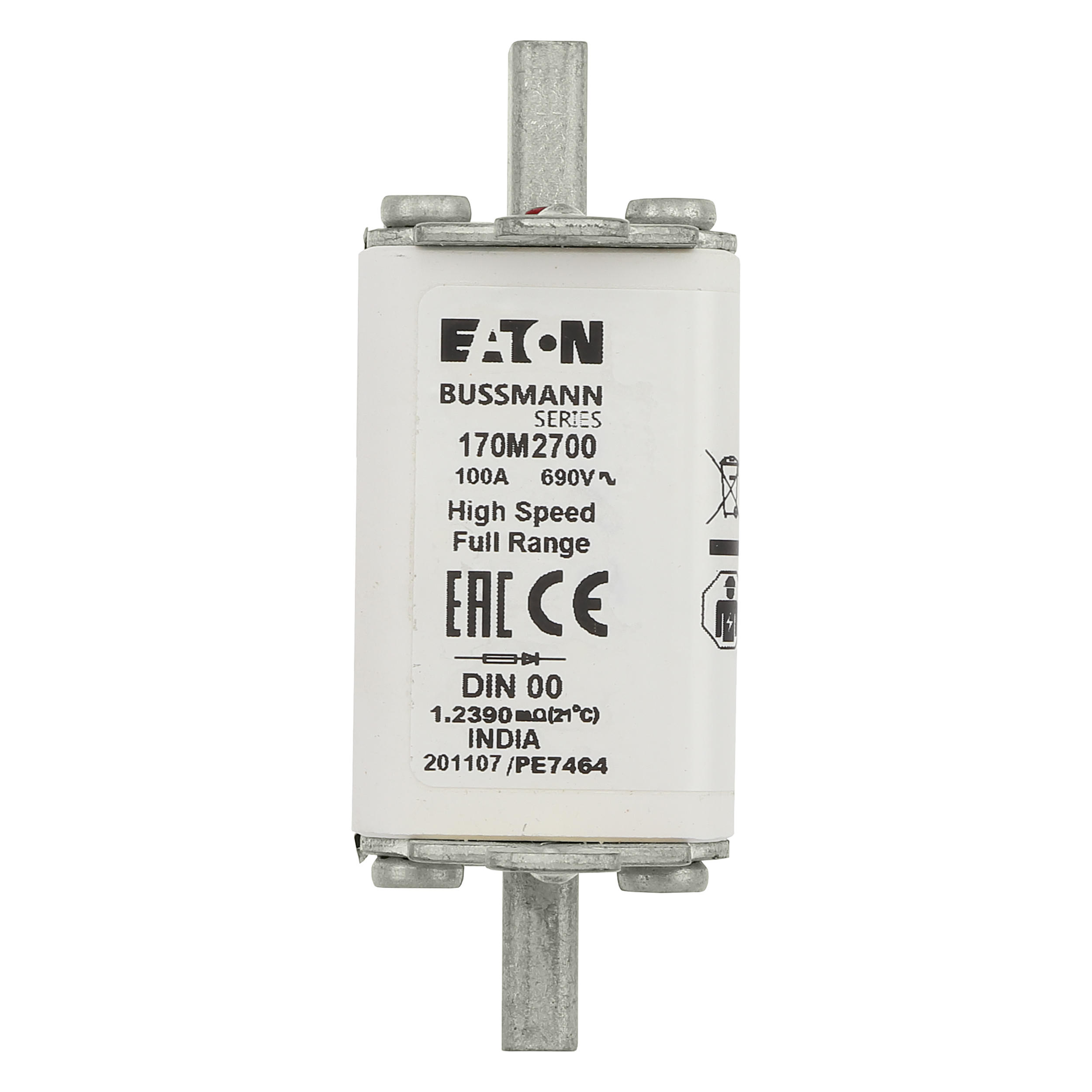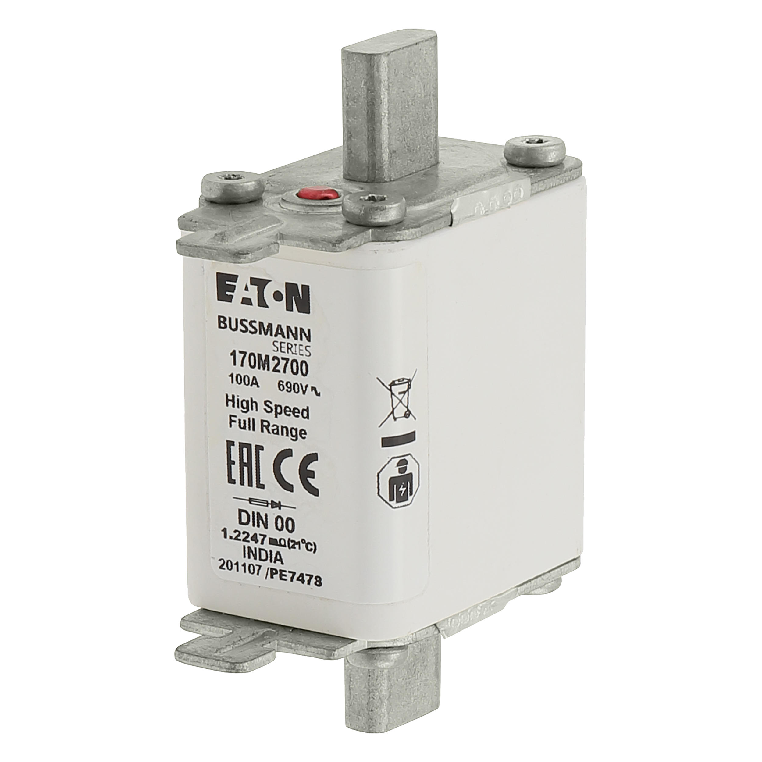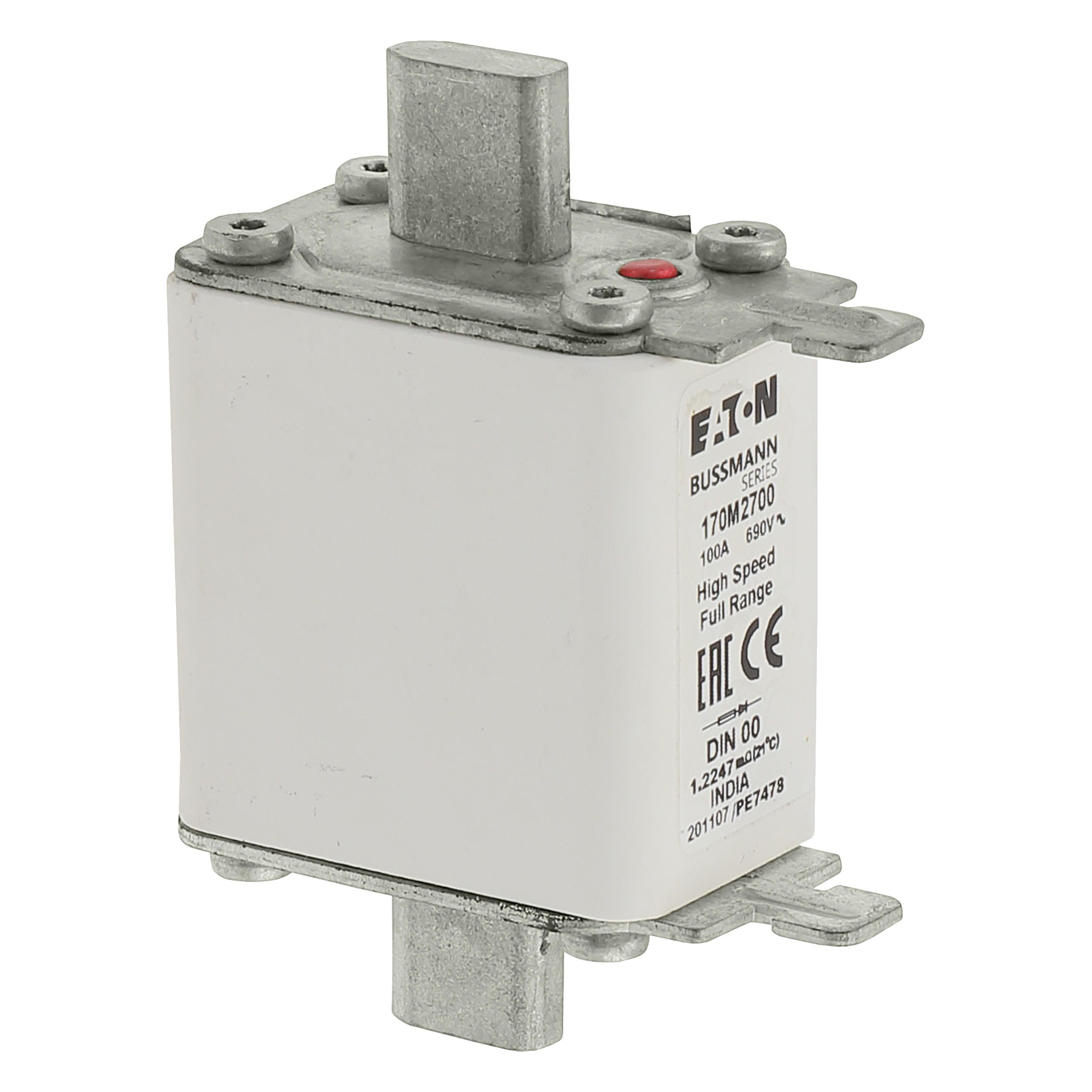 170M2700 Wkładka szybka, 100 A, AC 690 V, DIN 00, 30 x 60 x 79 mm, gR, DIN, IEC, pojedynczy wskaźnik