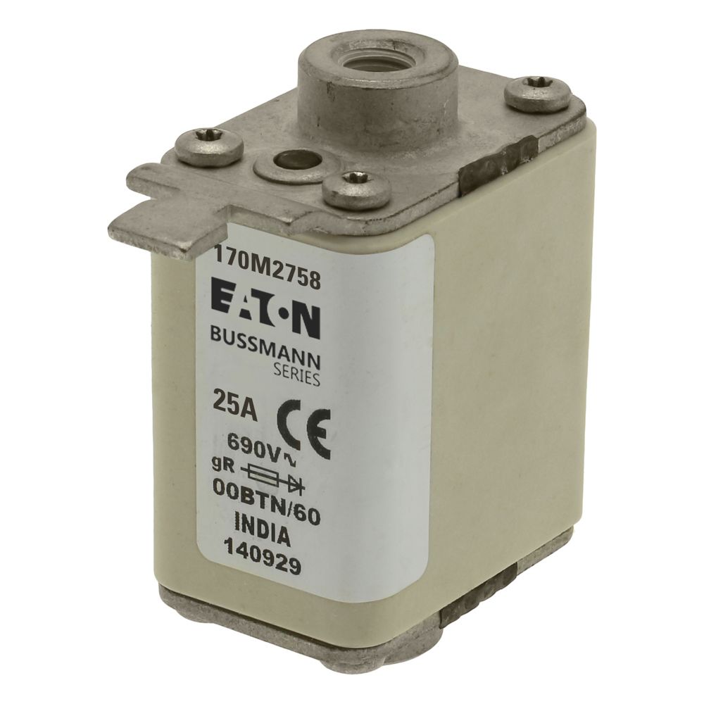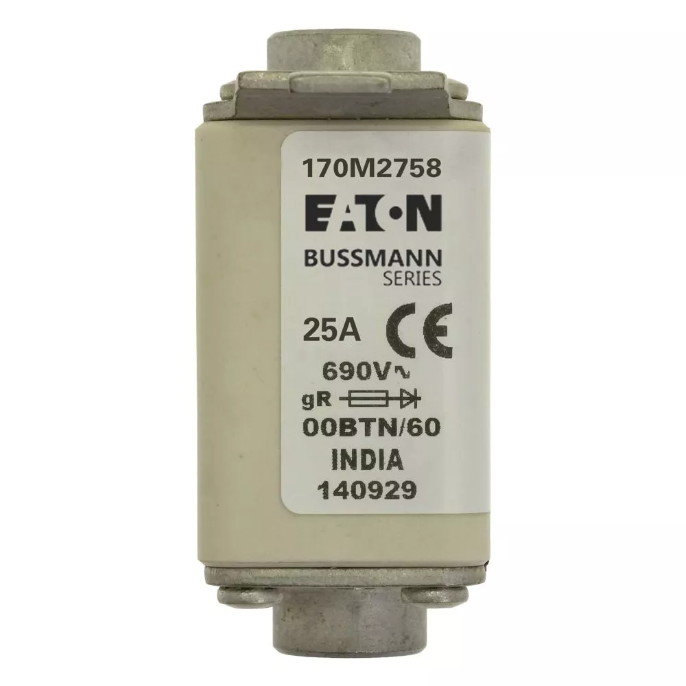 170M2758 Wkładka szybka, 25 A, AC 690 V, rozmiar 00, 30 x 62 x 64 mm, aR, IEC, pojedynczy wskaźnik