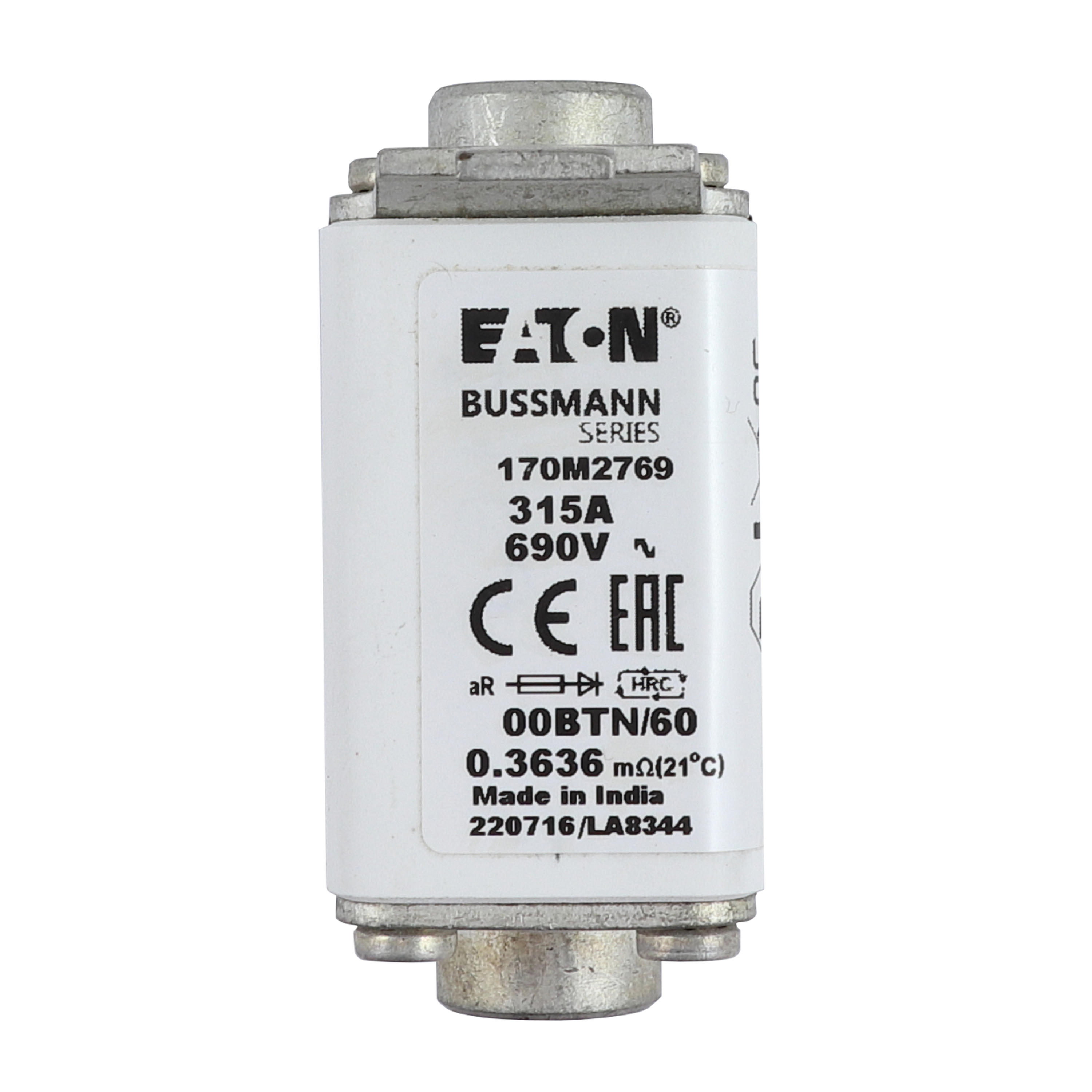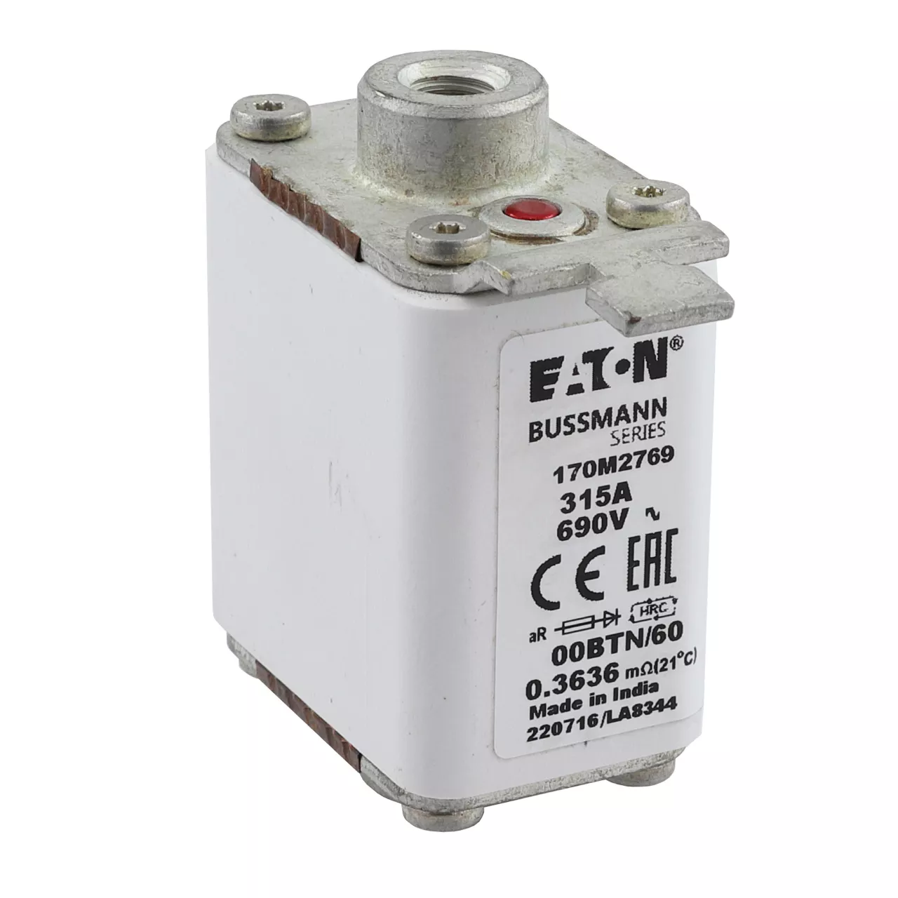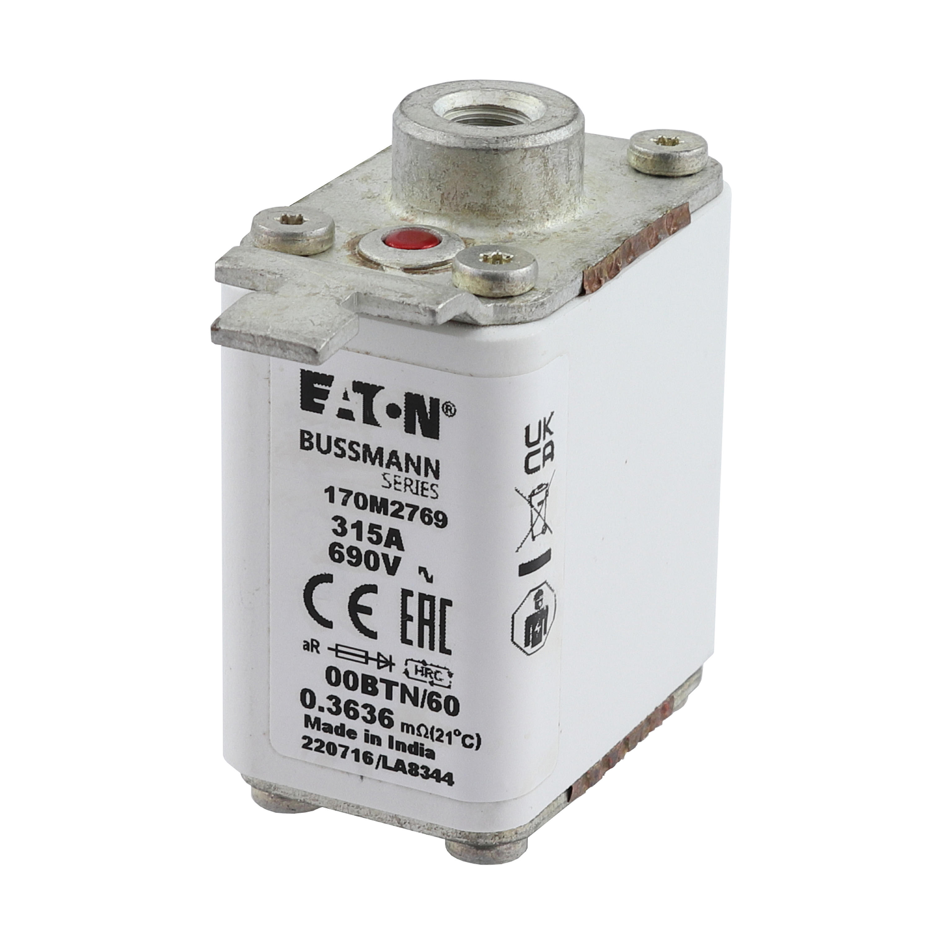 170M2769 Wkładka szybka, 315 A, AC 690 V, rozmiar 00, 30 x 62 x 64 mm, aR, IEC, pojedynczy wskaźnik