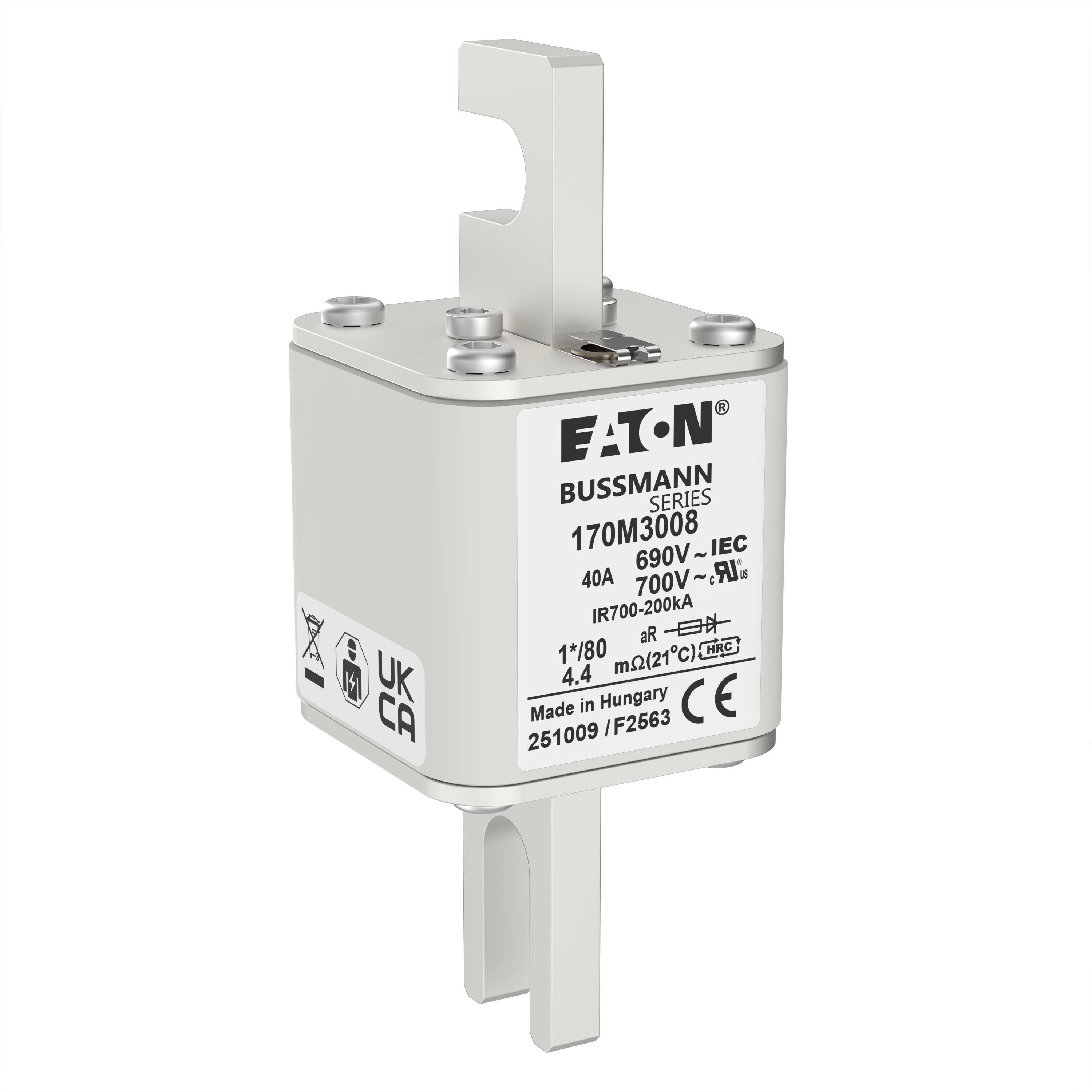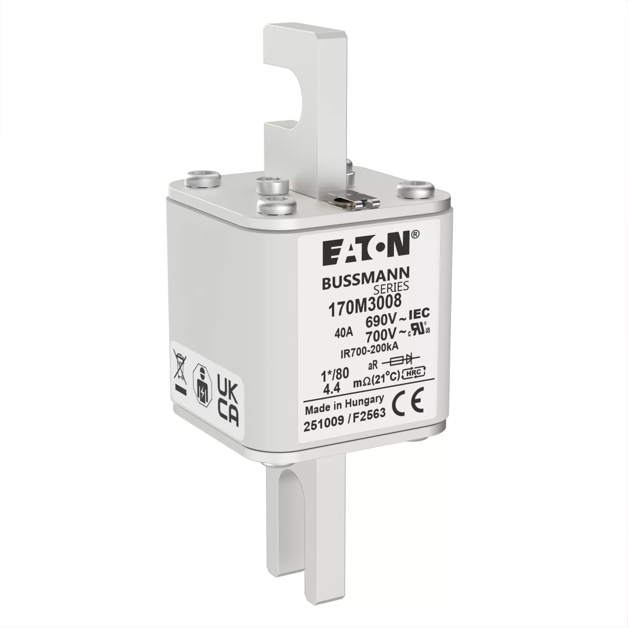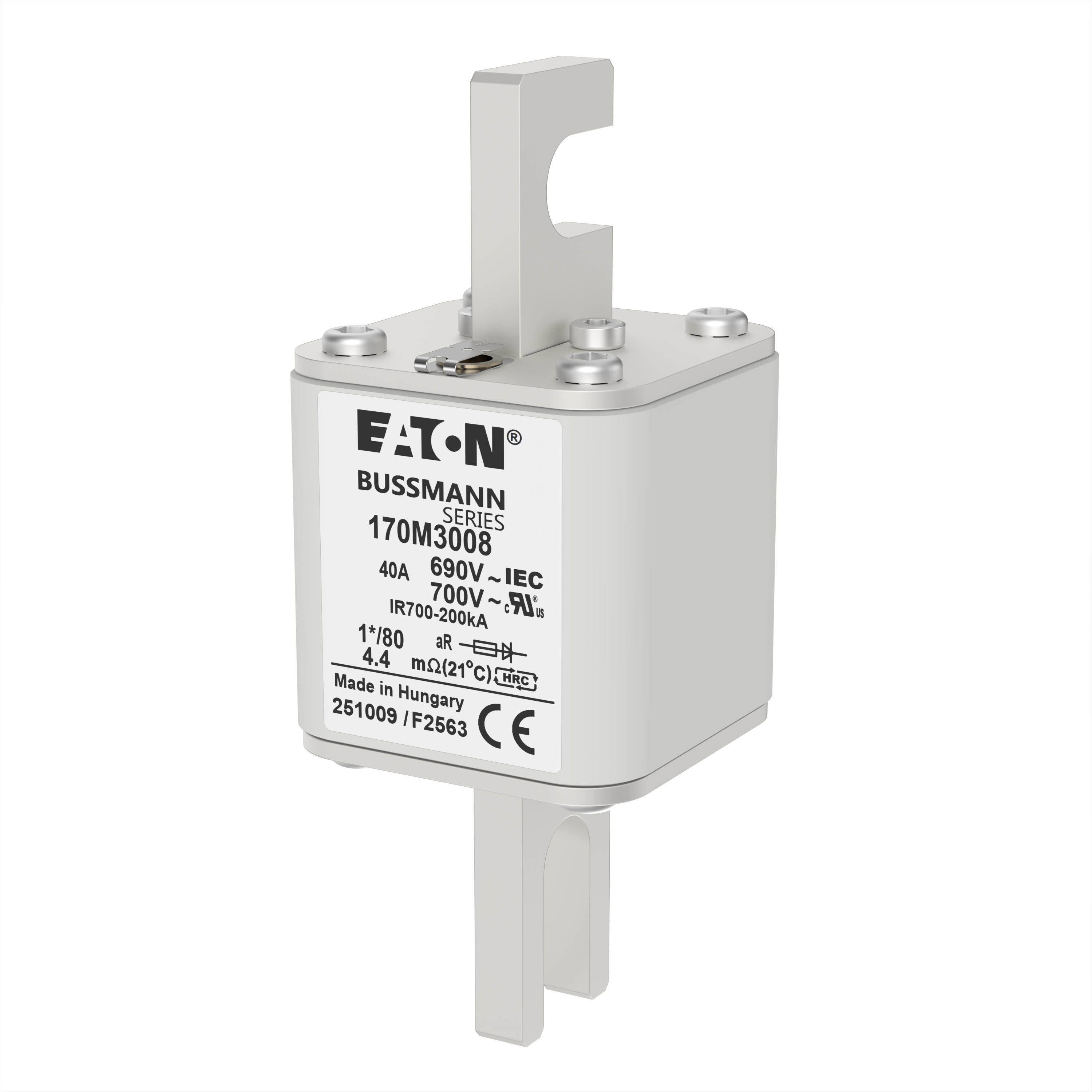170M3008 Wkładka szybka, 40 A, AC 690 V, compact DIN 1, 45 x 45 x 104 mm, aR, DIN, IEC