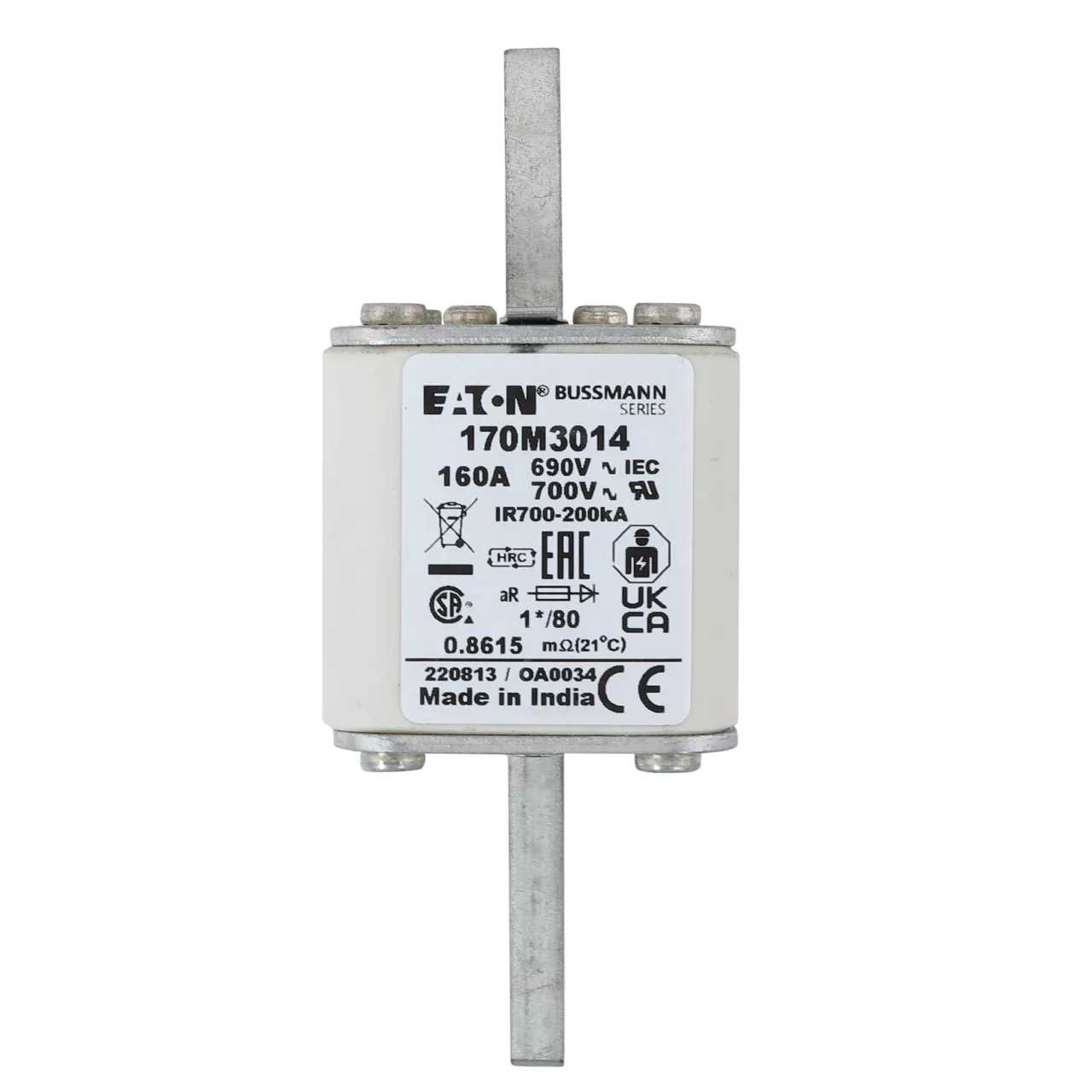 170M3014 Wkładka szybka, 160 A, AC 690 V, compact DIN 1, 45 x 45 x 104 mm, aR, DIN, IEC