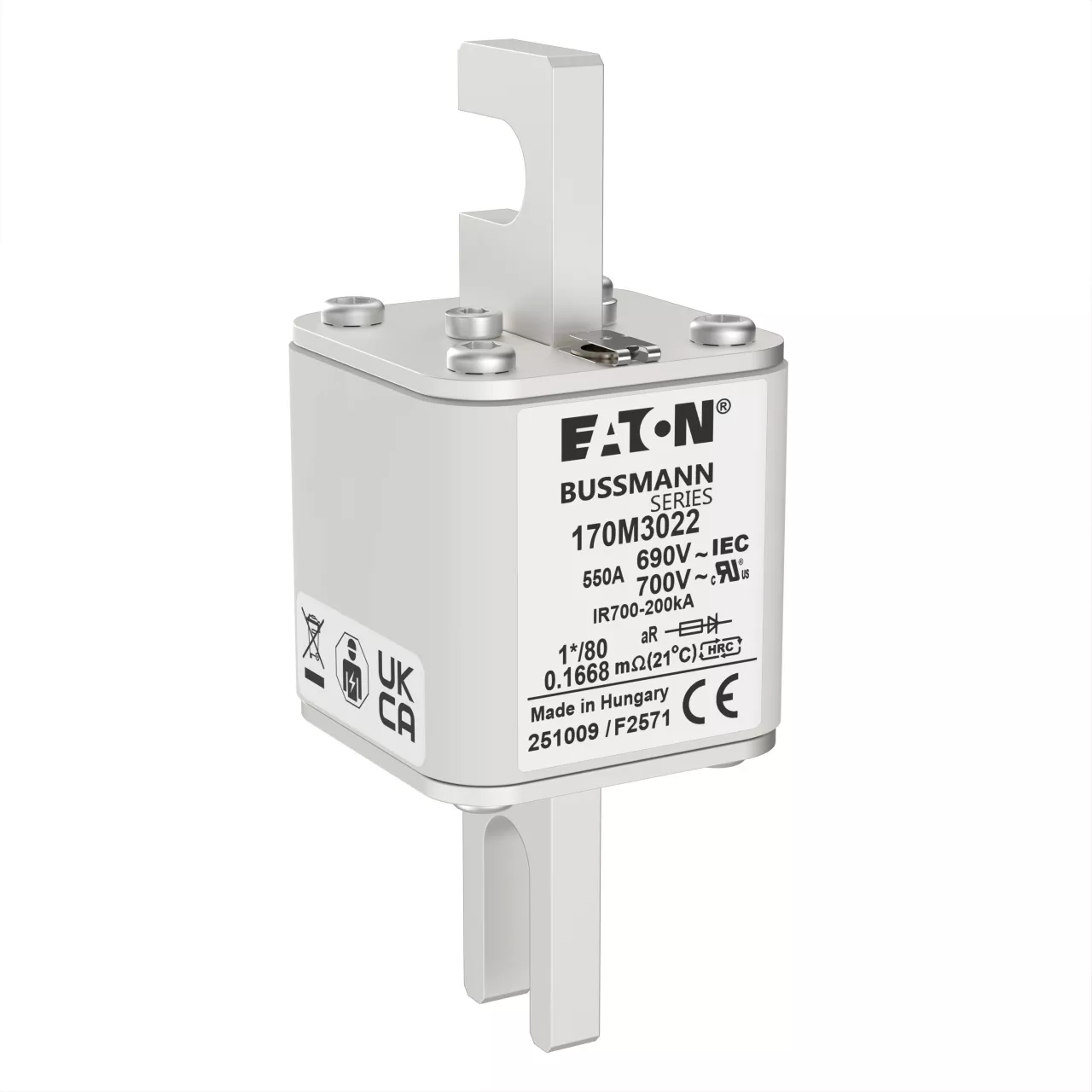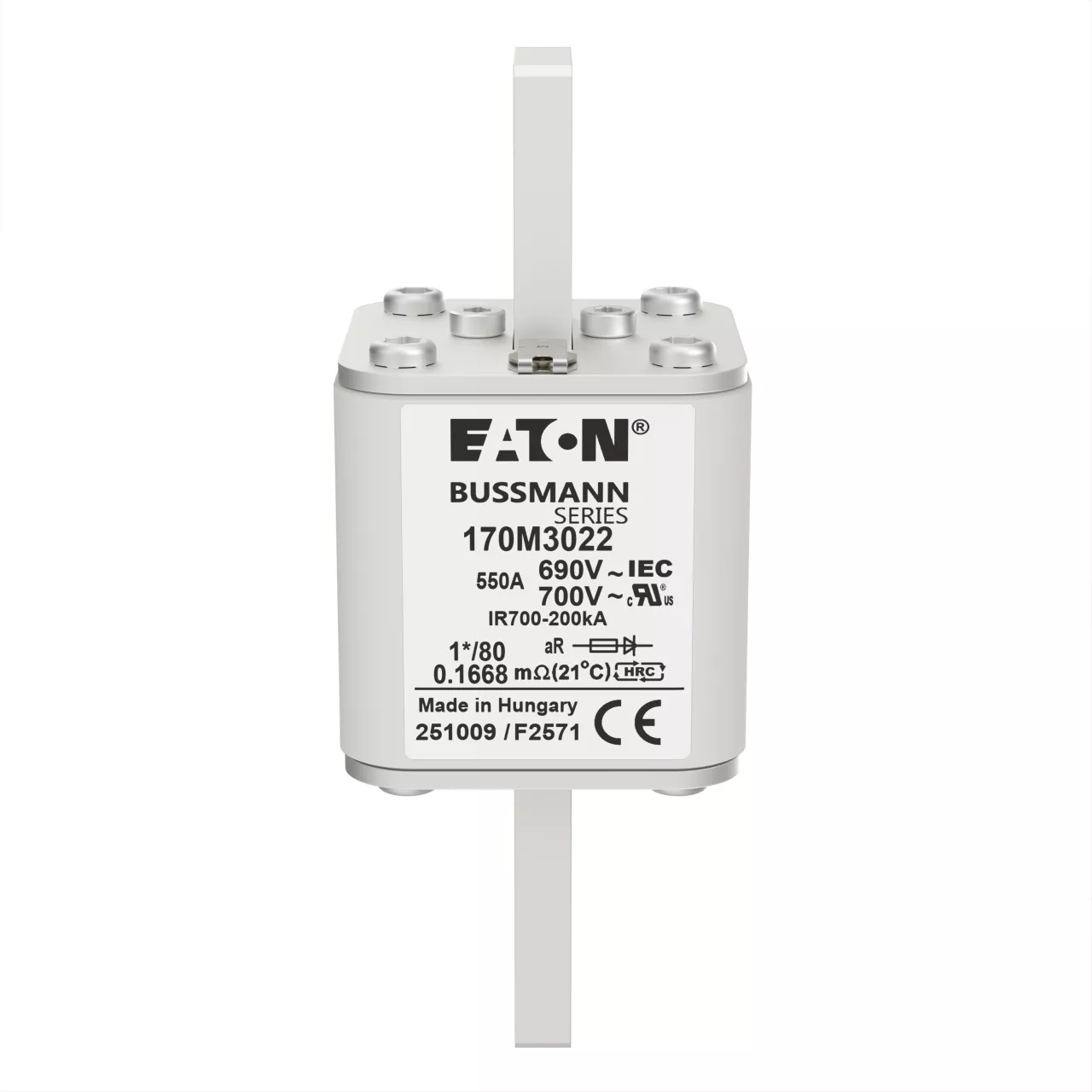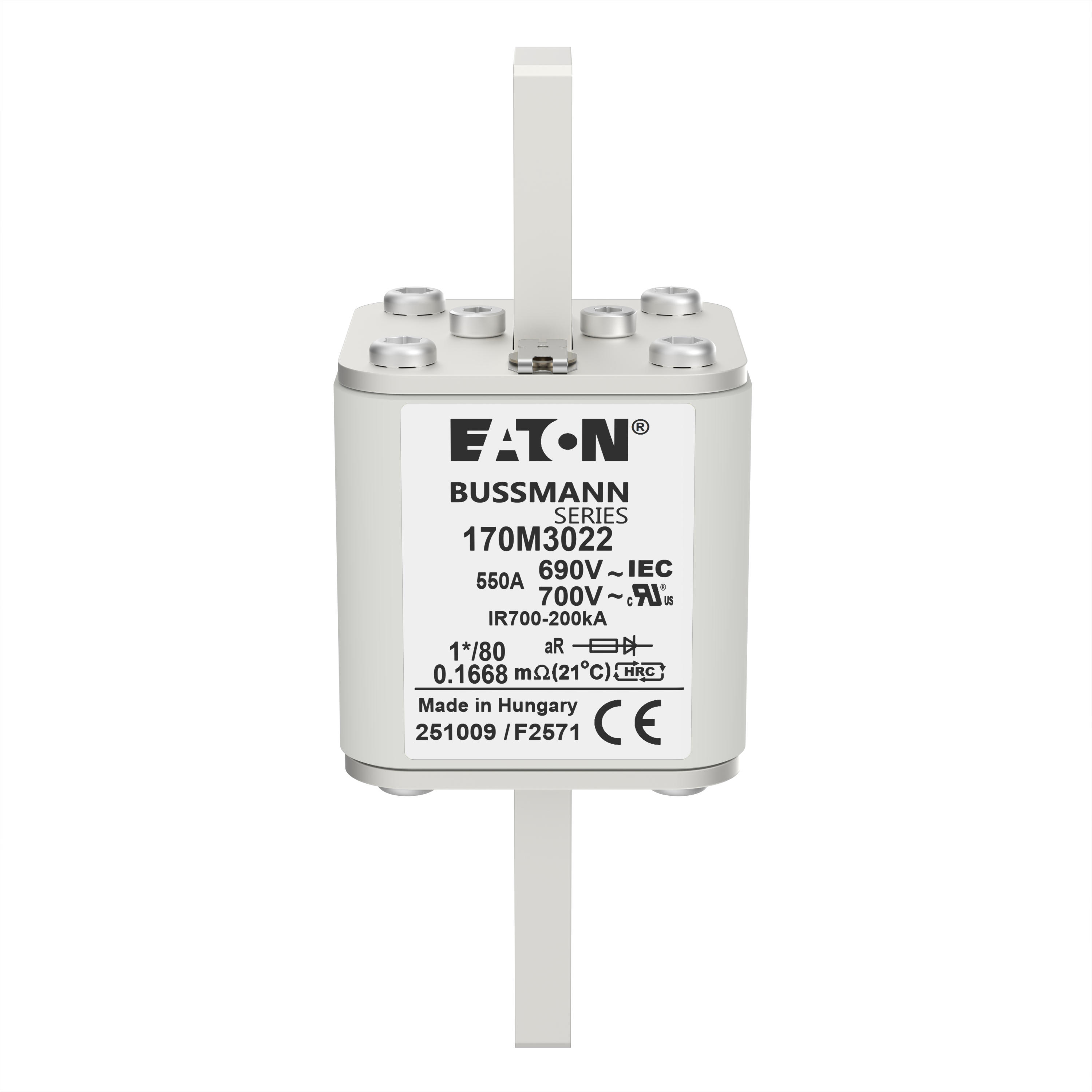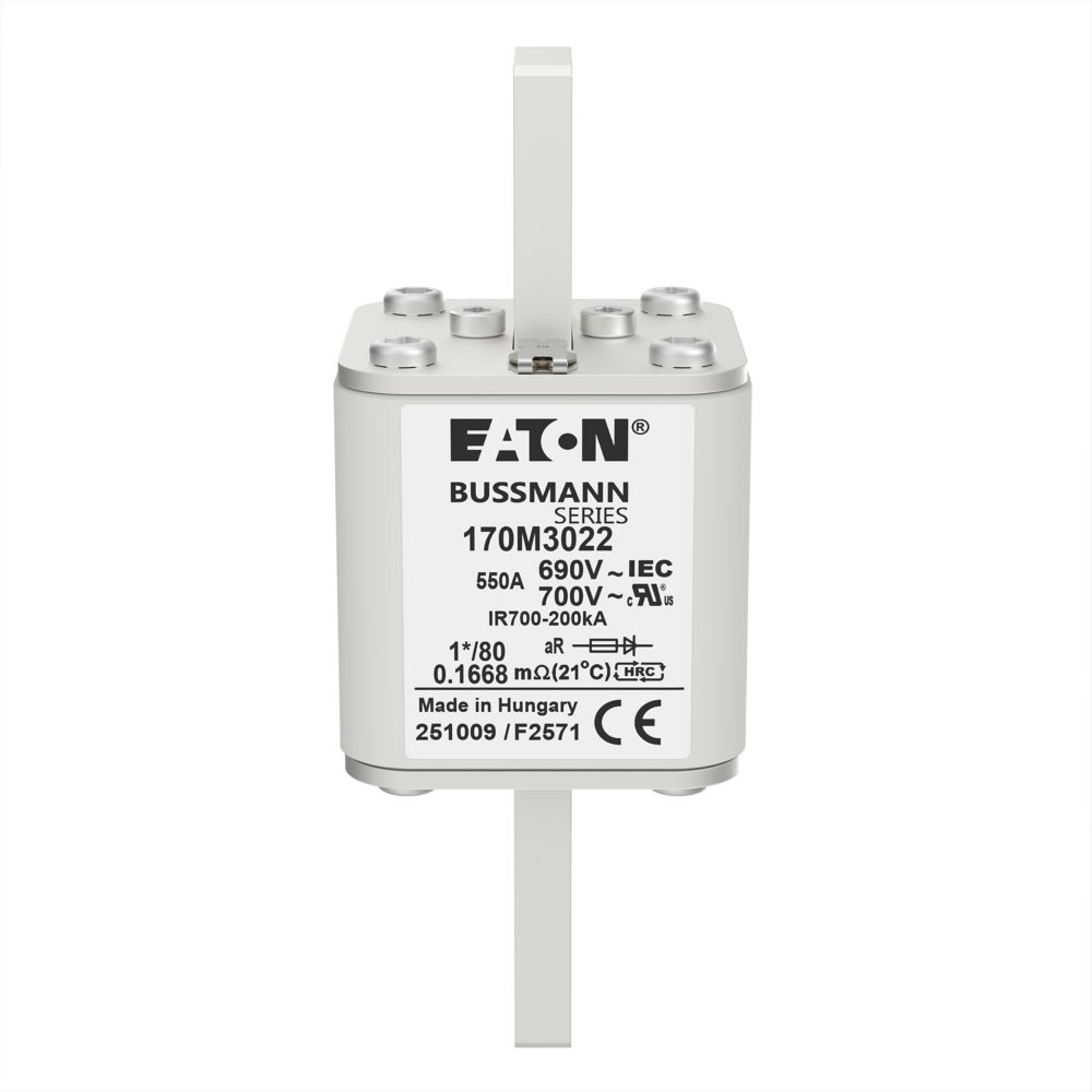 170M3022 Wkładka szybka, 550 A, AC 690 V, compact DIN 1, 45 x 45 x 104 mm, aR, DIN, IEC