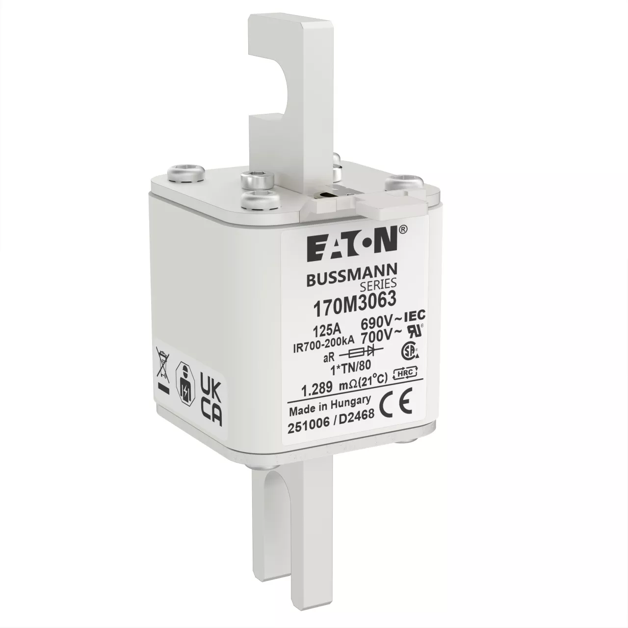 170M3063 Wkładka szybka, 125 A, AC 690 V, compact DIN 1, 45 x 58 x 104 mm, aR, DIN, IEC