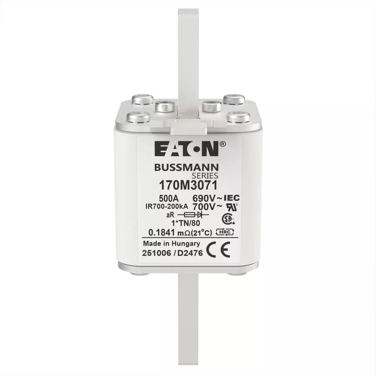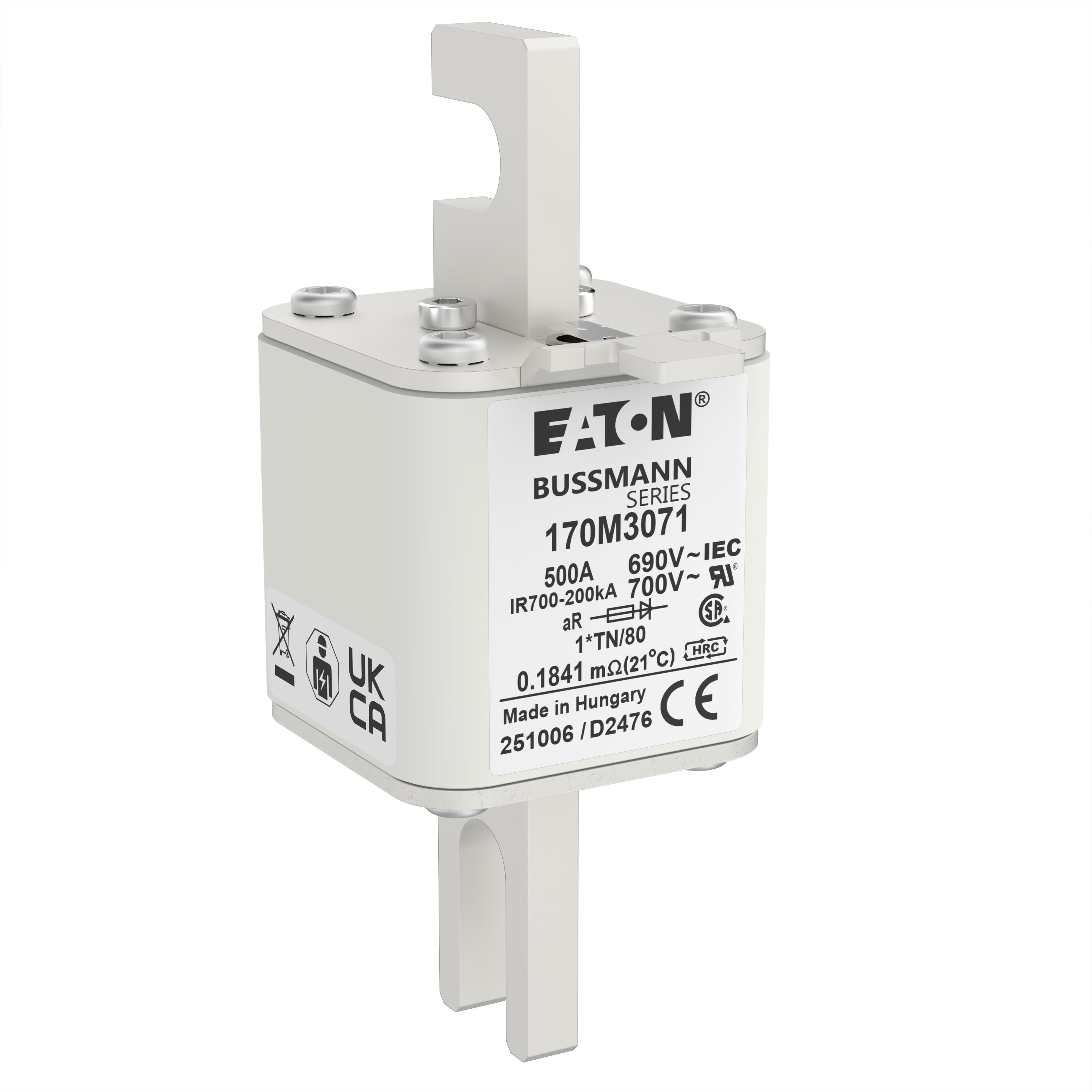 170M3071 Wkładka szybka, 500 A, AC 690 V, compact DIN 1, 45 x 58 x 104 mm, aR, DIN, IEC
