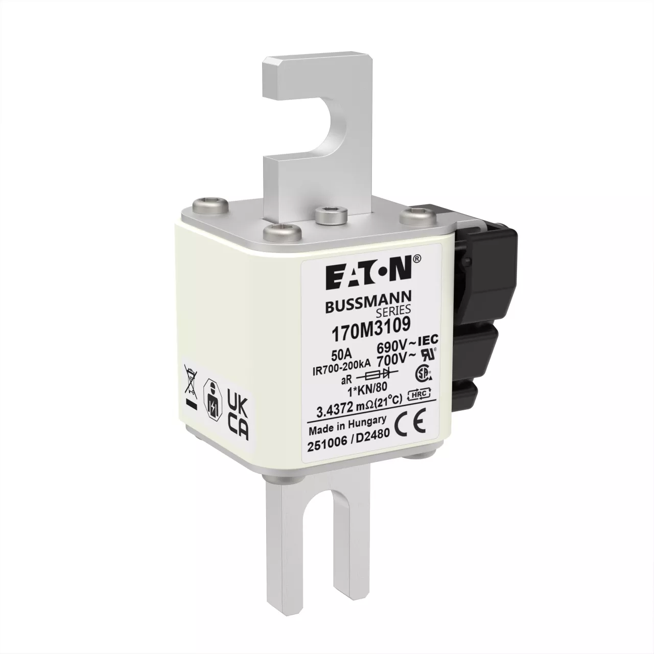 170M3109 Wkładka szybka, 50 A, AC 690 V, compact DIN 1, 45 x 59 x 104 mm, aR, DIN, IEC