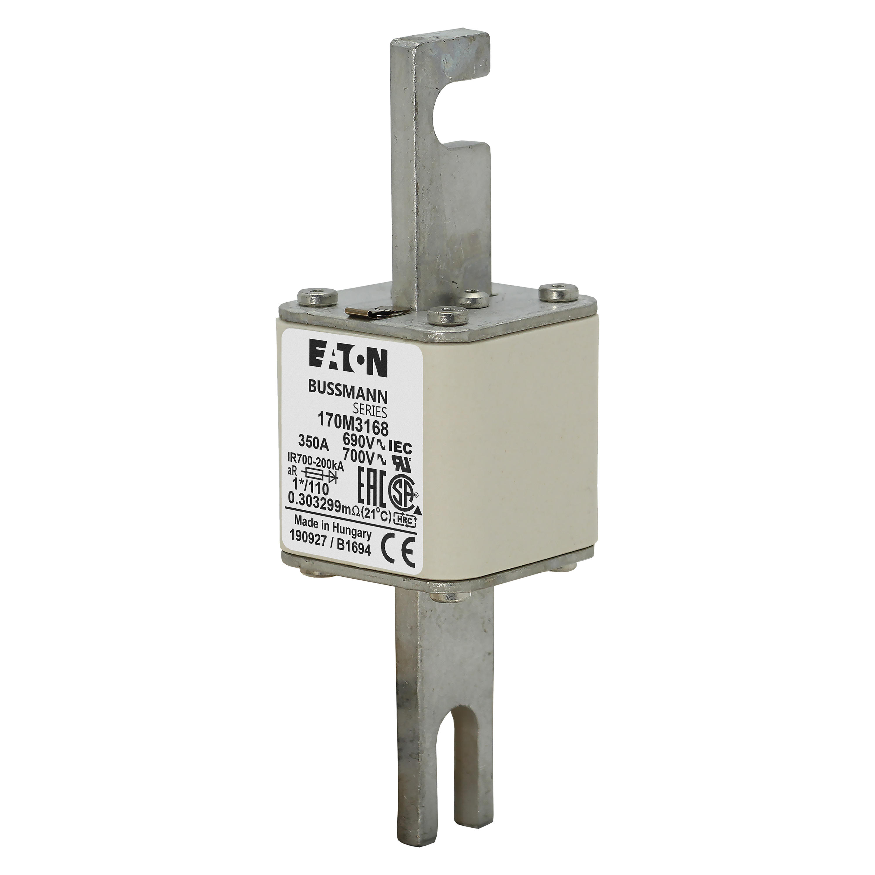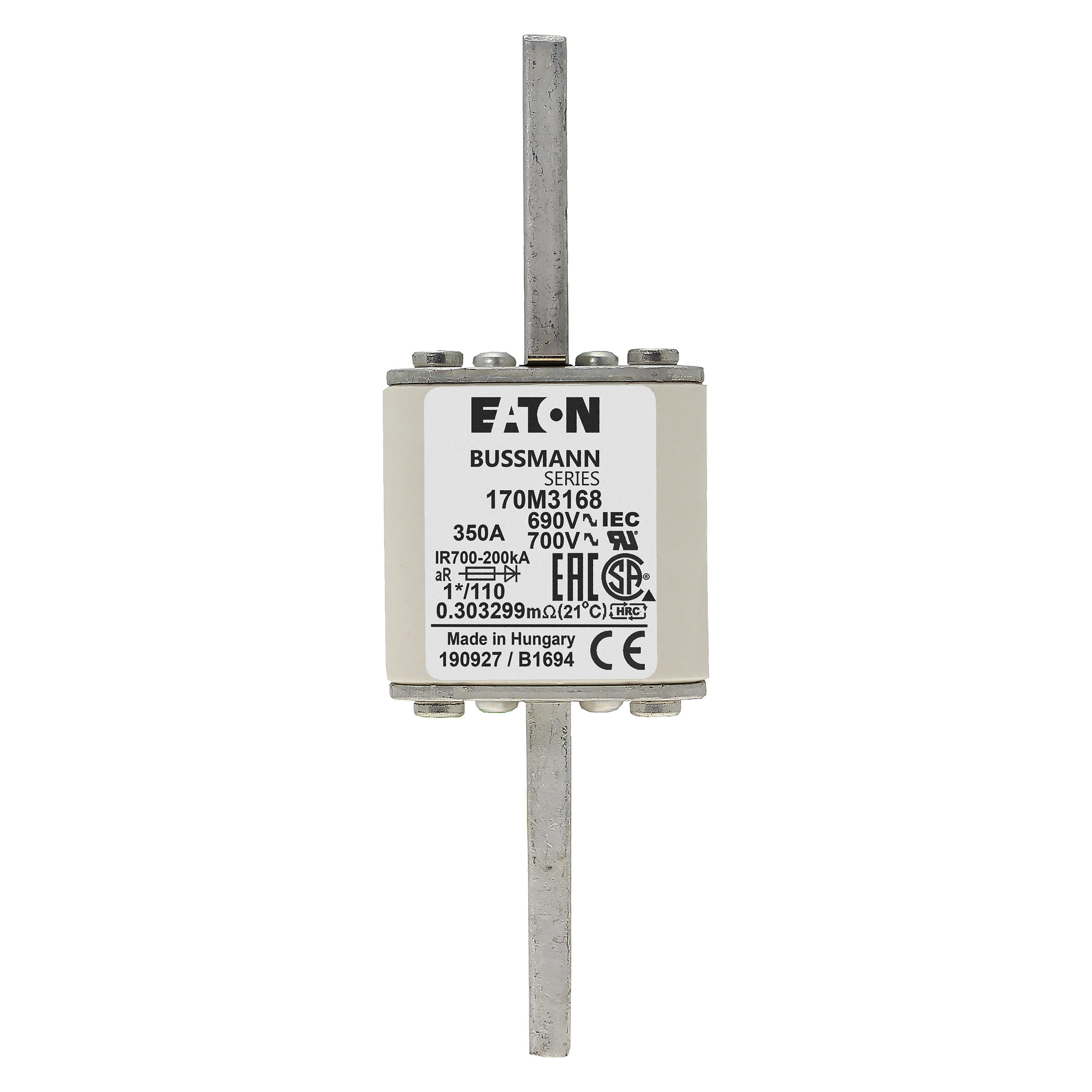 170M3168 Wkładka szybka, 350 A, AC 690 V, compact size 1, 45 x 45 x 134 mm, aR, DIN, IEC