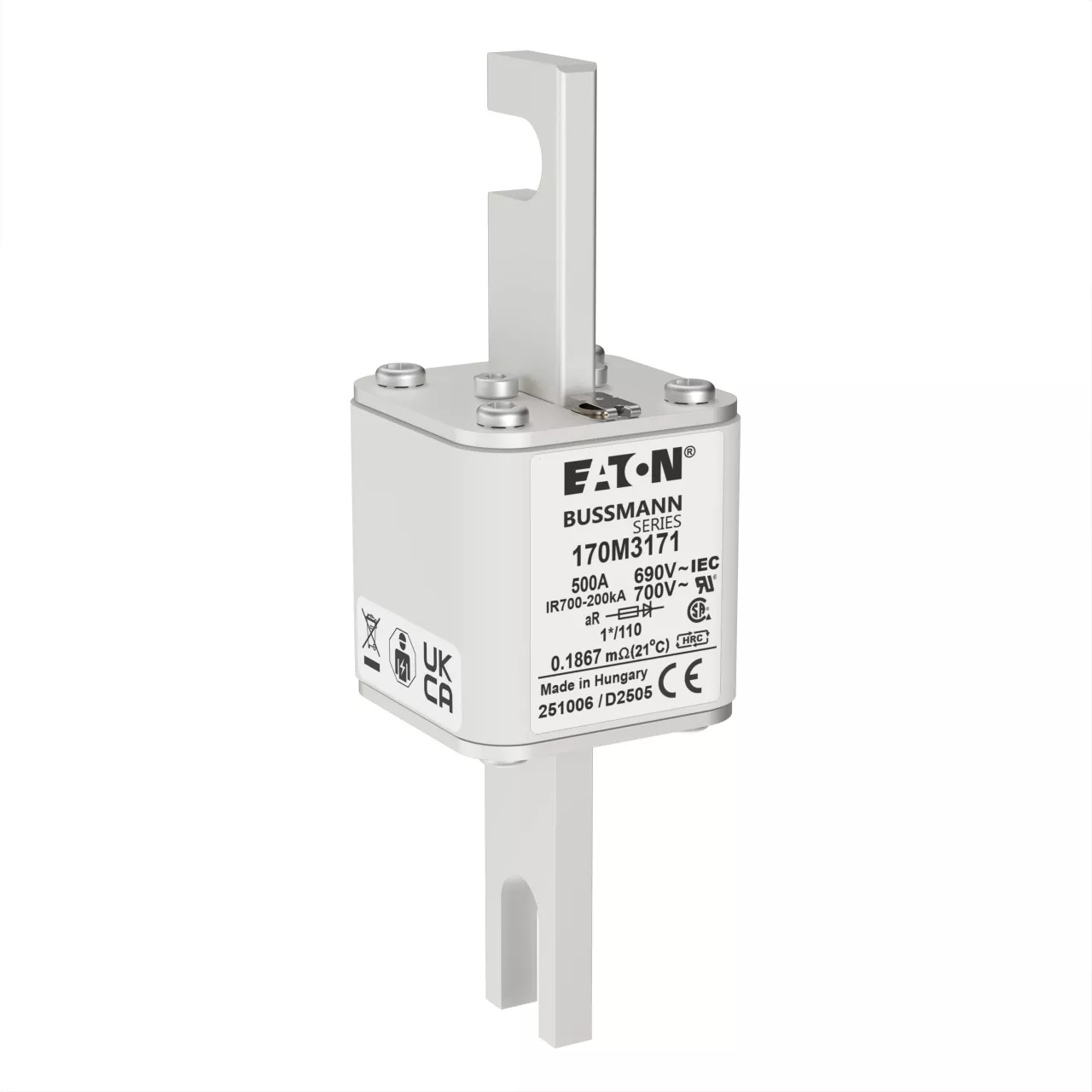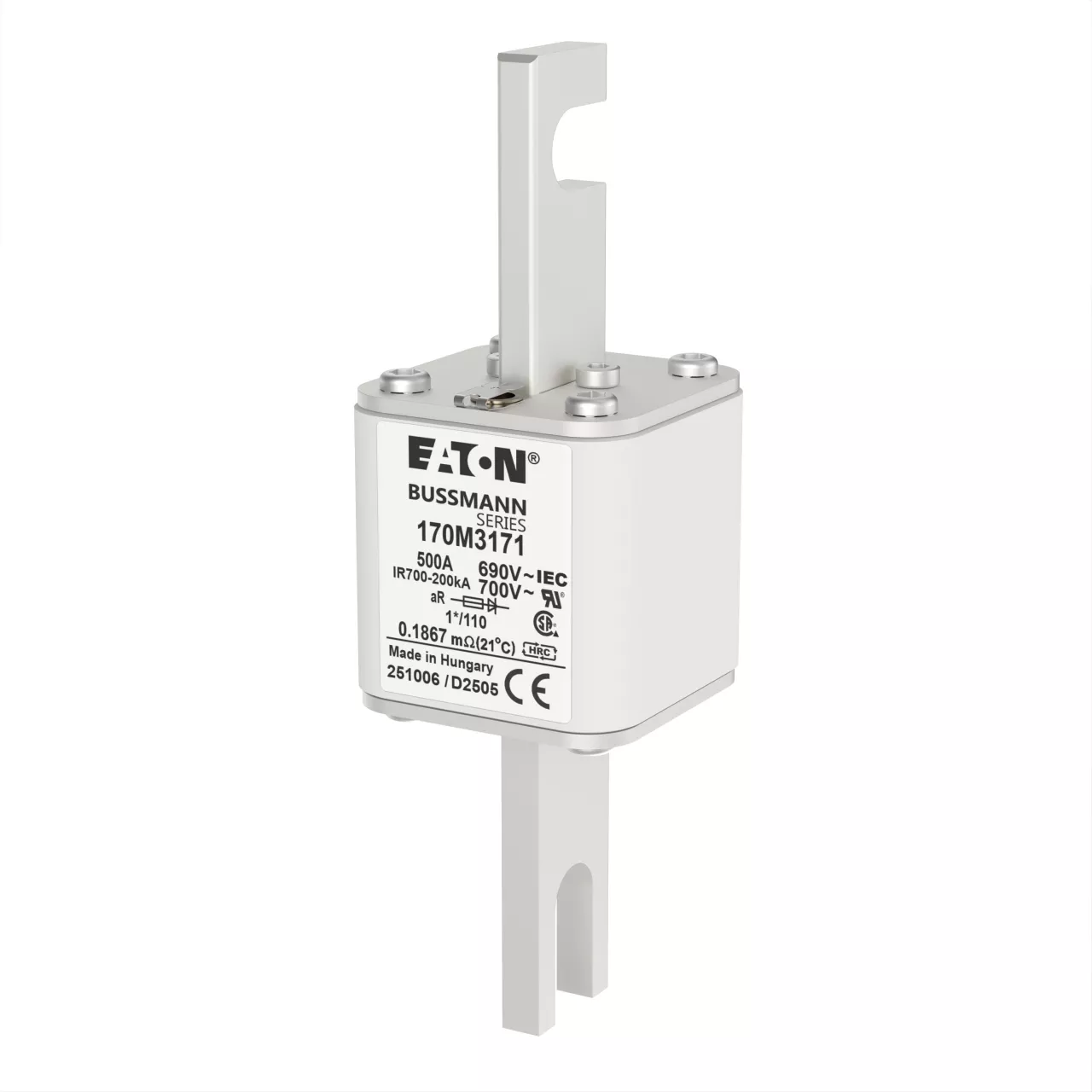 170M3171 Wkładka szybka, 500 A, AC 690 V, compact size 1, 45 x 45 x 134 mm, aR, DIN, IEC