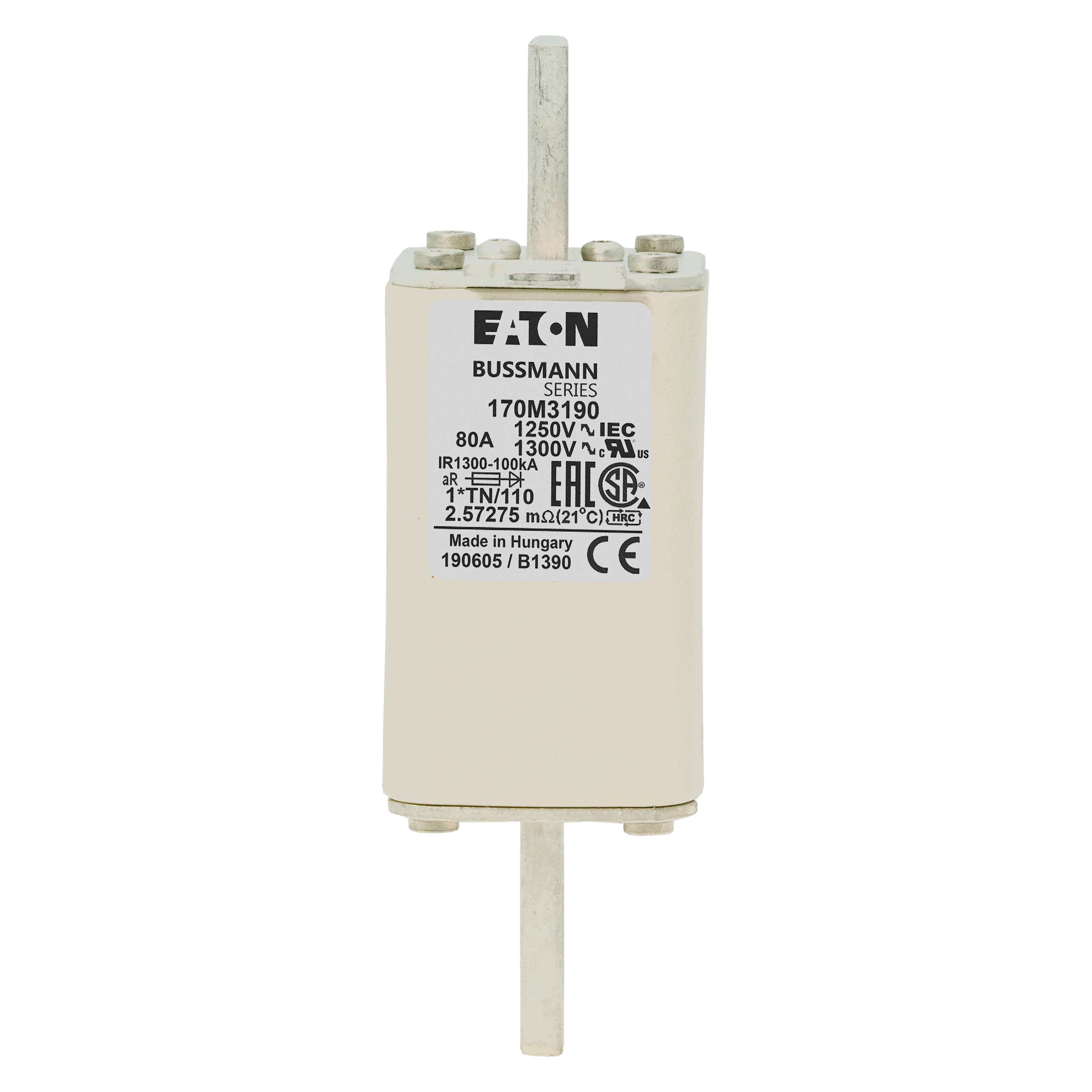 170M3190 Wkładka szybka, 80 A, AC 1250 V, compact size 1, 45 x 58 x 138 mm, aR, DIN, IEC, wskaźnik T