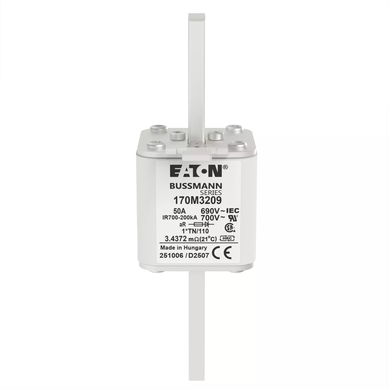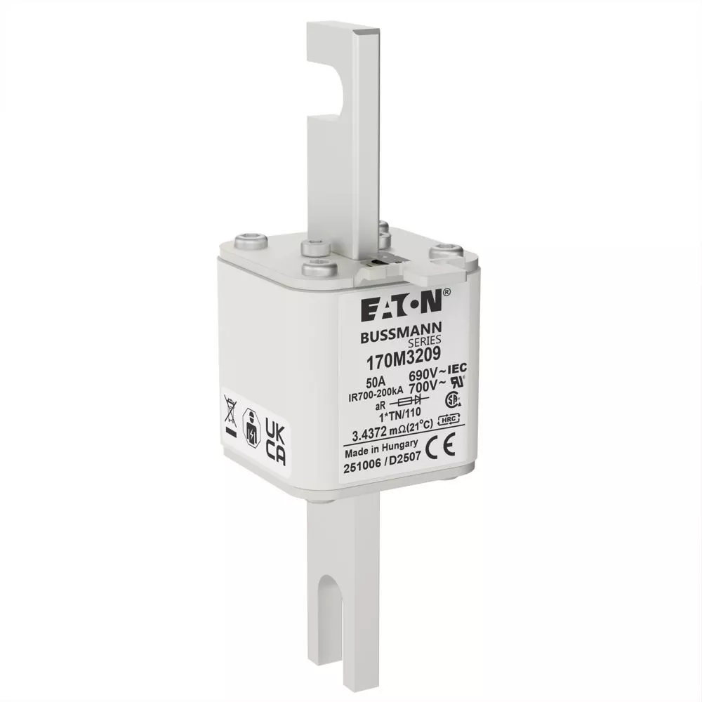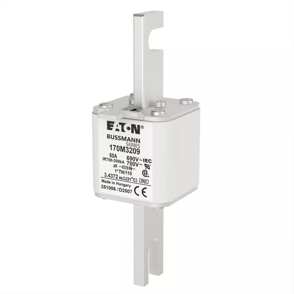 170M3209 Wkładka szybka, 50 A, AC 690 V, compact DIN 1, 45 x 58 x 134 mm, aR, DIN, IEC, wskaźnik, 80 mm