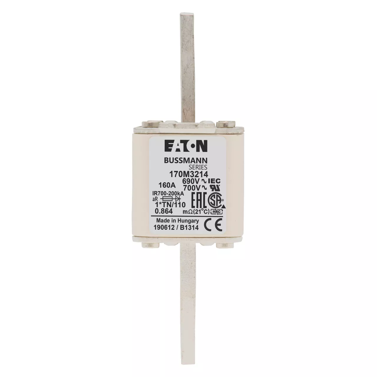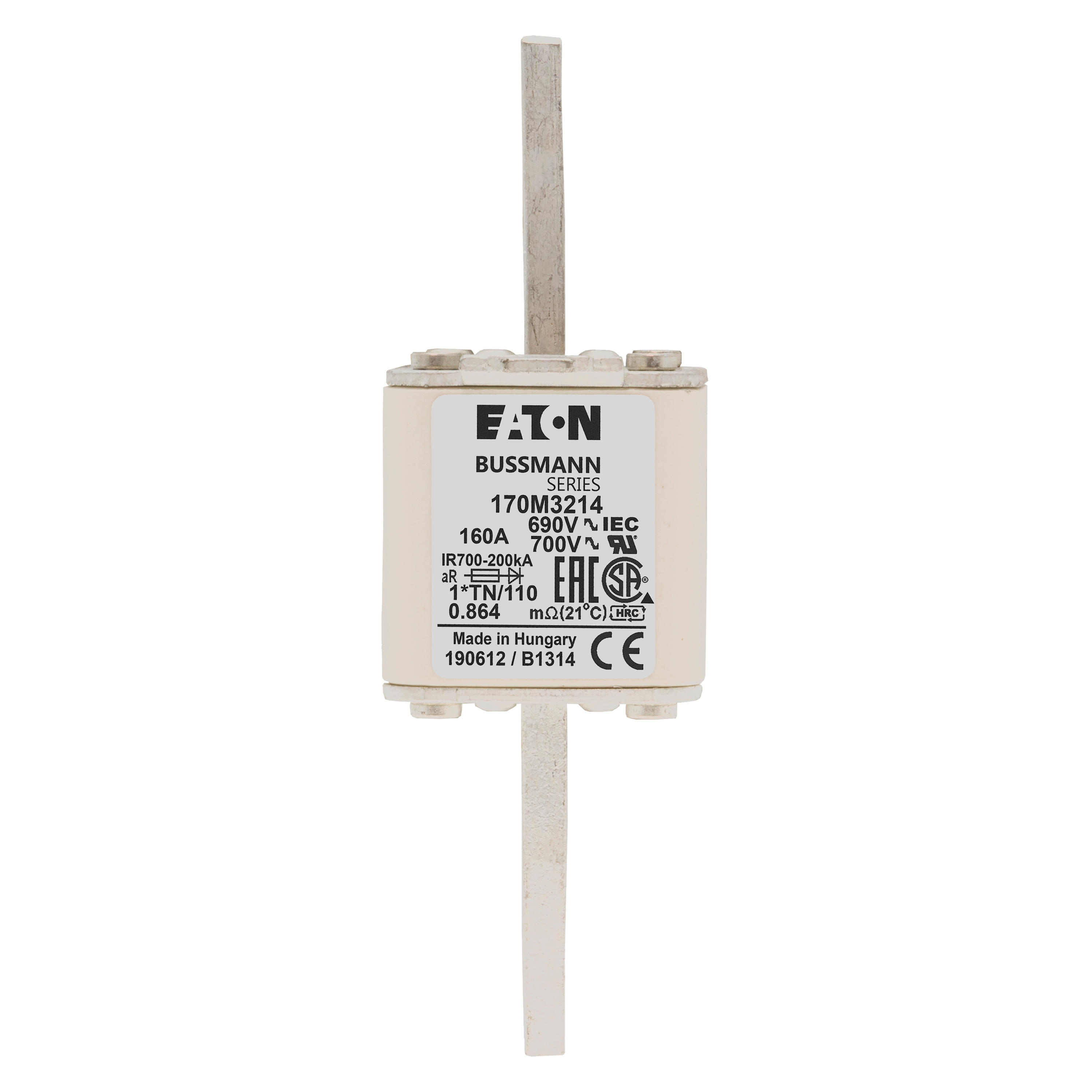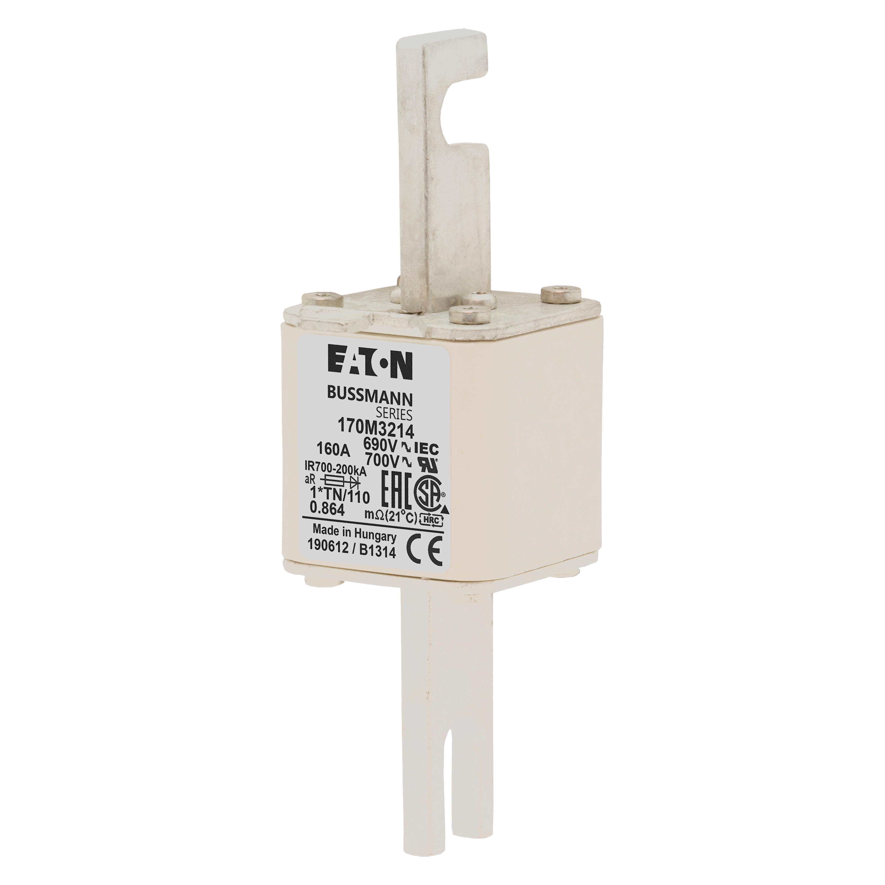 170M3214 Wkładka szybka, 160 A, AC 690 V, compact DIN 1, 45 x 58 x 134 mm, aR, DIN, IEC, wskaźnik, 80 mm