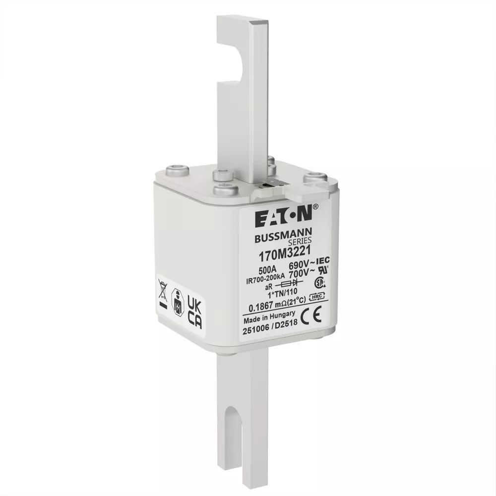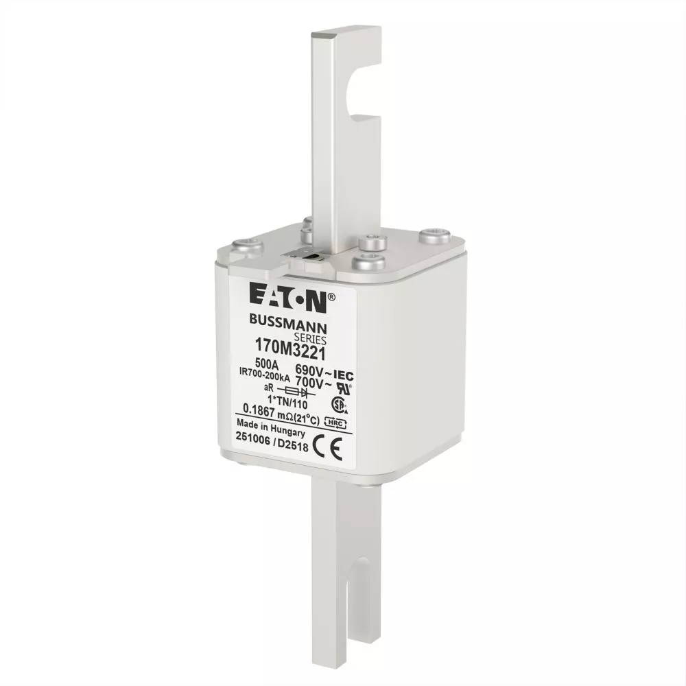 170M3221 Wkładka szybka, 500 A, AC 690 V, compact DIN 1, 45 x 58 x 134 mm, aR, DIN, IEC, wskaźnik, 80 mm
