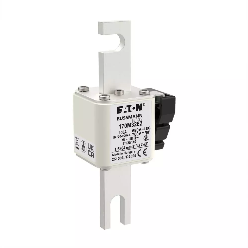170M3262 Wkładka szybka, 100 A, AC 690 V, compact DIN 1, 45 x 58 x 134 mm, aR, DIN, IEC, wskaźnik K, 110 mm