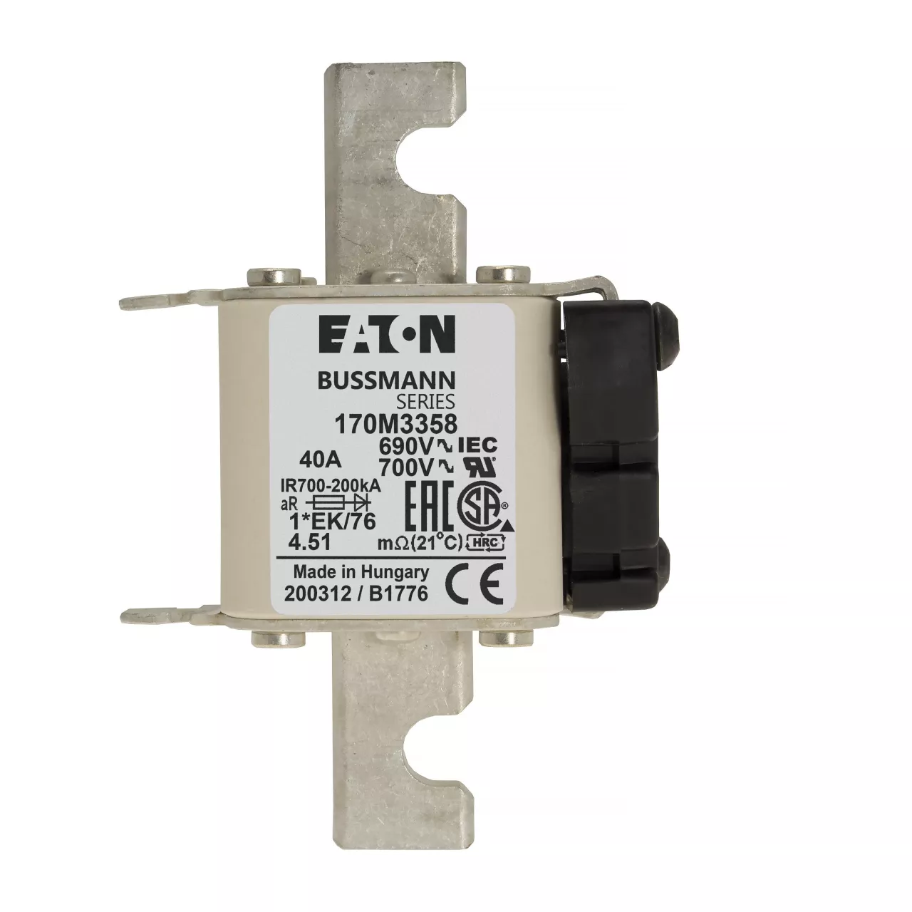 170M3358 Wkładka szybka, 40 A, AC 690 V, compact size 1, 45 x 59 x 102 mm, aR, IEC, UL