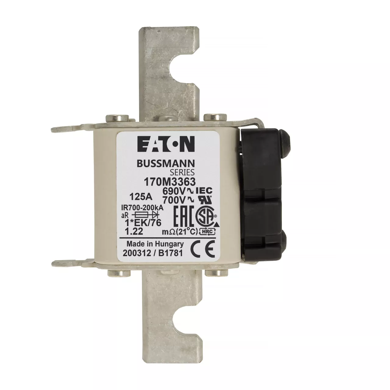 170M3363 Wkładka szybka, 125 A, AC 690 V, compact size 1, 45 x 59 x 102 mm, aR, IEC, UL
