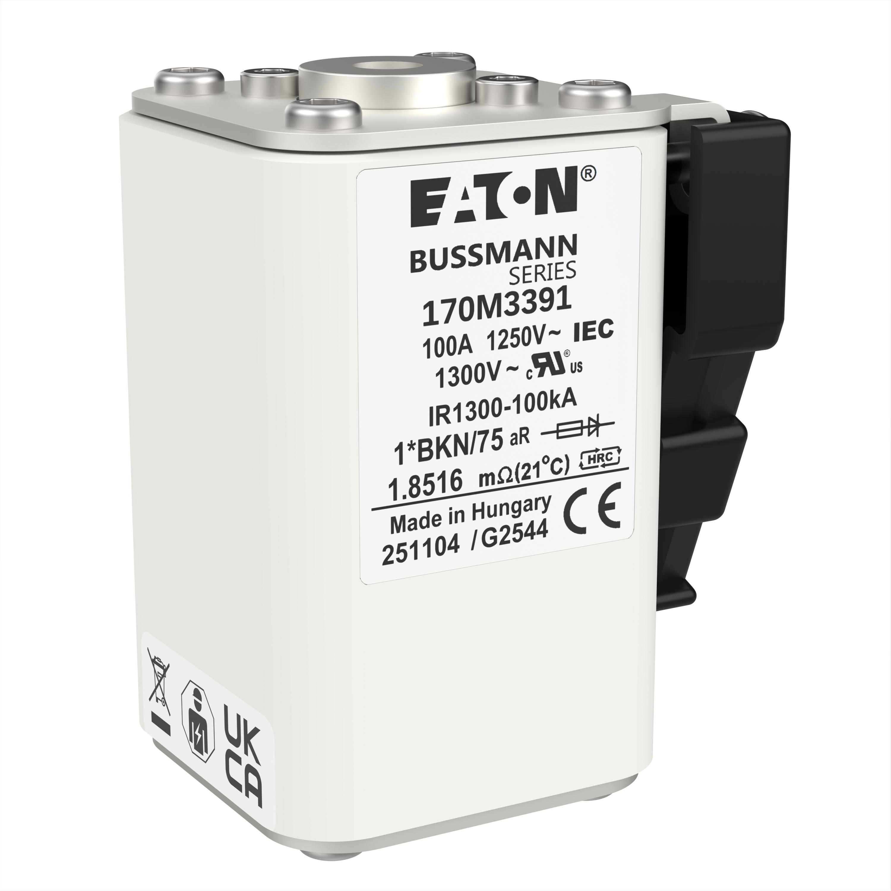 170M3391 Wkładka szybka, 100 A, AC 1250 V, compact size 1, 45 x 59 x 75 mm, aR, IEC, UL