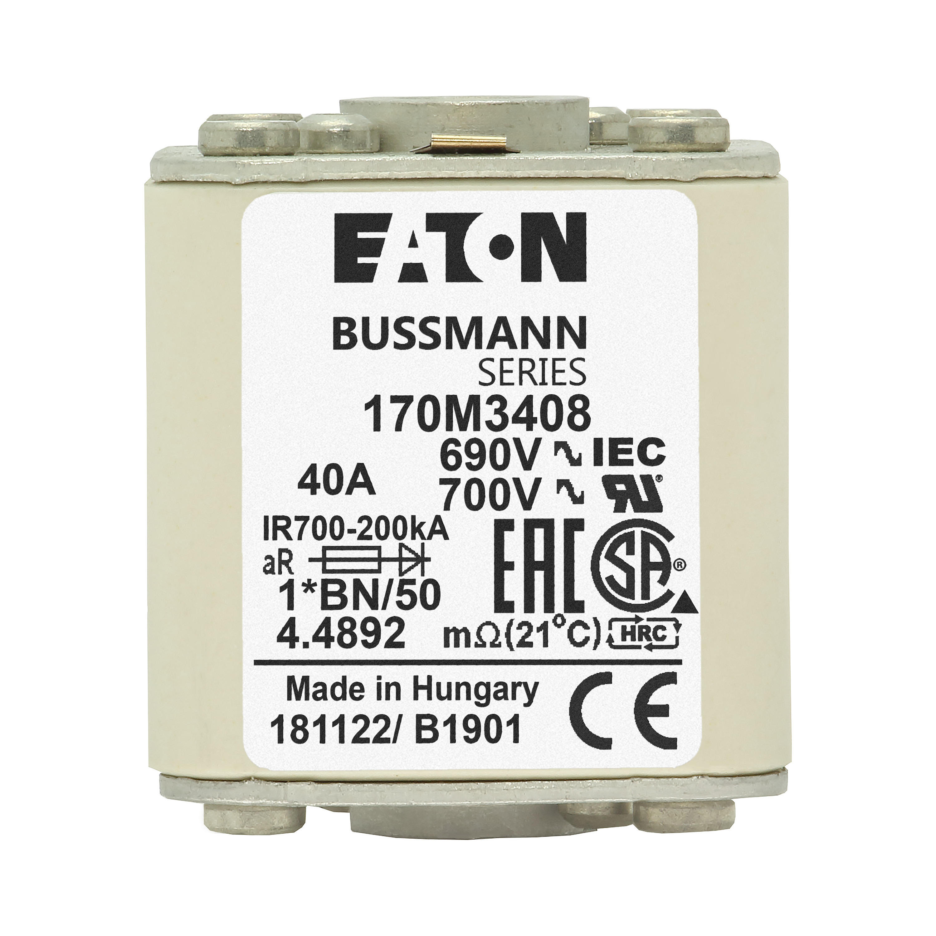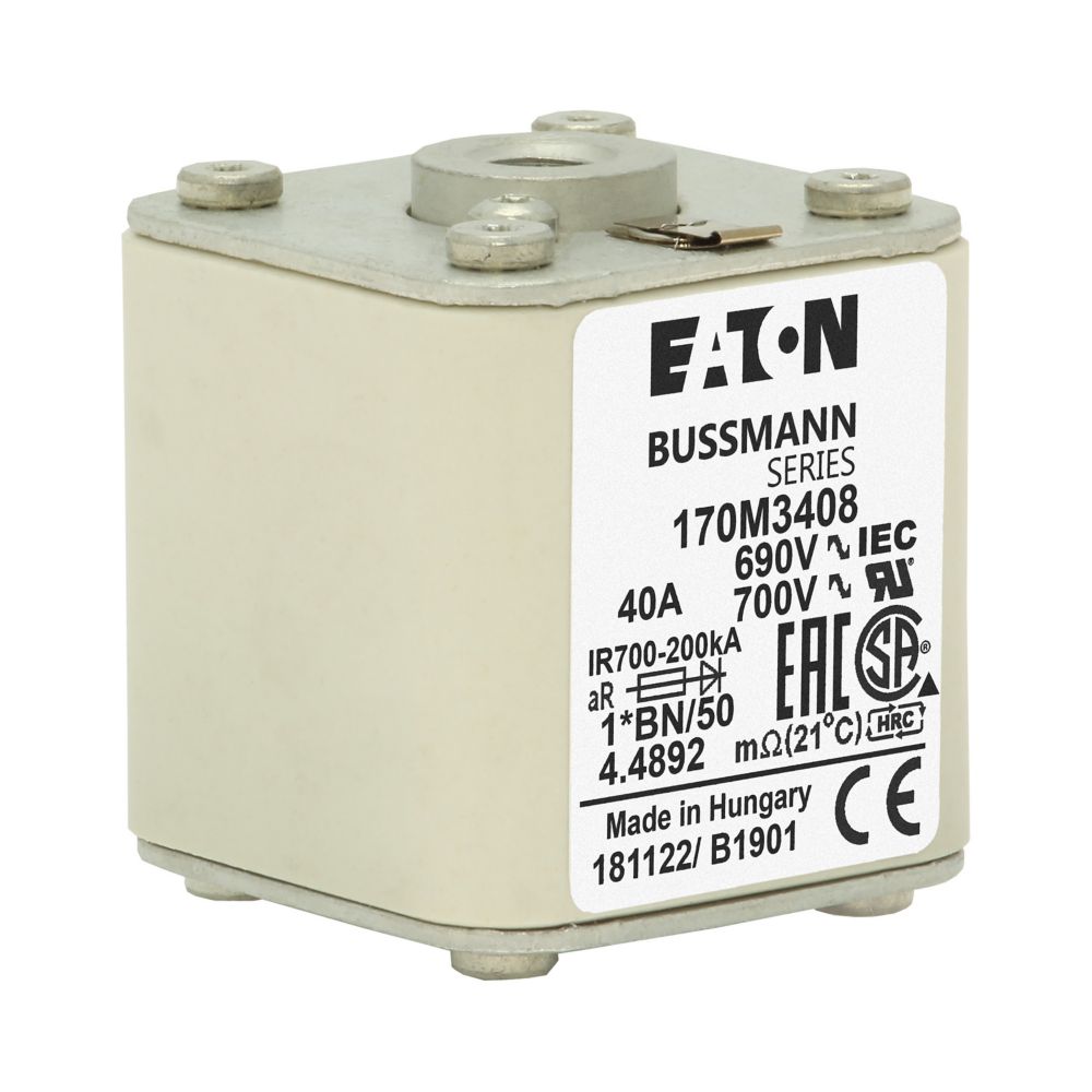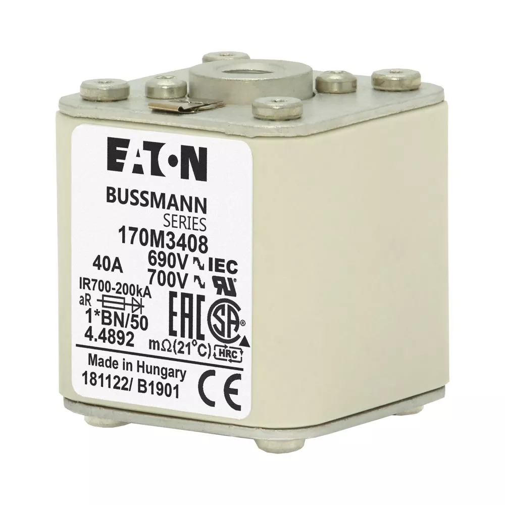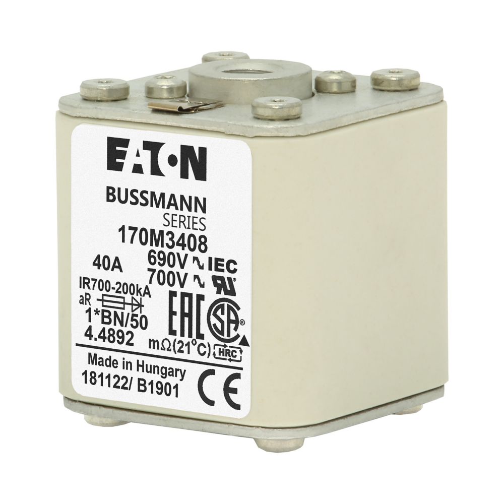 170M3408 Wkładka szybka, 40 A, AC 690 V, compact size 1, 45 x 59 x 51 mm, aR, IEC, UL, wskaźnik, flush end, M8