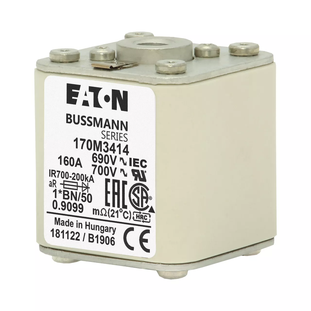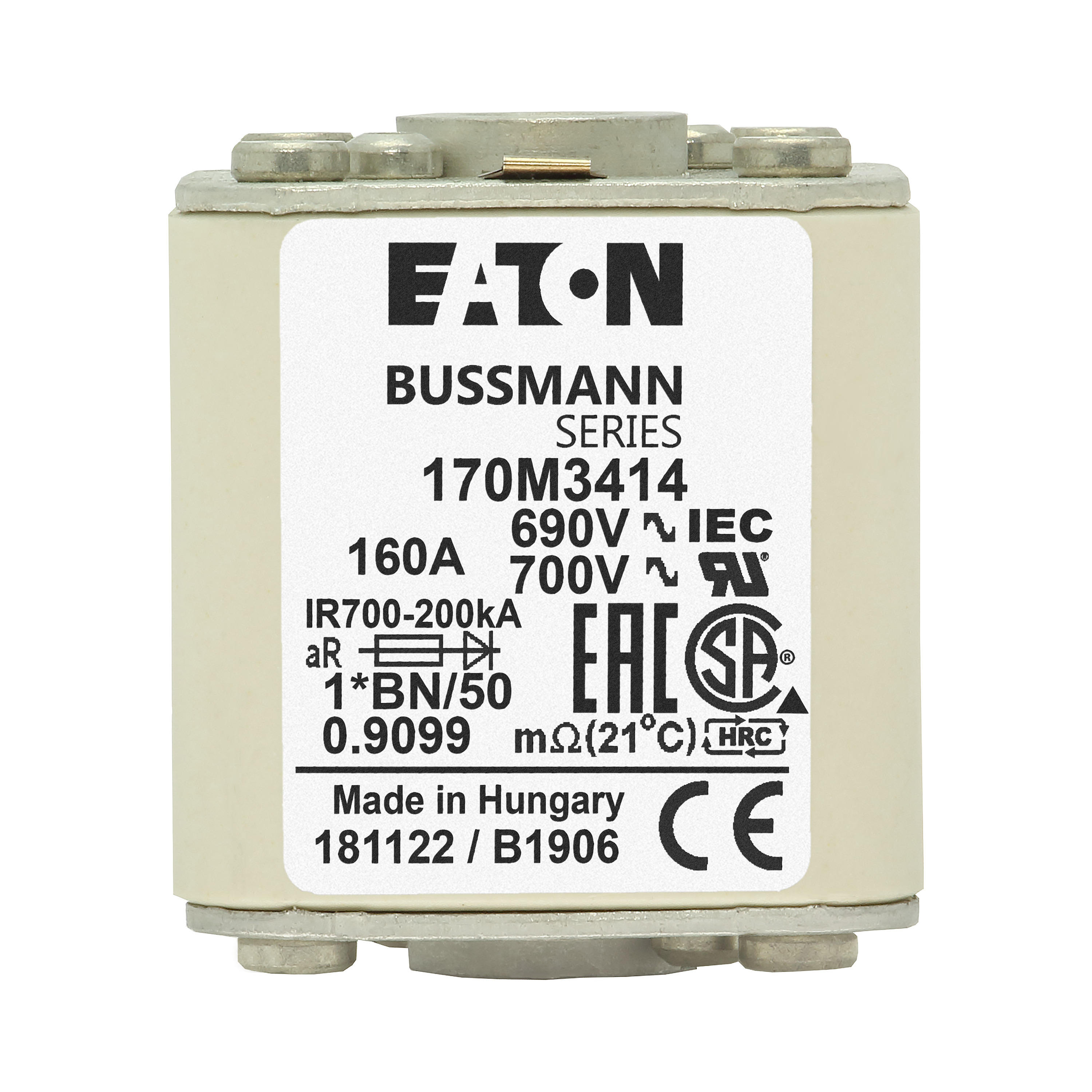 170M3414 Wkładka szybka, 160 A, AC 690 V, compact size 1, 45 x 59 x 51 mm, aR, IEC, UL