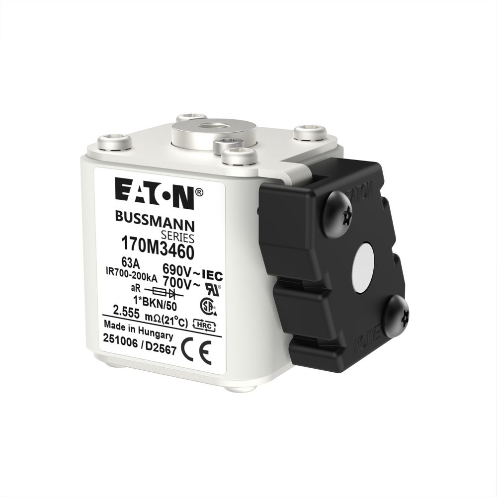 170M3460 Wkładka szybka, 63 A, AC 690 V, compact size 1, 45 x 59 x 51 mm, aR, IEC, UL