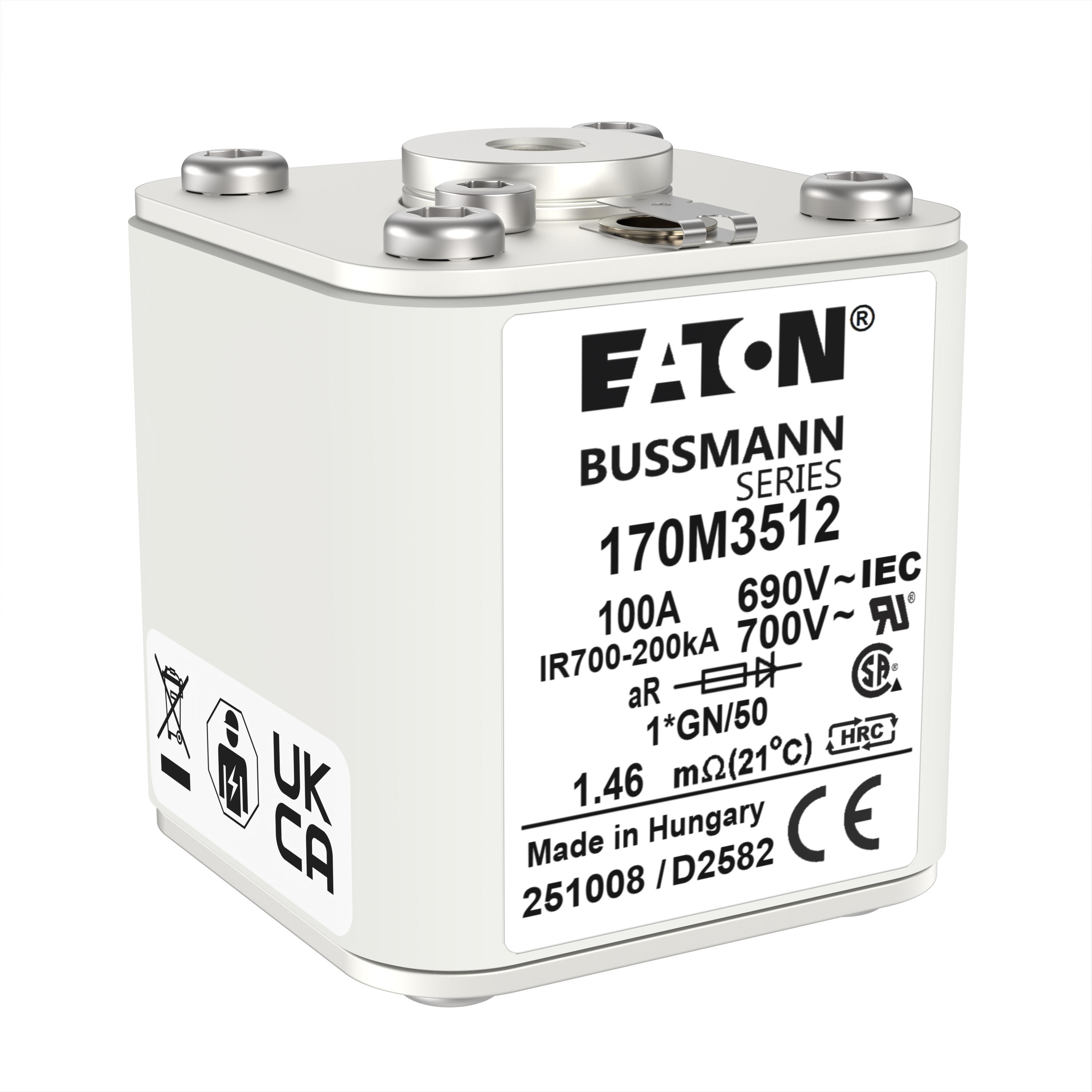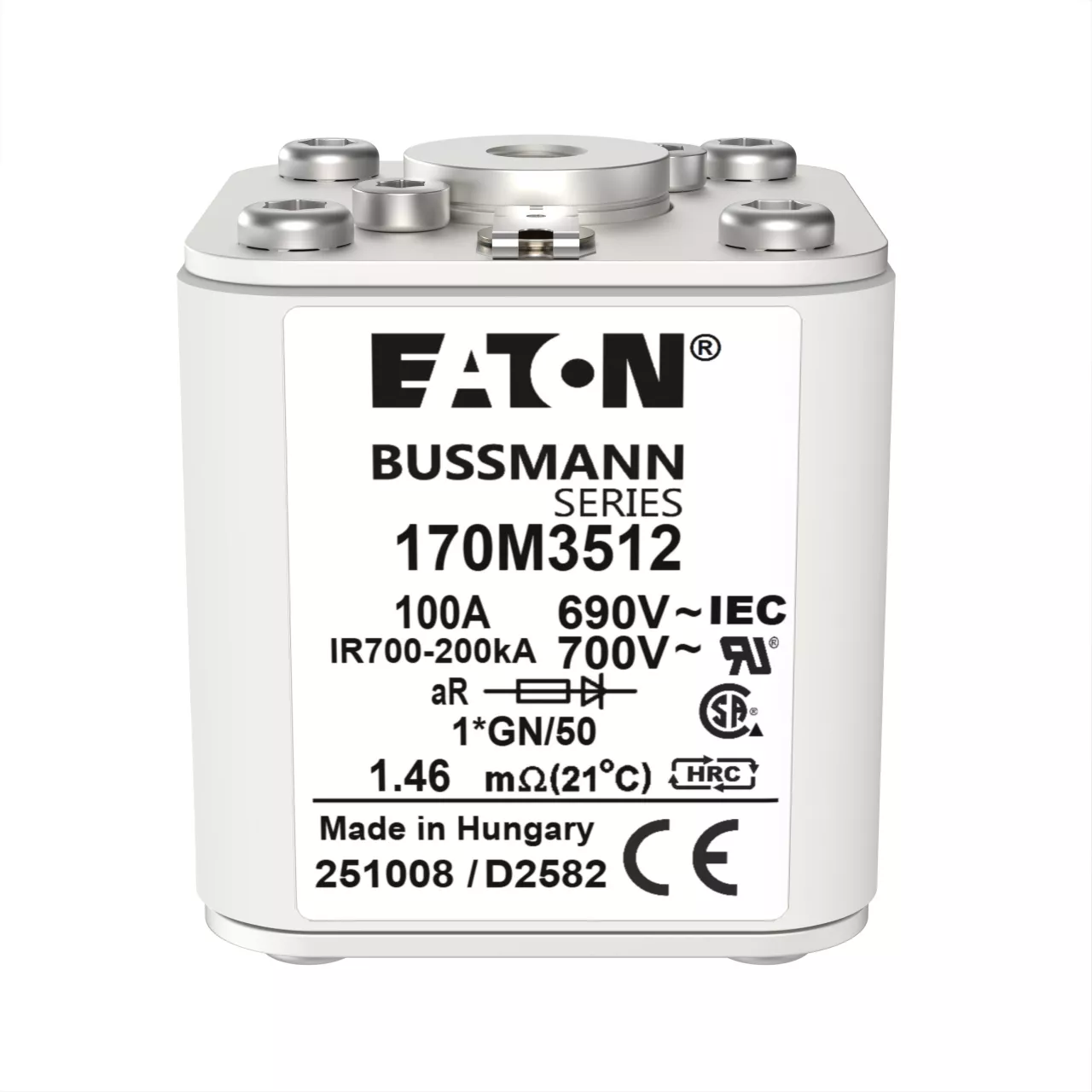 170M3512 Wkładka szybka, 100 A, AC 690 V, compact size 1, 45 x 59 x 51 mm, aR, IEC, UL