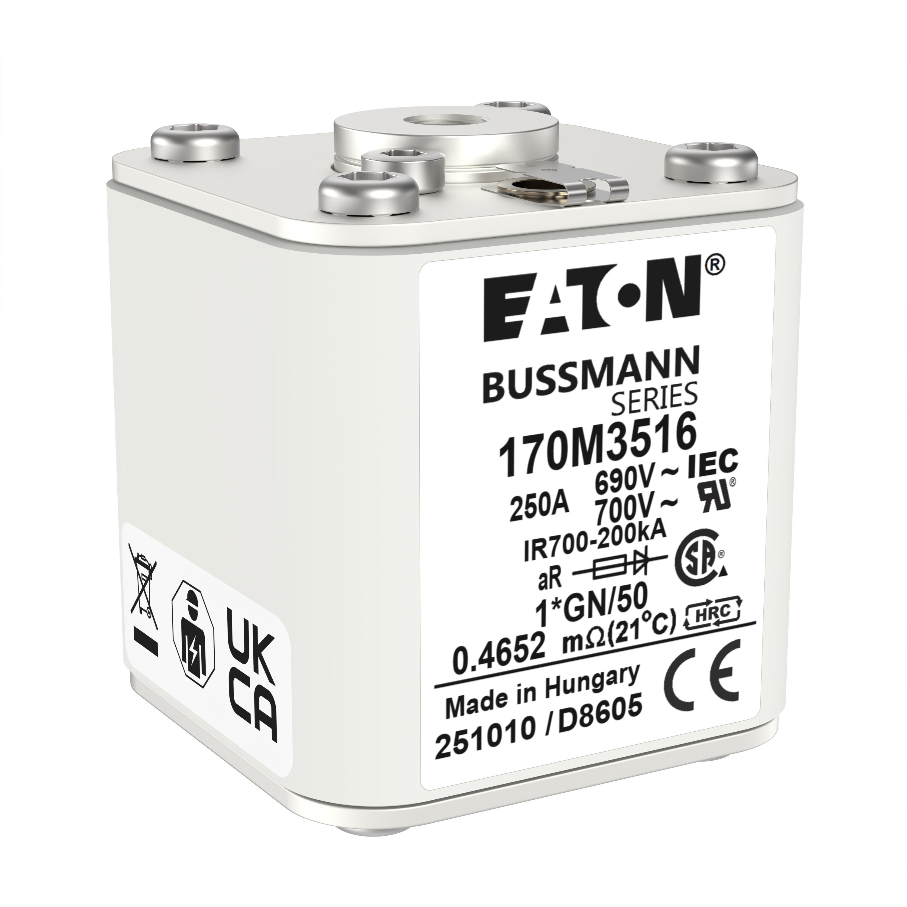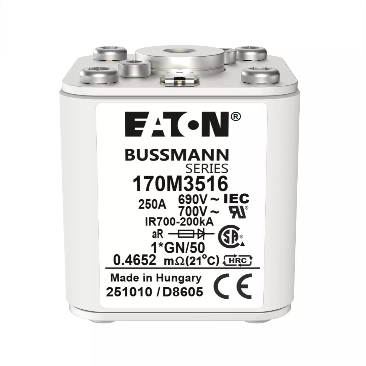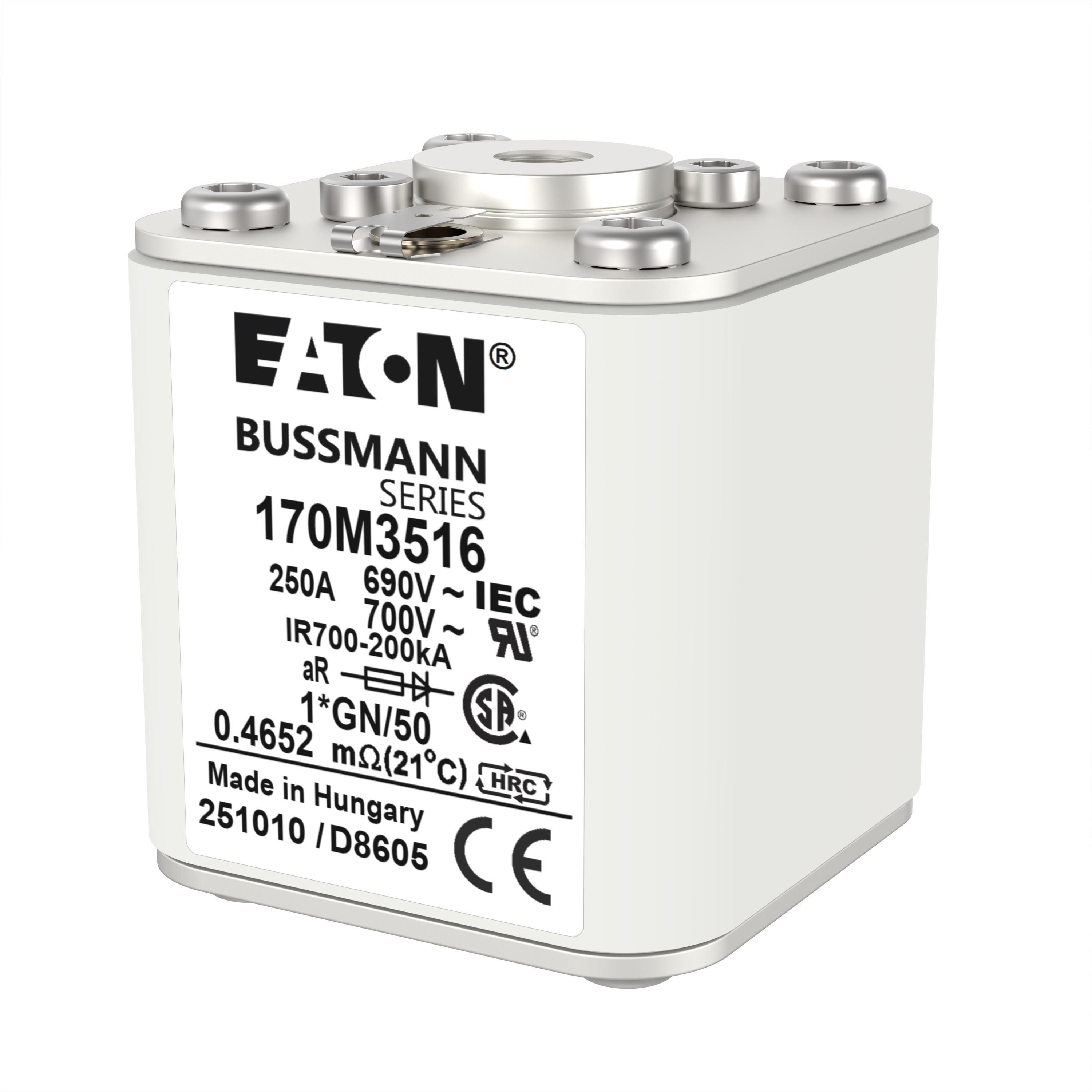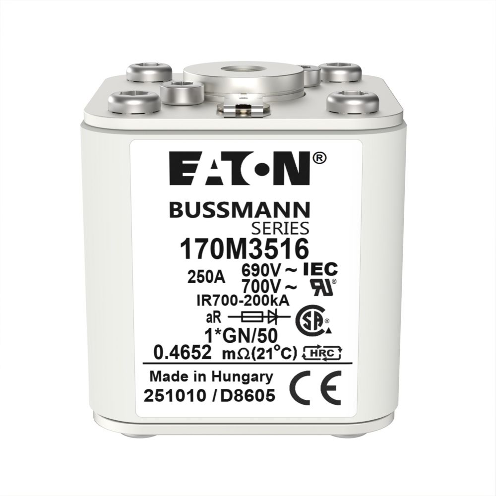 170M3516 Wkładka szybka, 250 A, AC 690 V, compact size 1, 45 x 59 x 51 mm, aR, IEC, UL