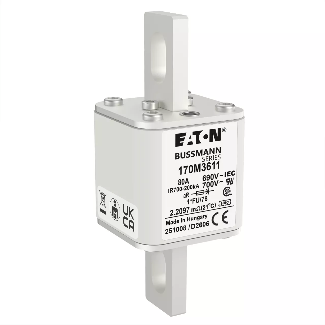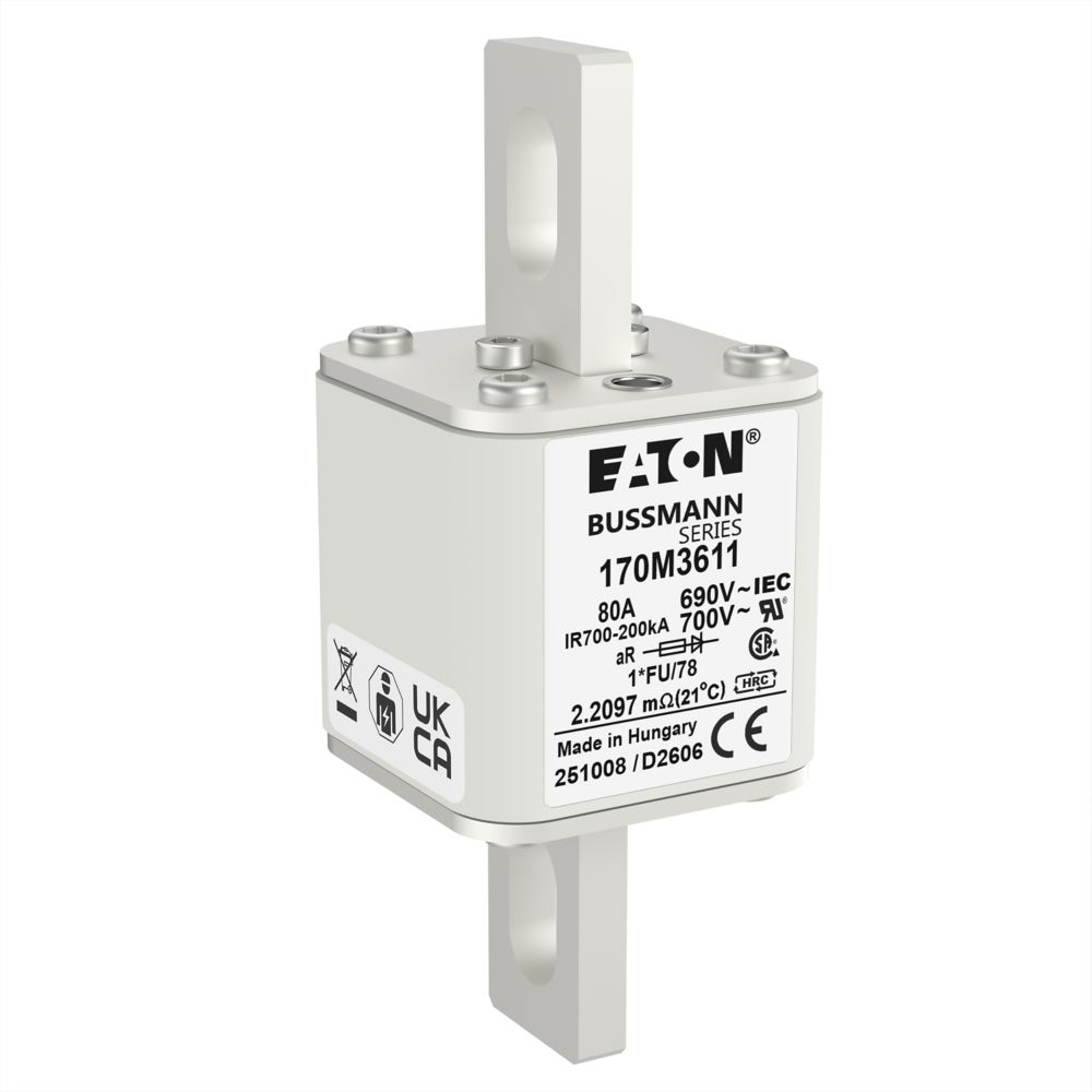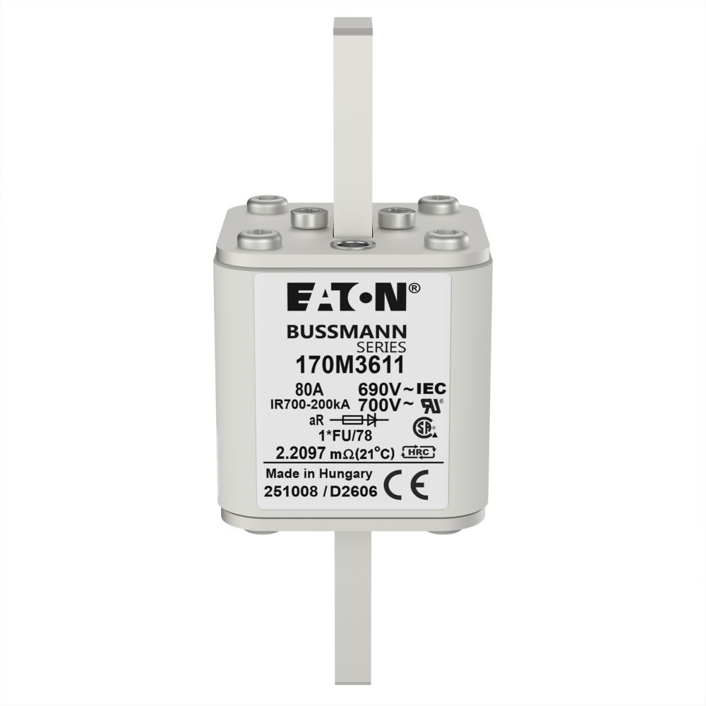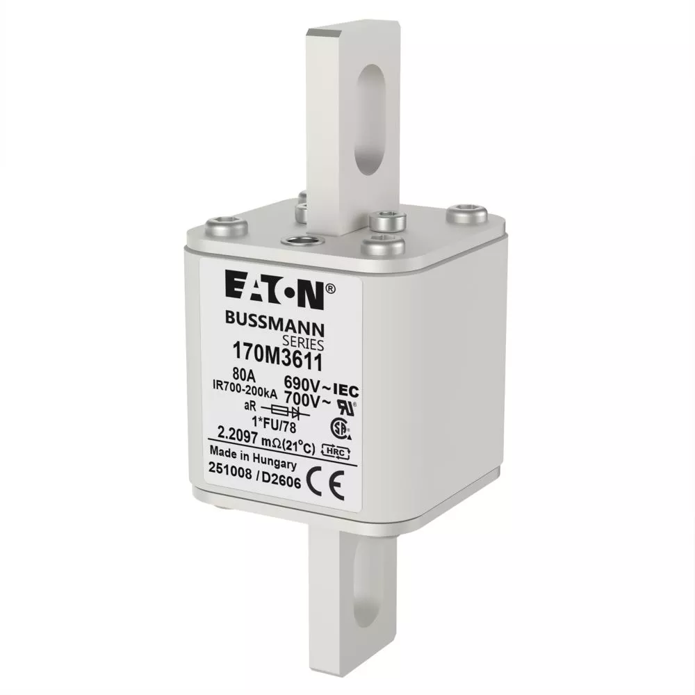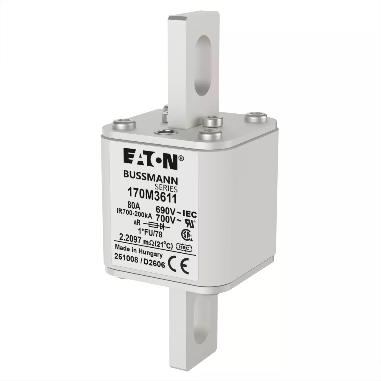 170M3611 Wkładka szybka, 80 A, AC 690 V, compact size 1, 45 x 45 x 110 mm, aR, IEC, UL